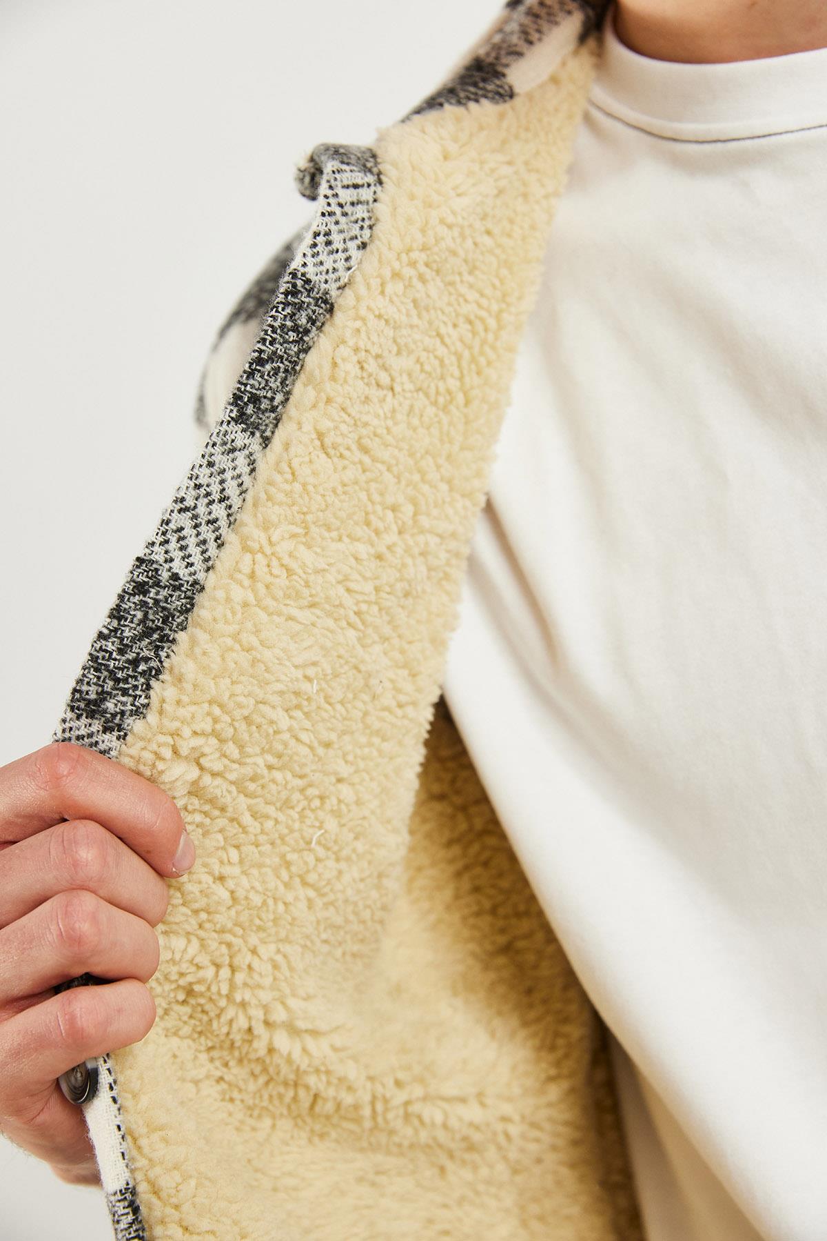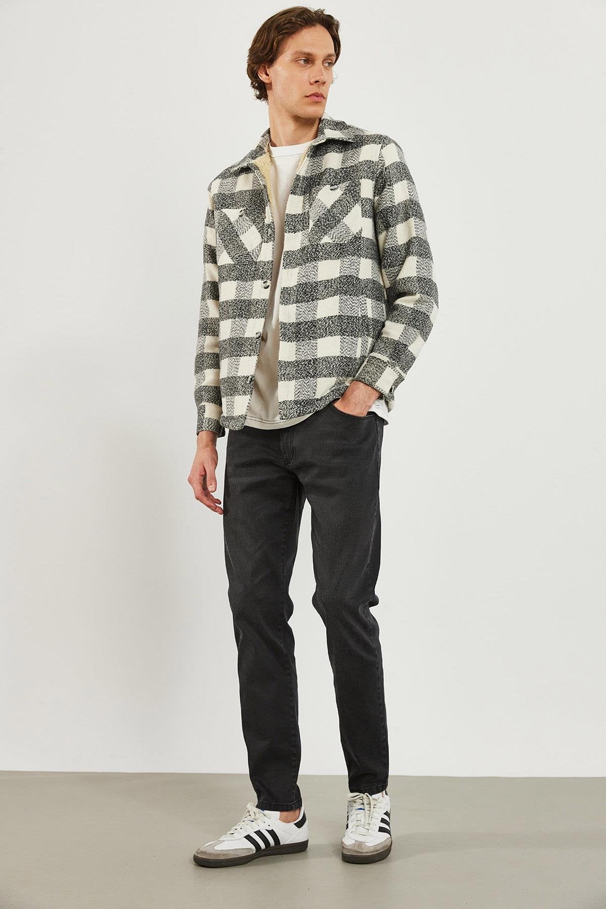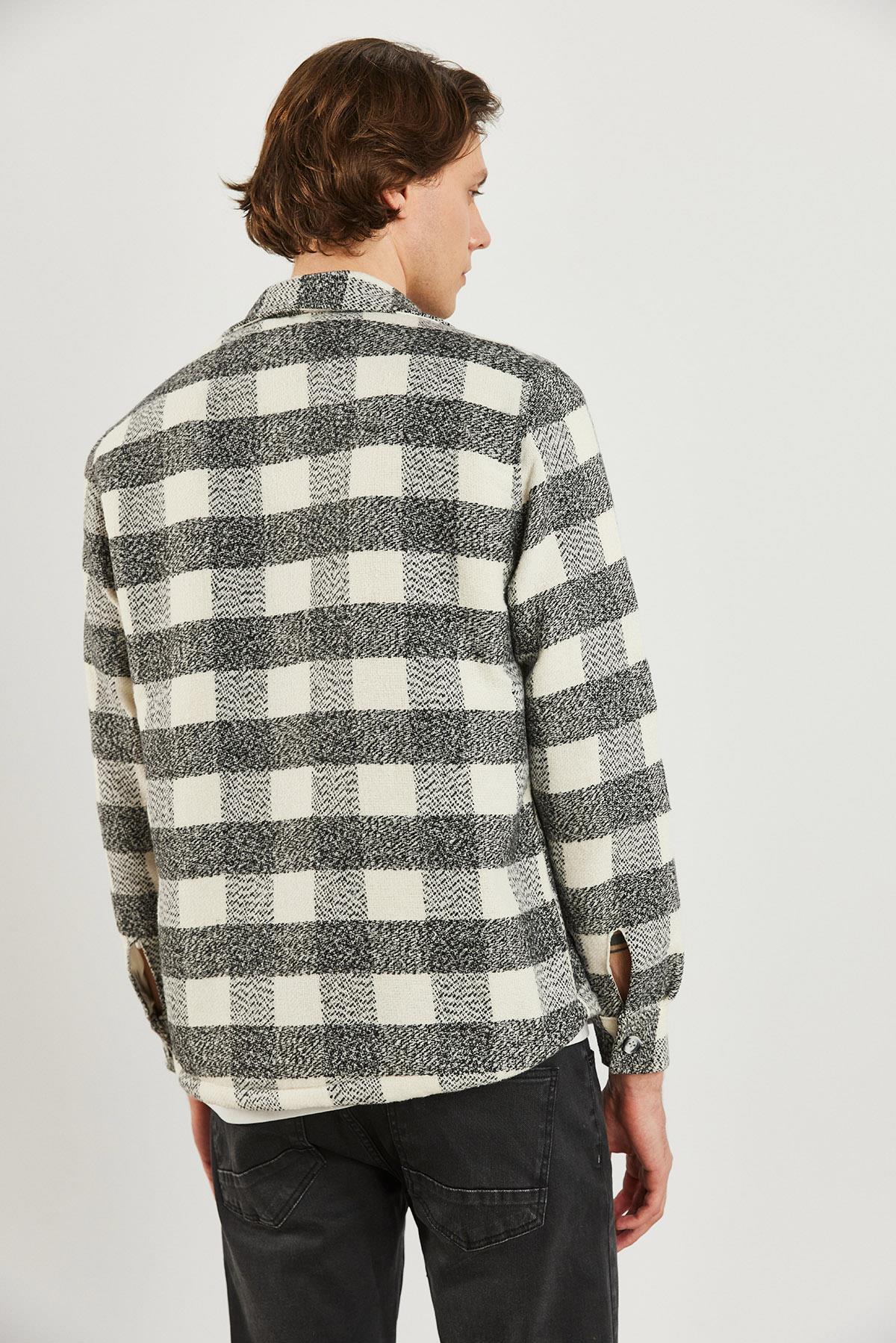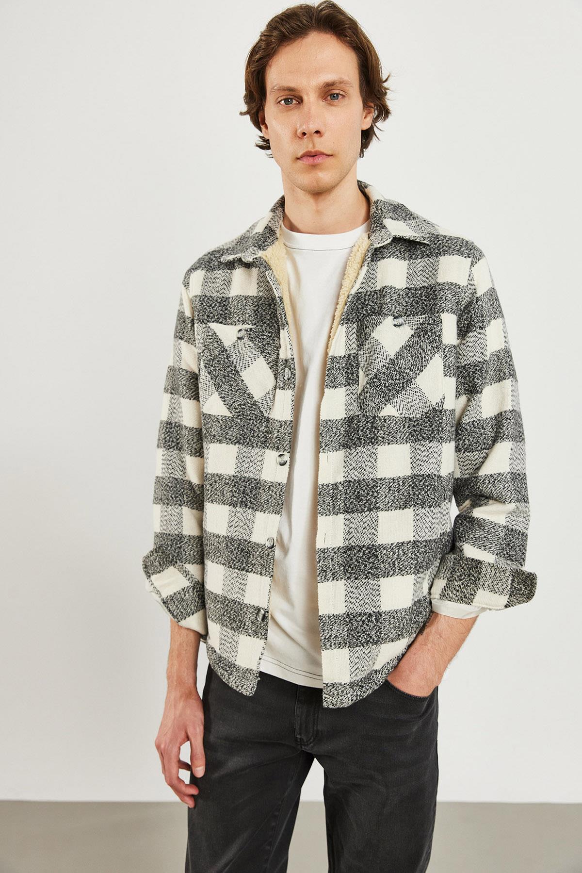 Erkek İçi Peluşlu Ekose Gömlek Ceket - Siyah