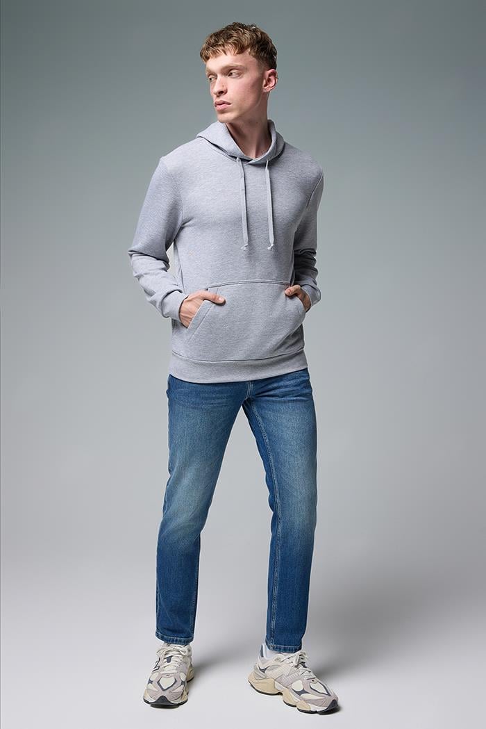Erkek Kapüşonlu Basic Pamuklu Hoodie Sweatshirt - Gri Melanj