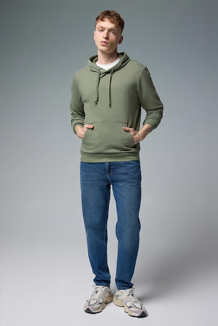 Erkek Kapüşonlu Basic Pamuklu Hoodie Sweatshirt - Haki