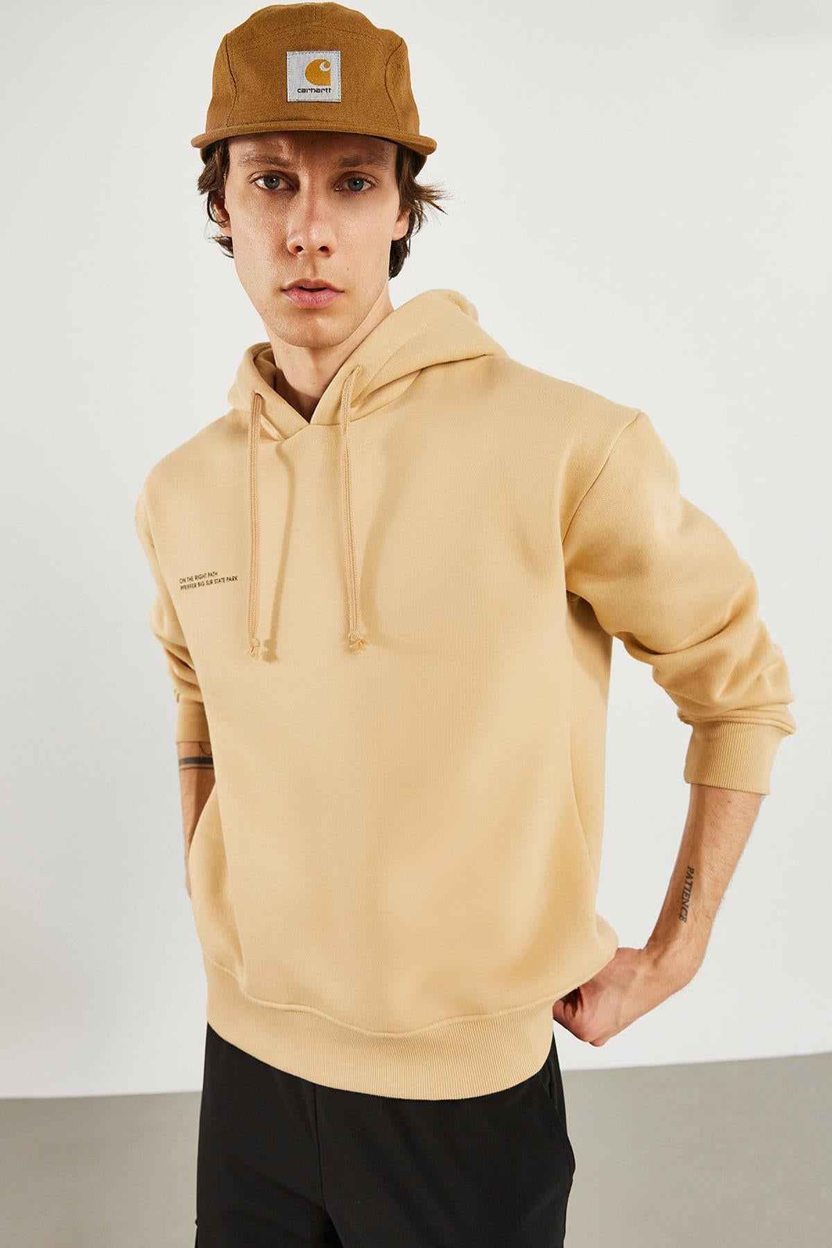 Erkek Landscape Baskılı Sweatshirt - Bej
