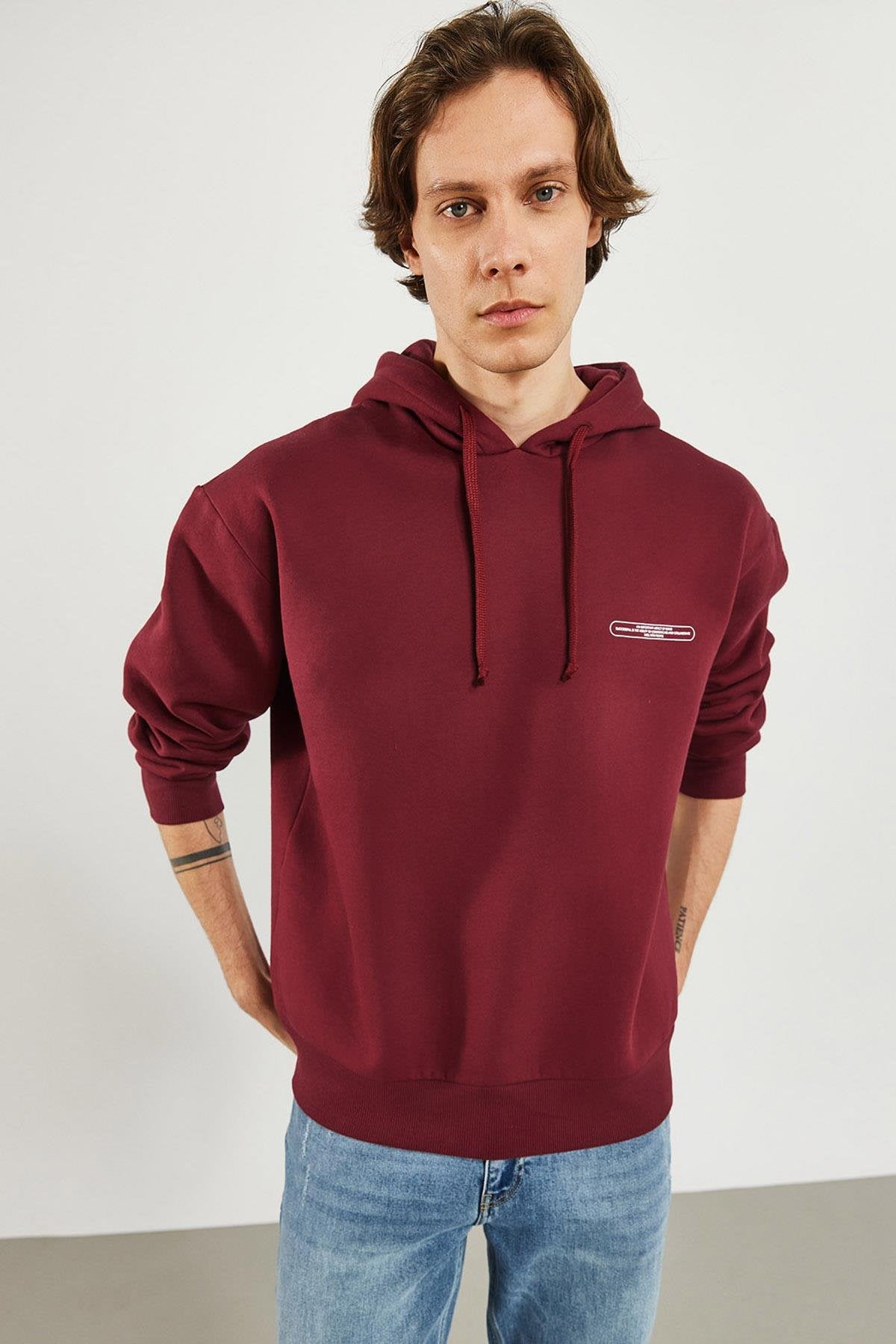 Erkek Mindset Baskılı Sweatshirt - Bordo
