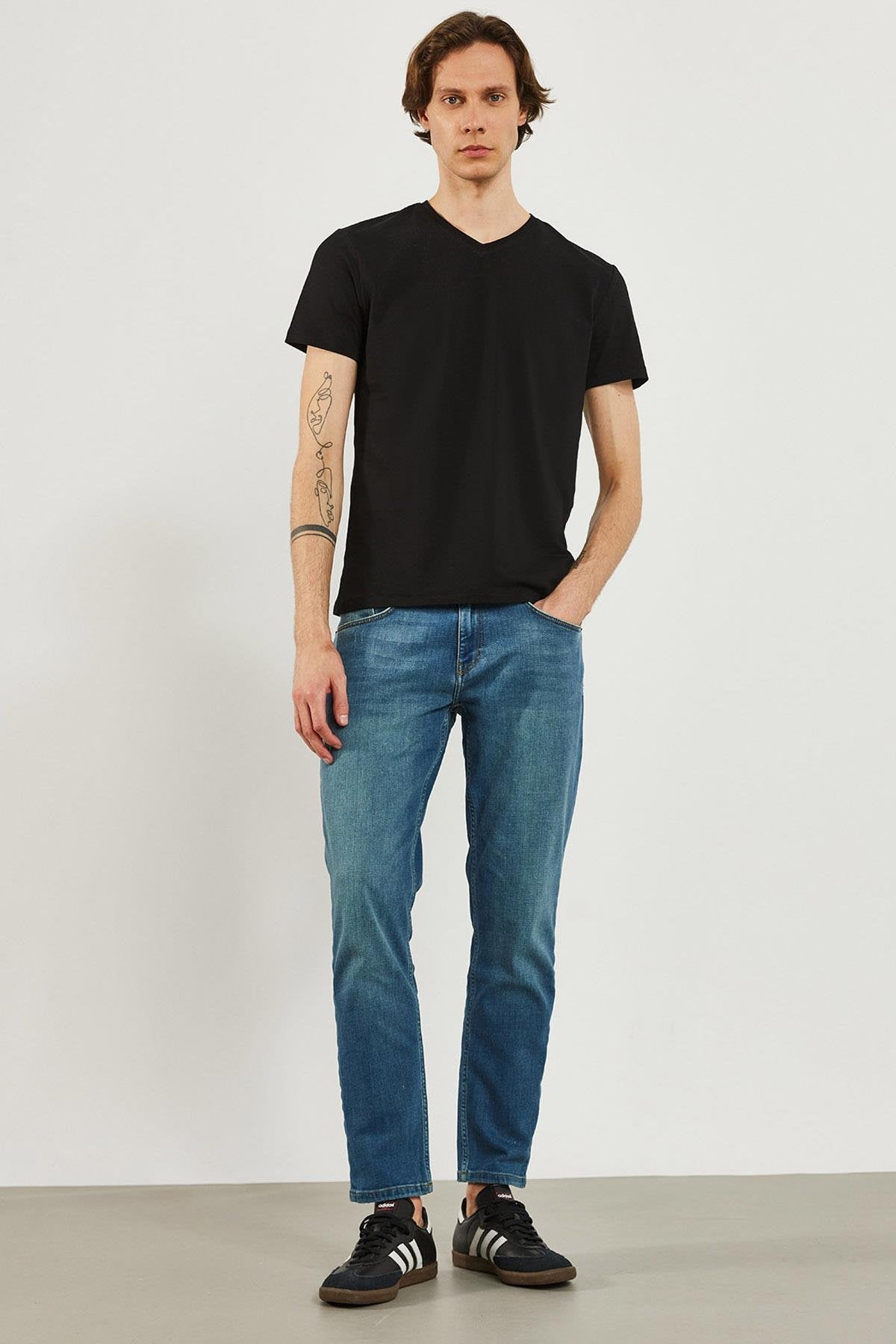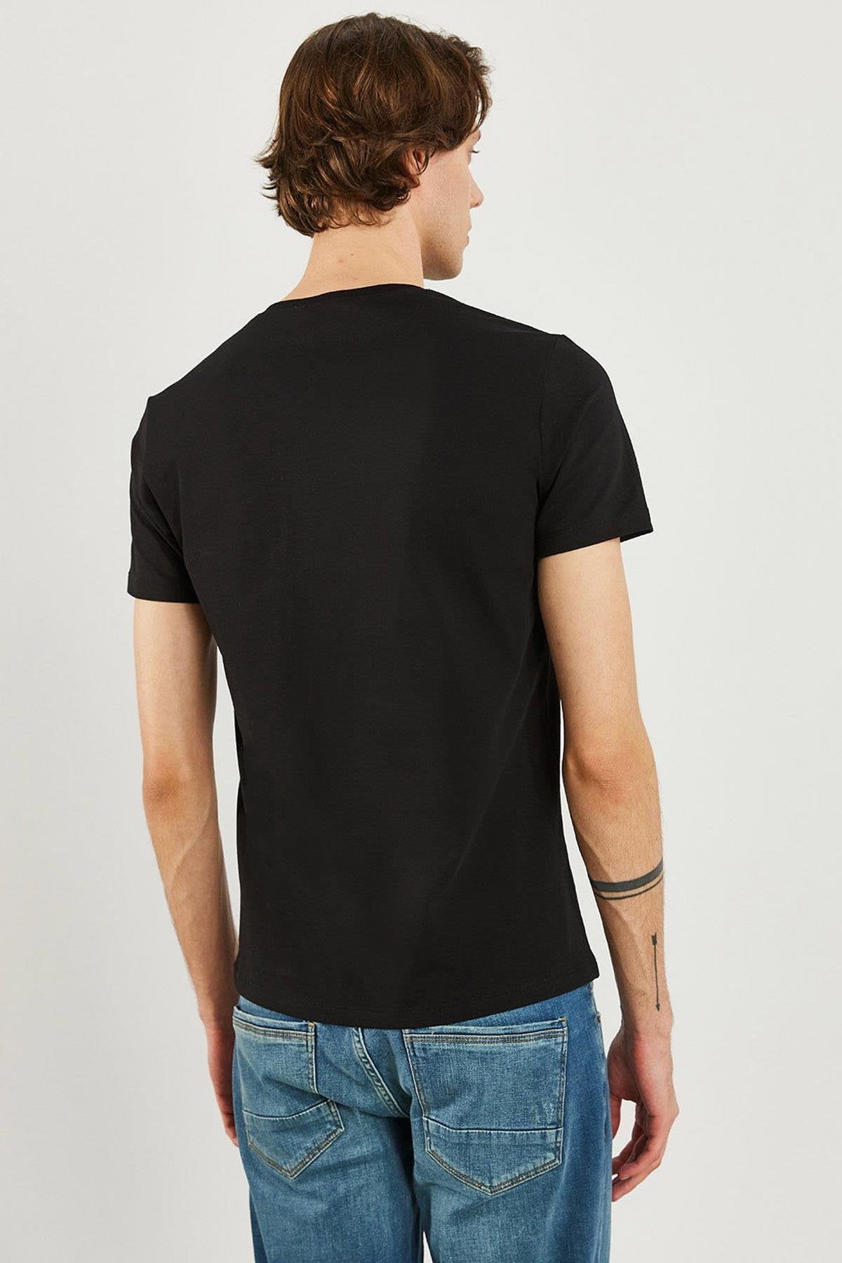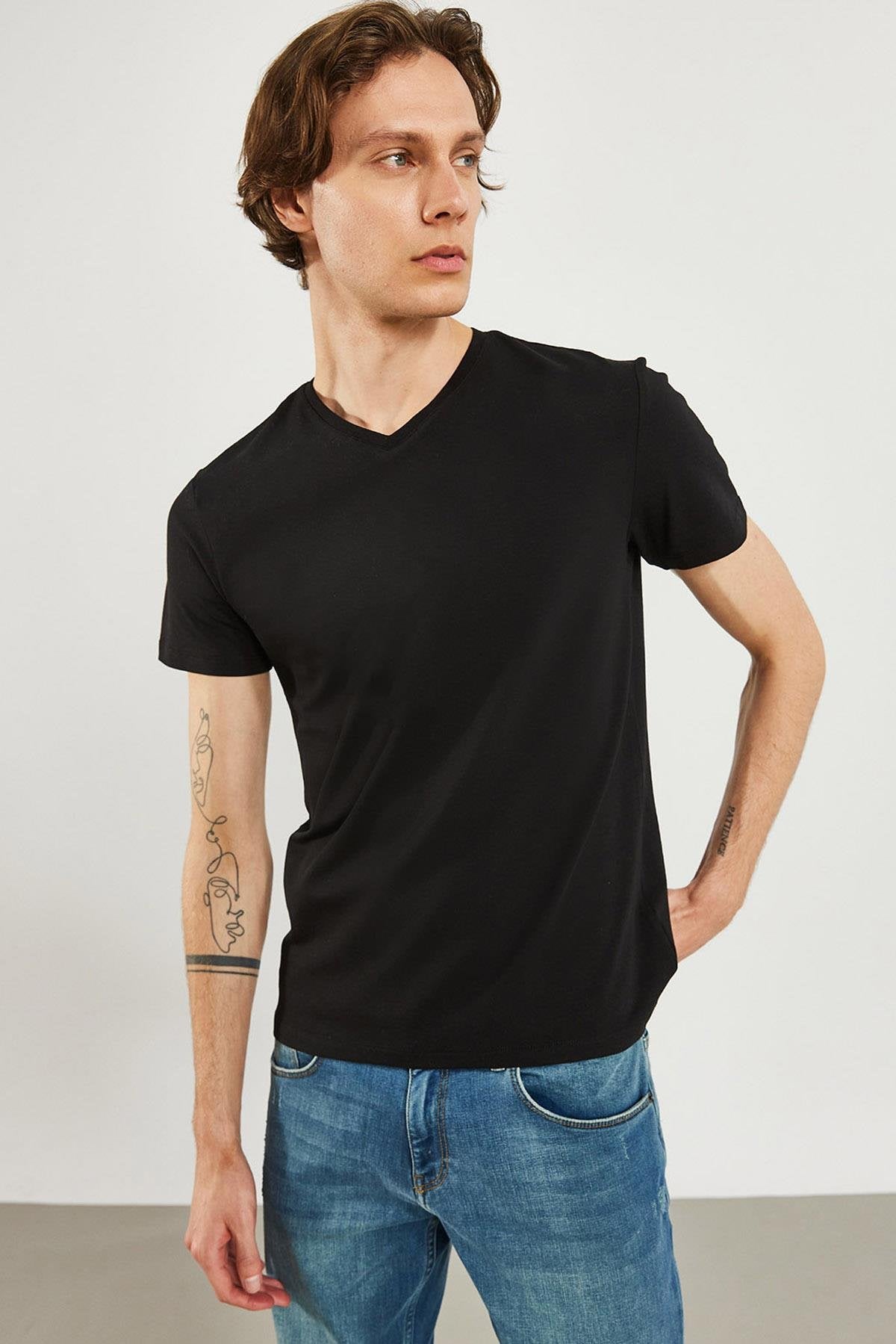 Erkek Nick V Yaka Slim Fit Basic Tişört - Siyah