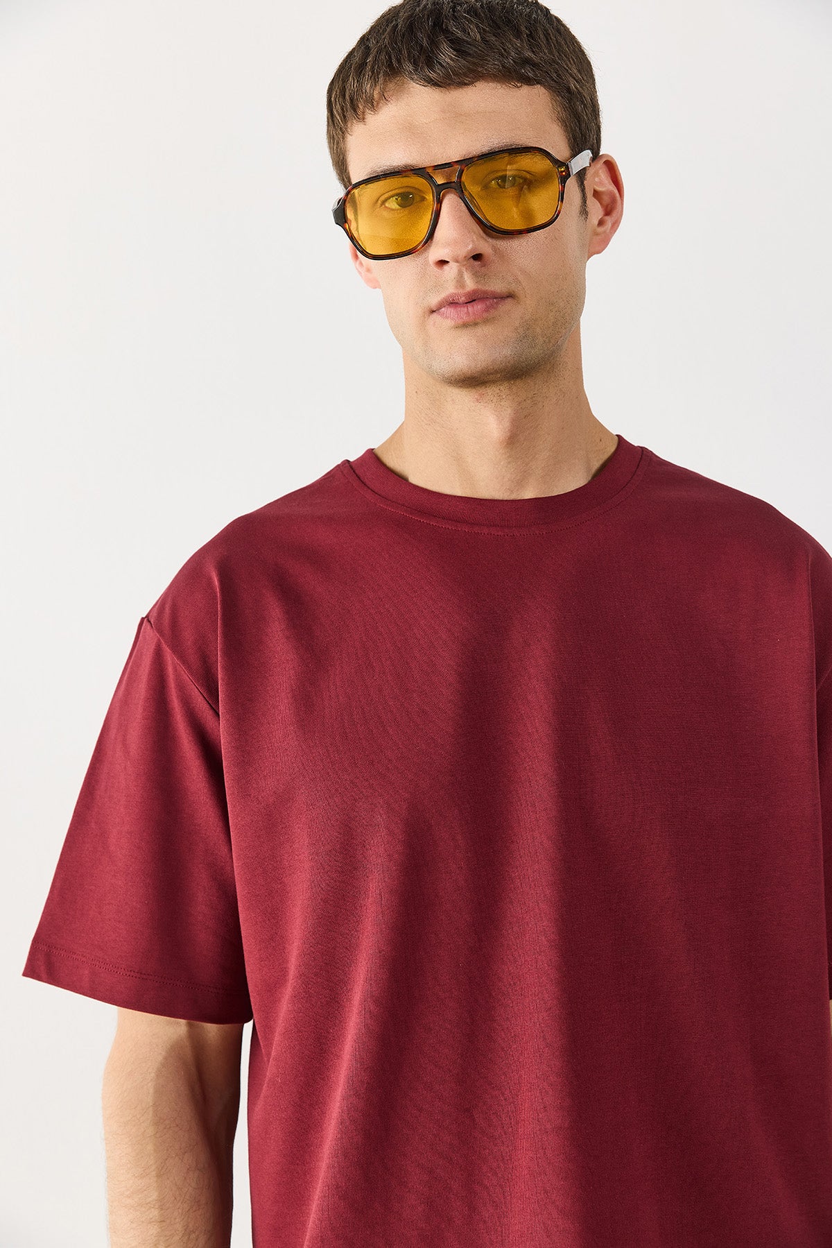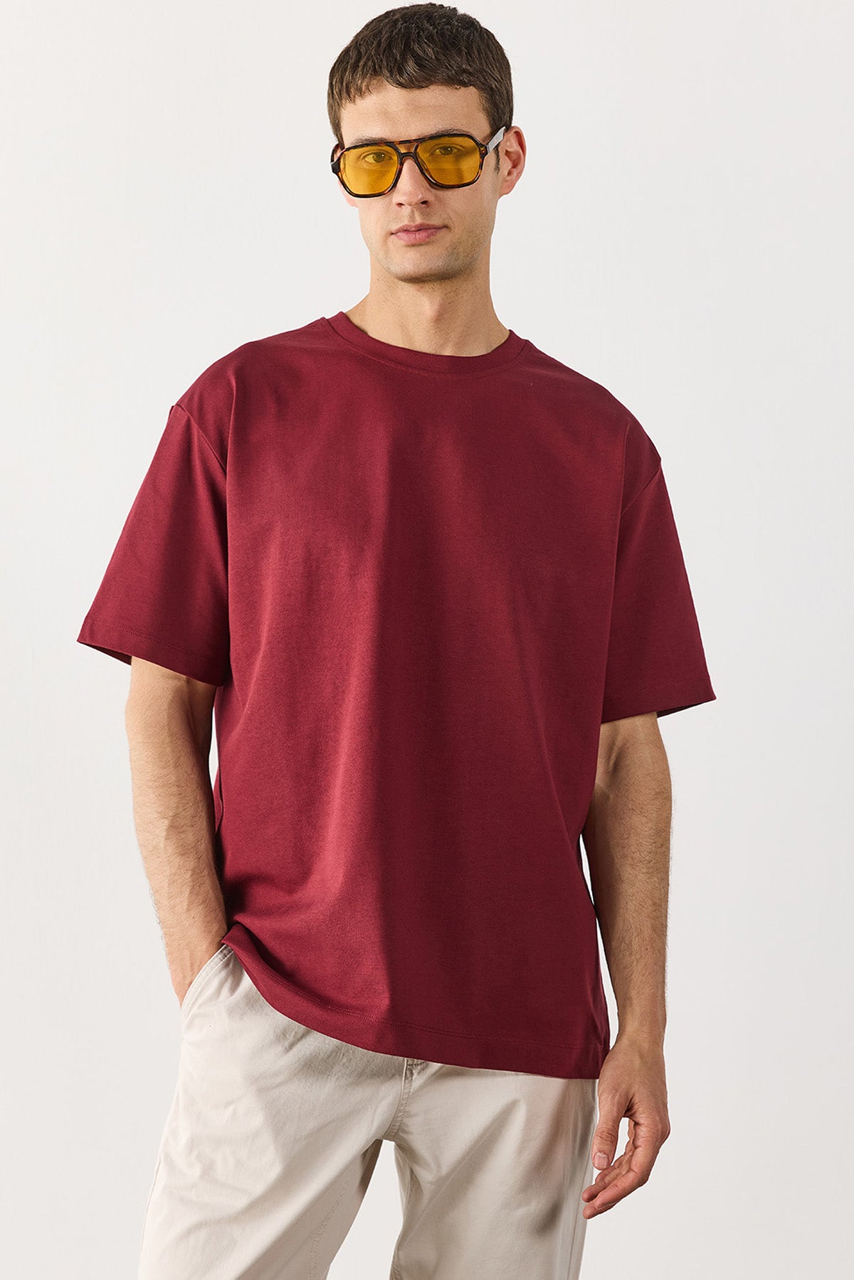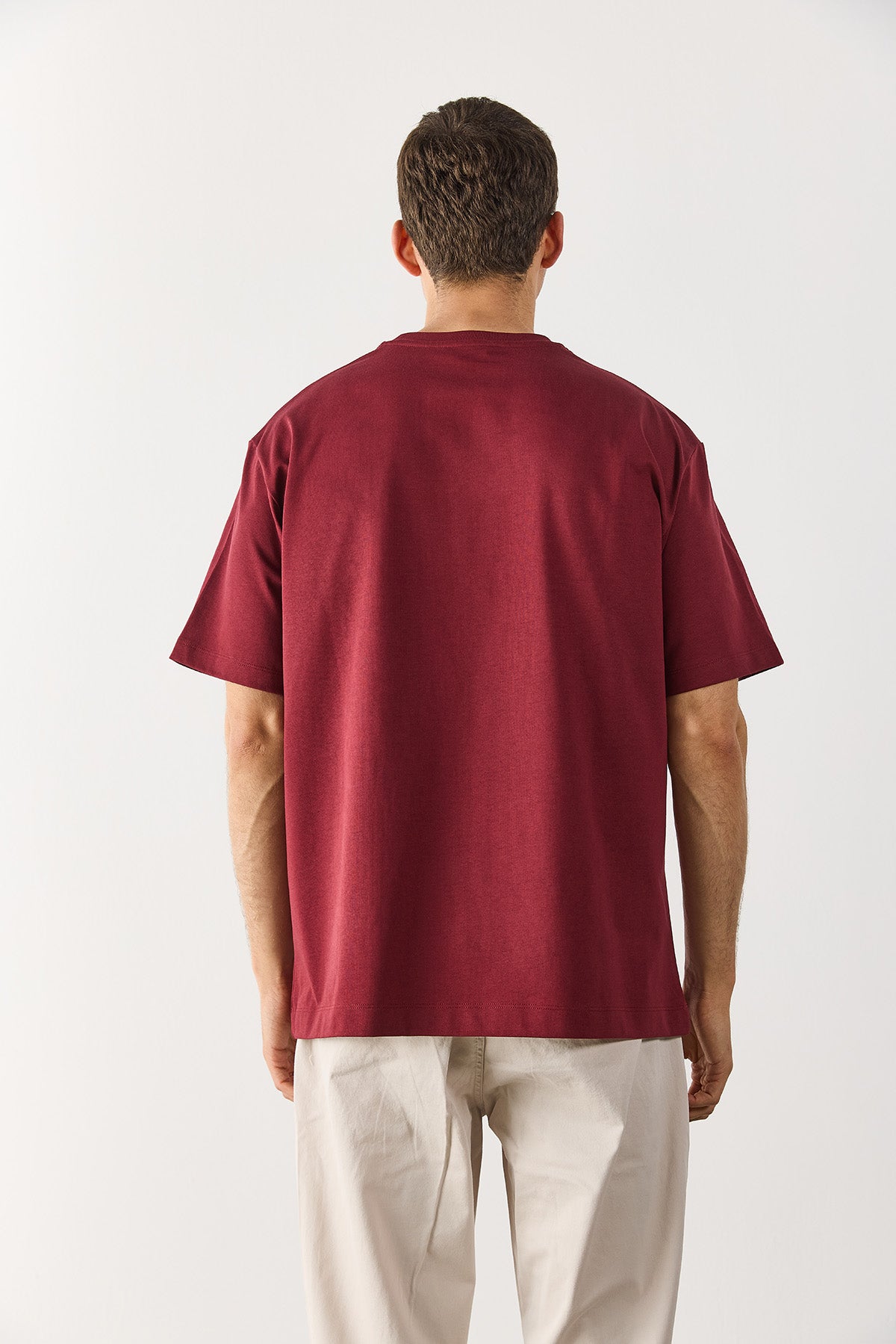 Erkek Oversize Kalın Tişört %100 Pamuk - Bordo