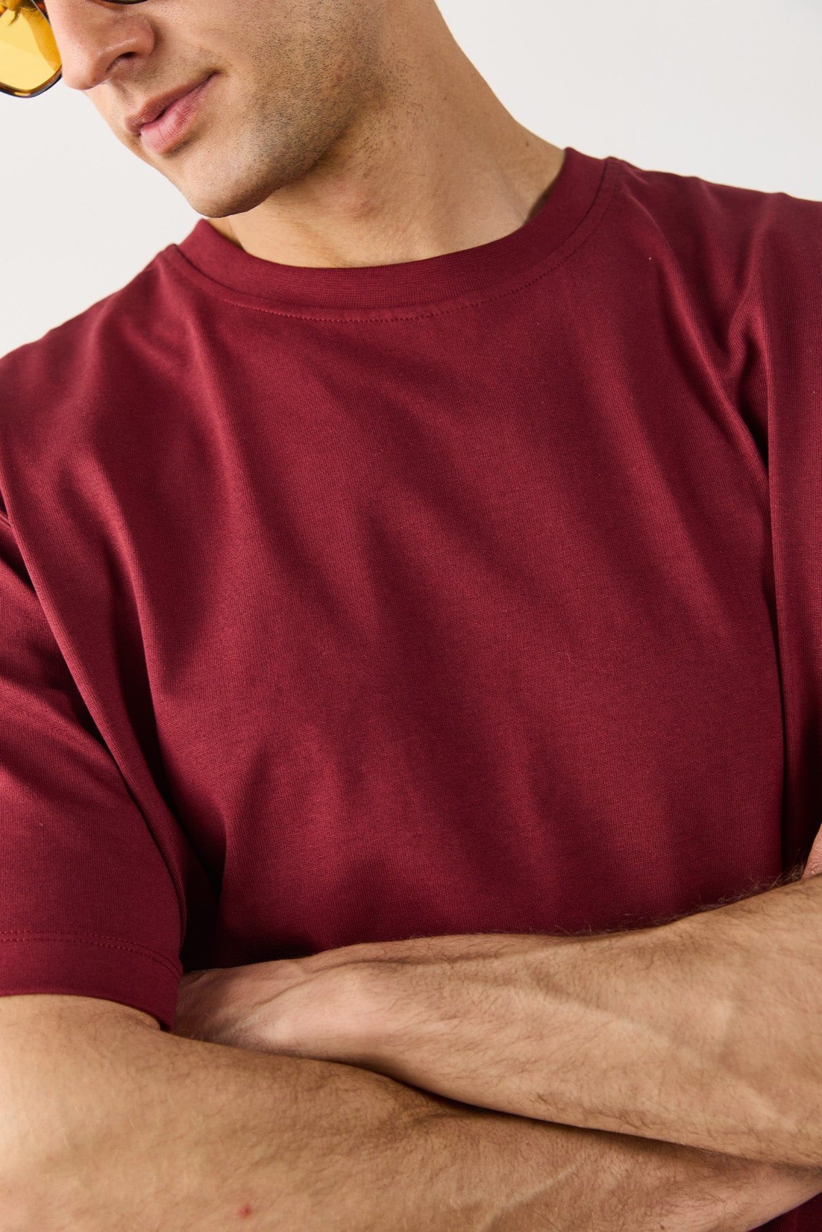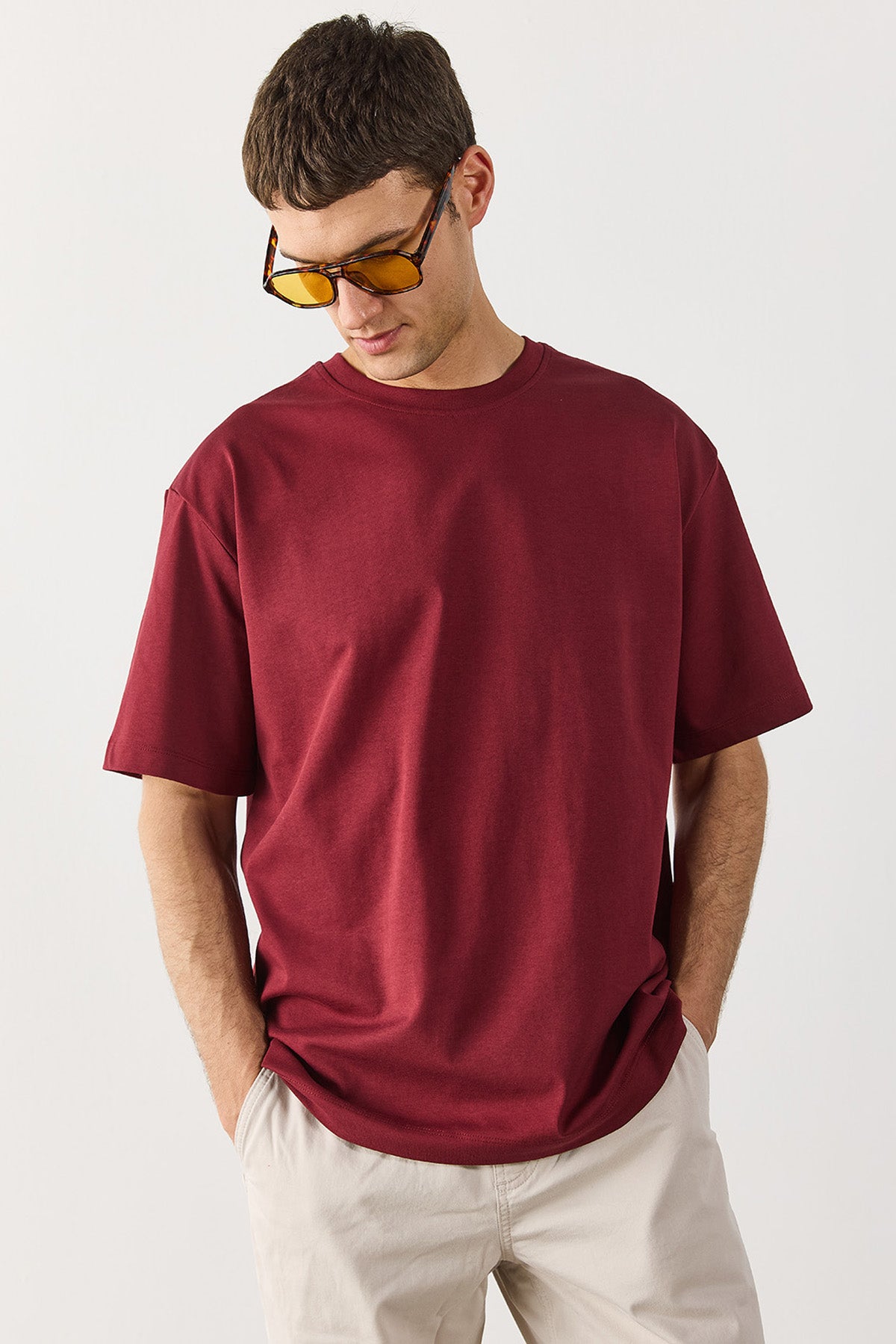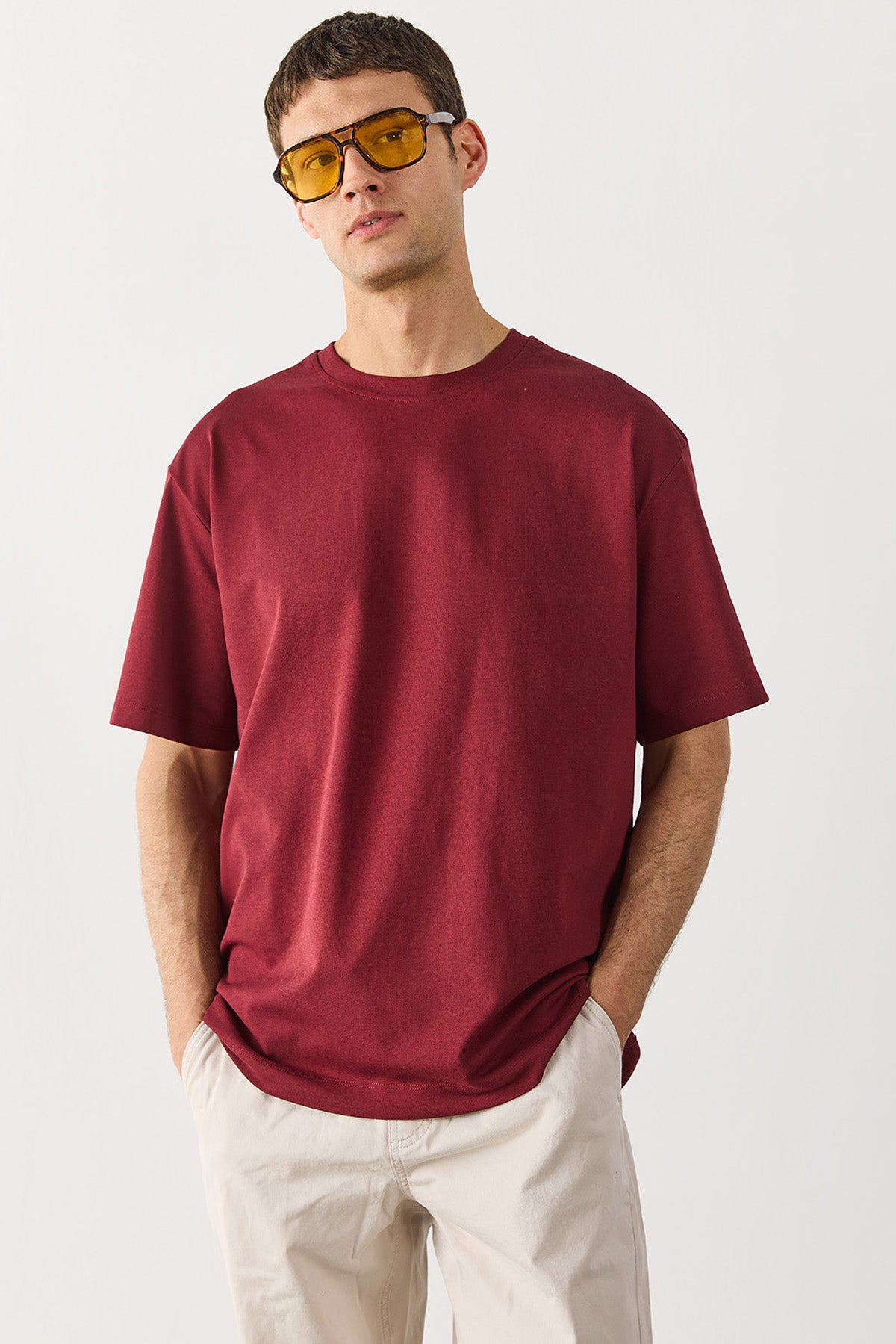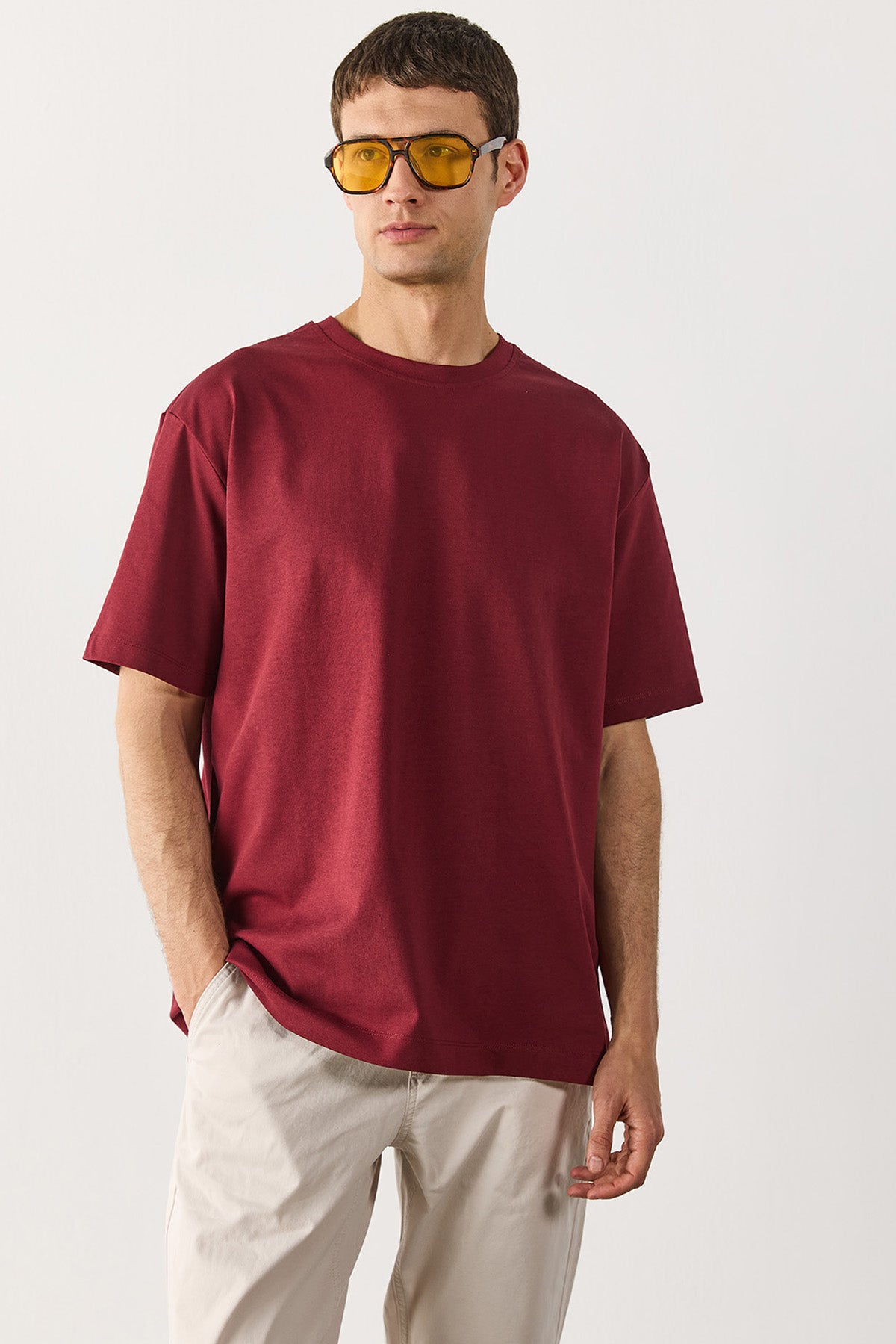 Erkek Oversize Kalın Tişört %100 Pamuk - Bordo