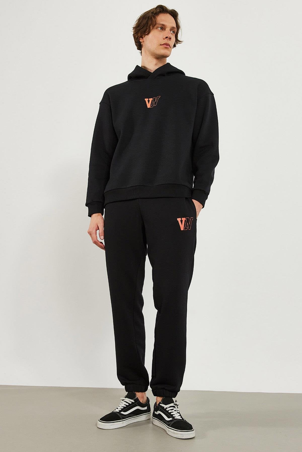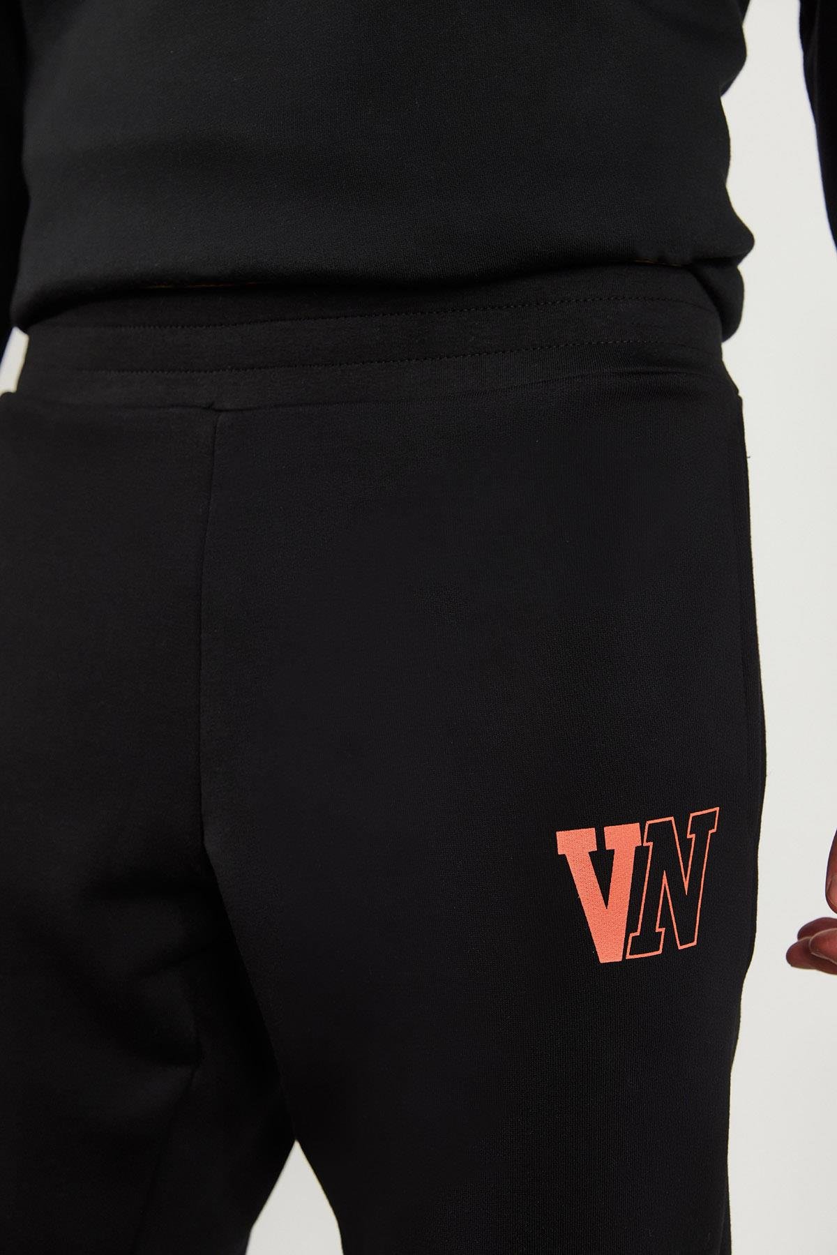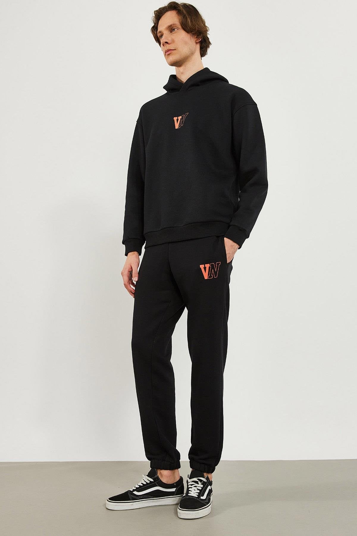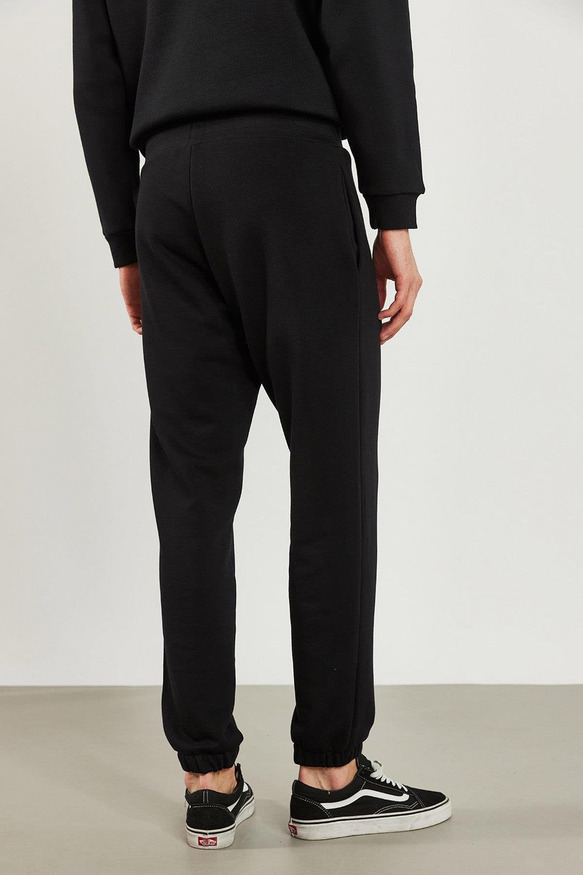 Erkek Paçası Lastikli Logo Baskılı Eşofman Altı - Siyah