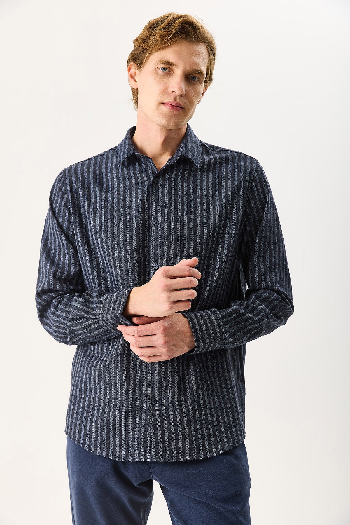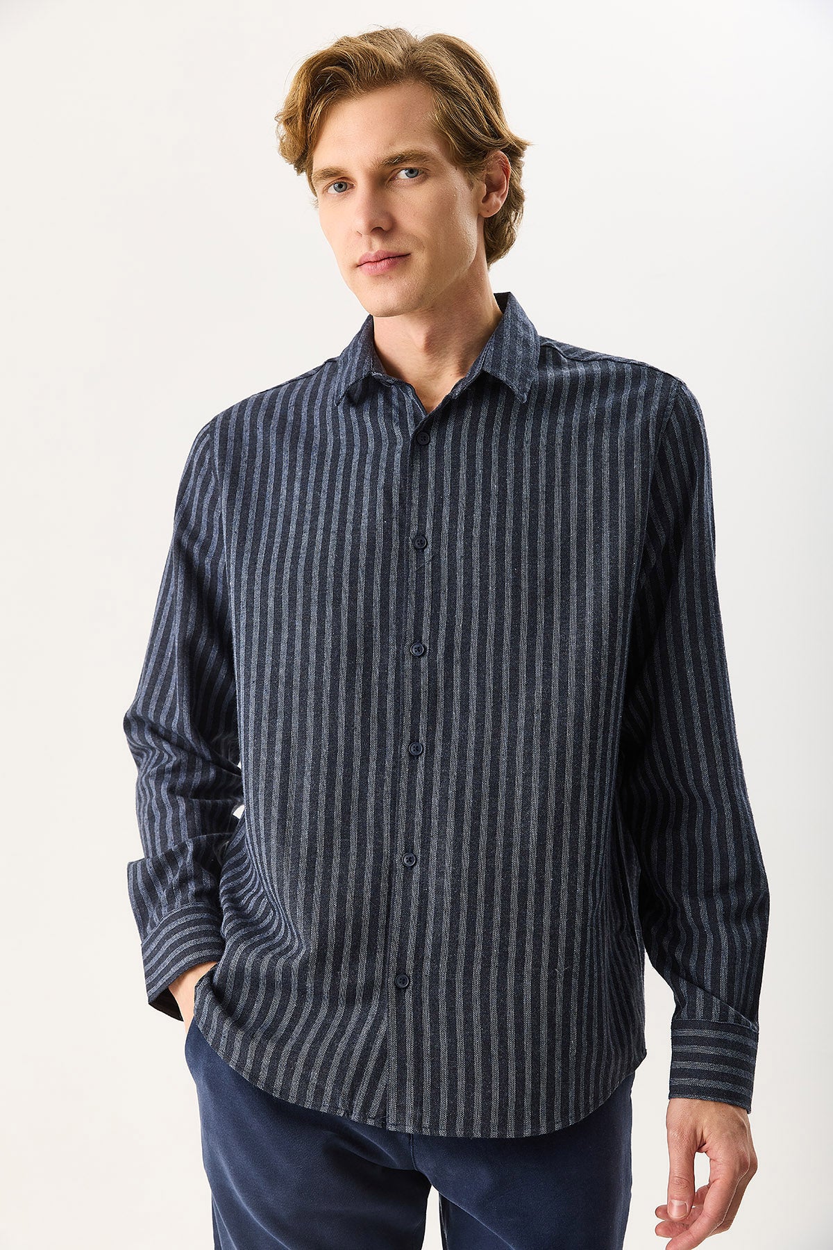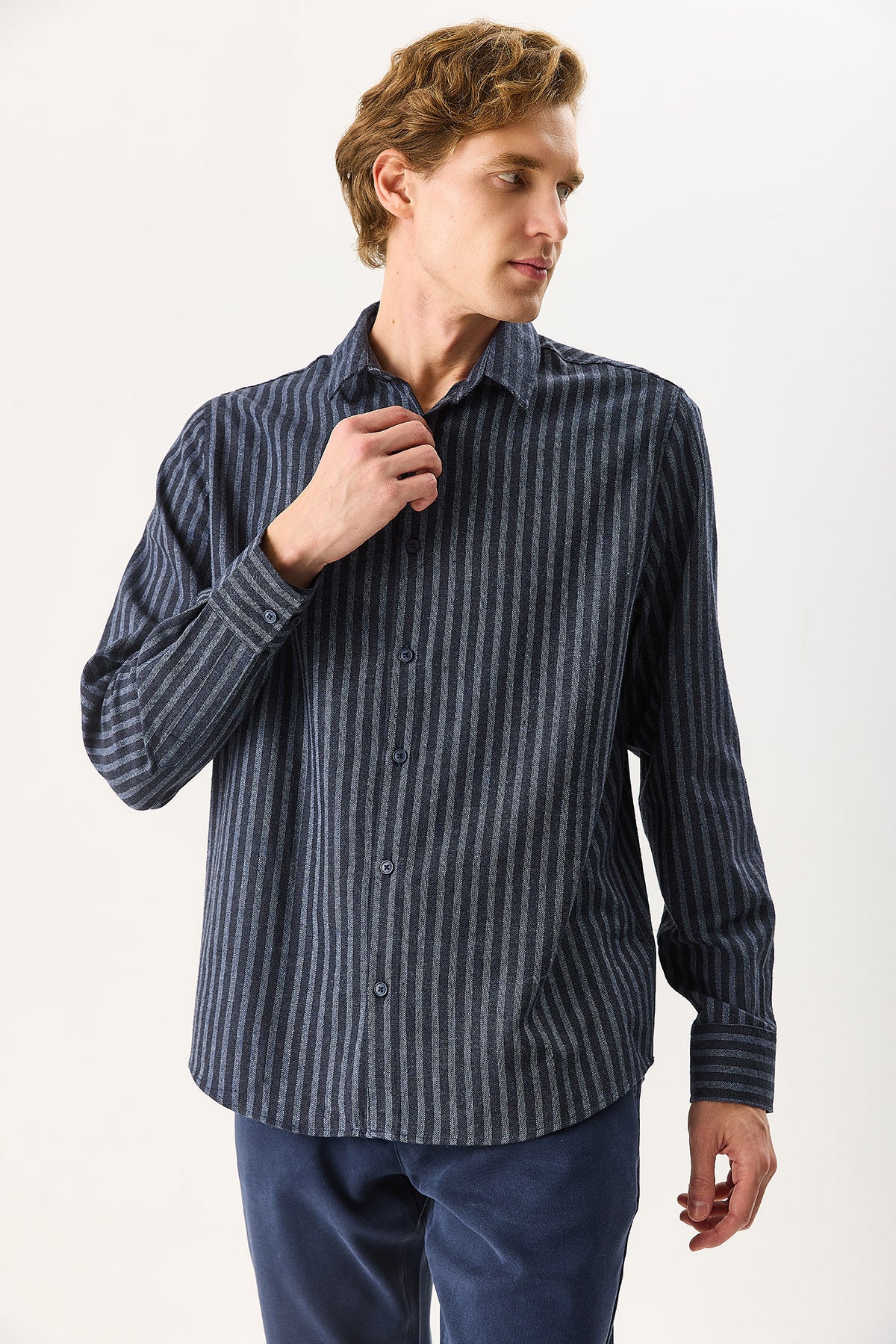 Erkek Regular Fit Çizgili Gömlek - Indigo