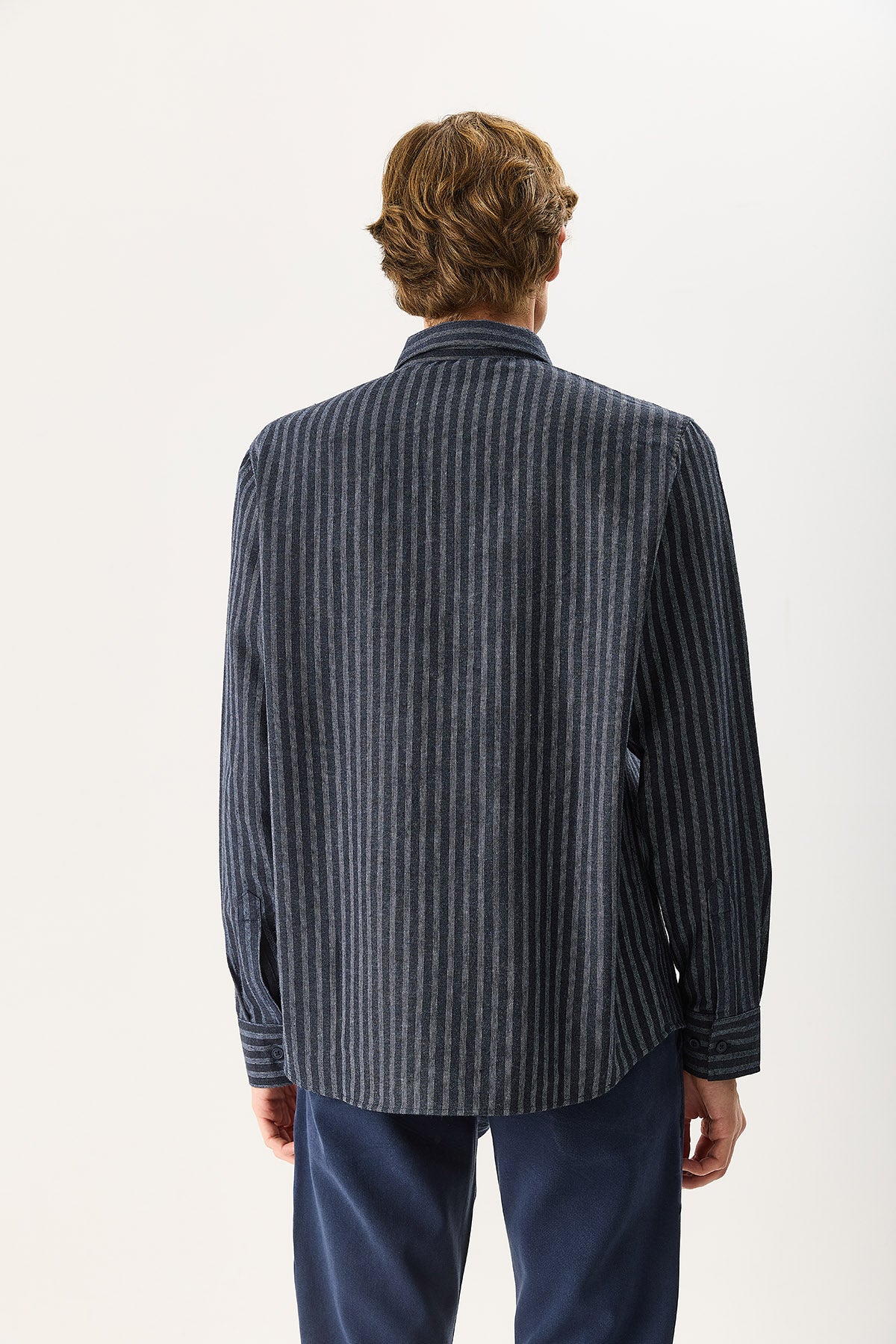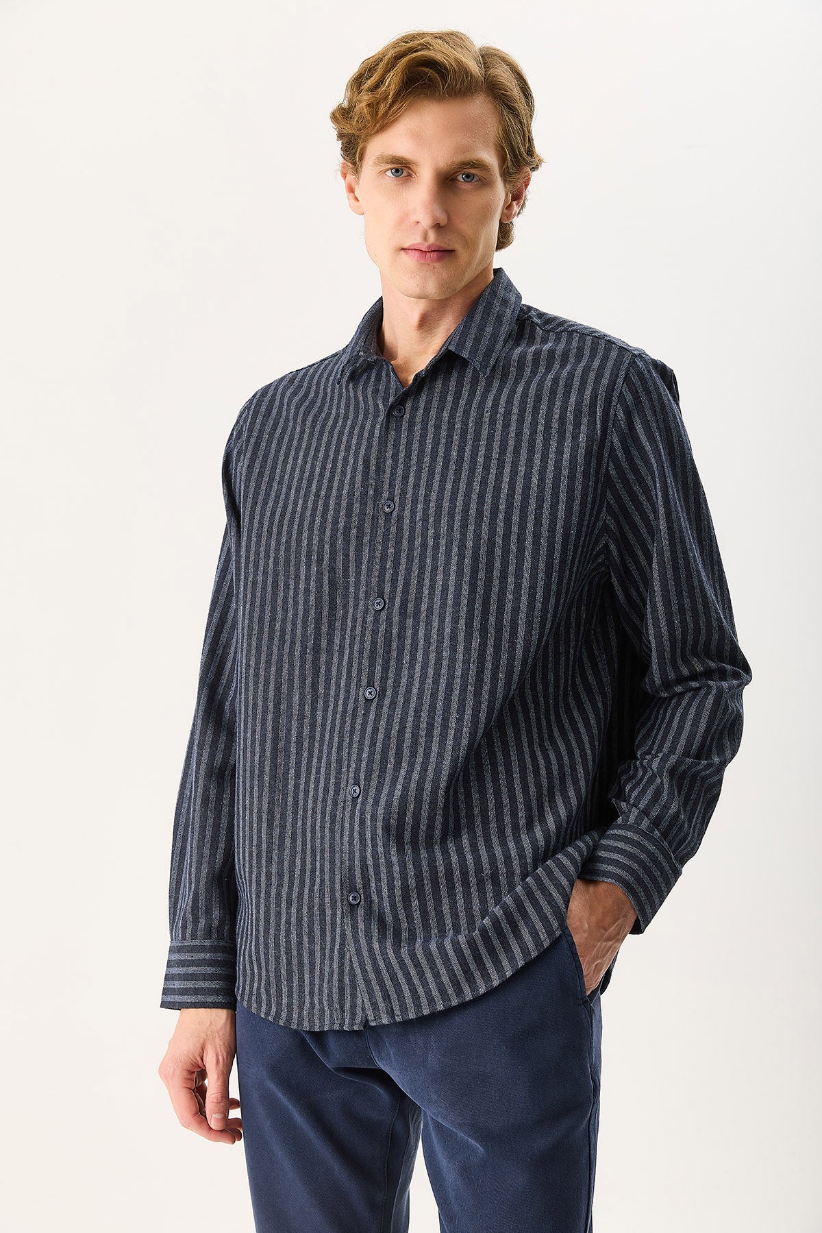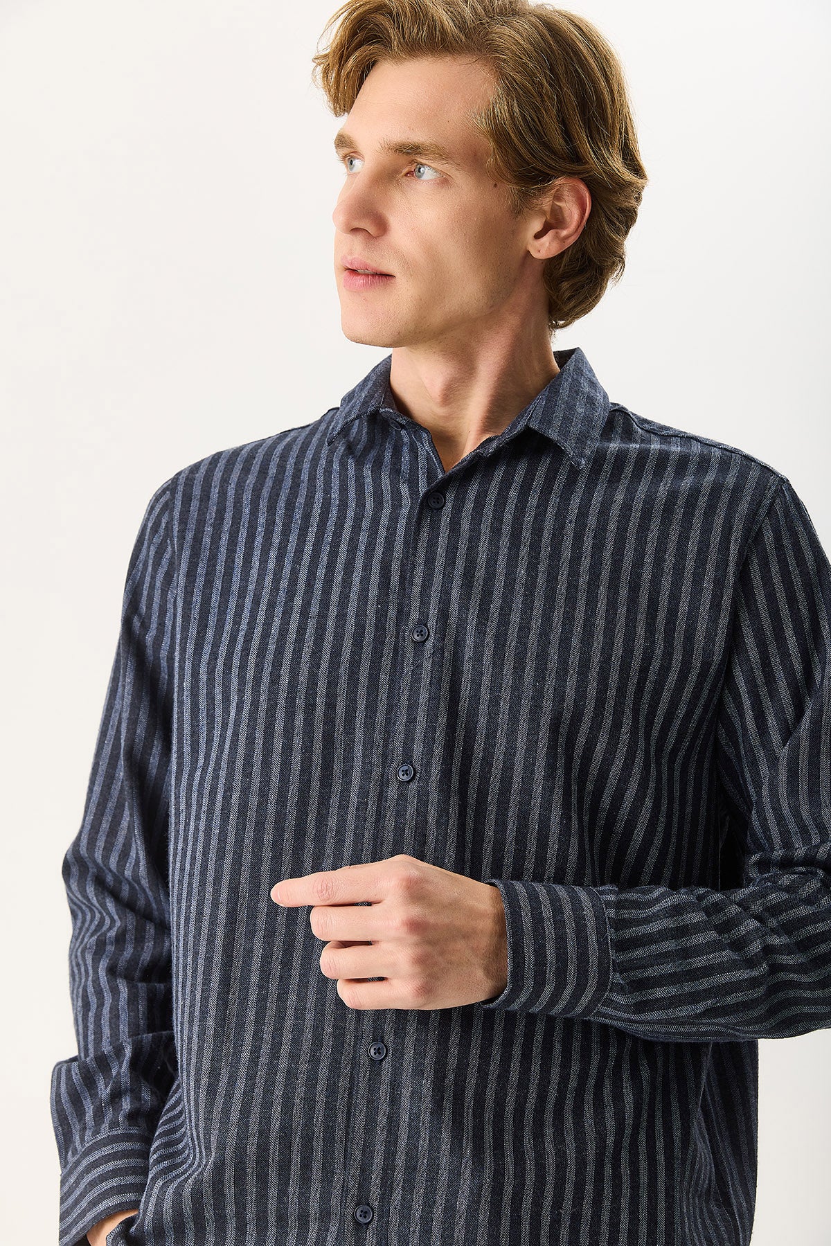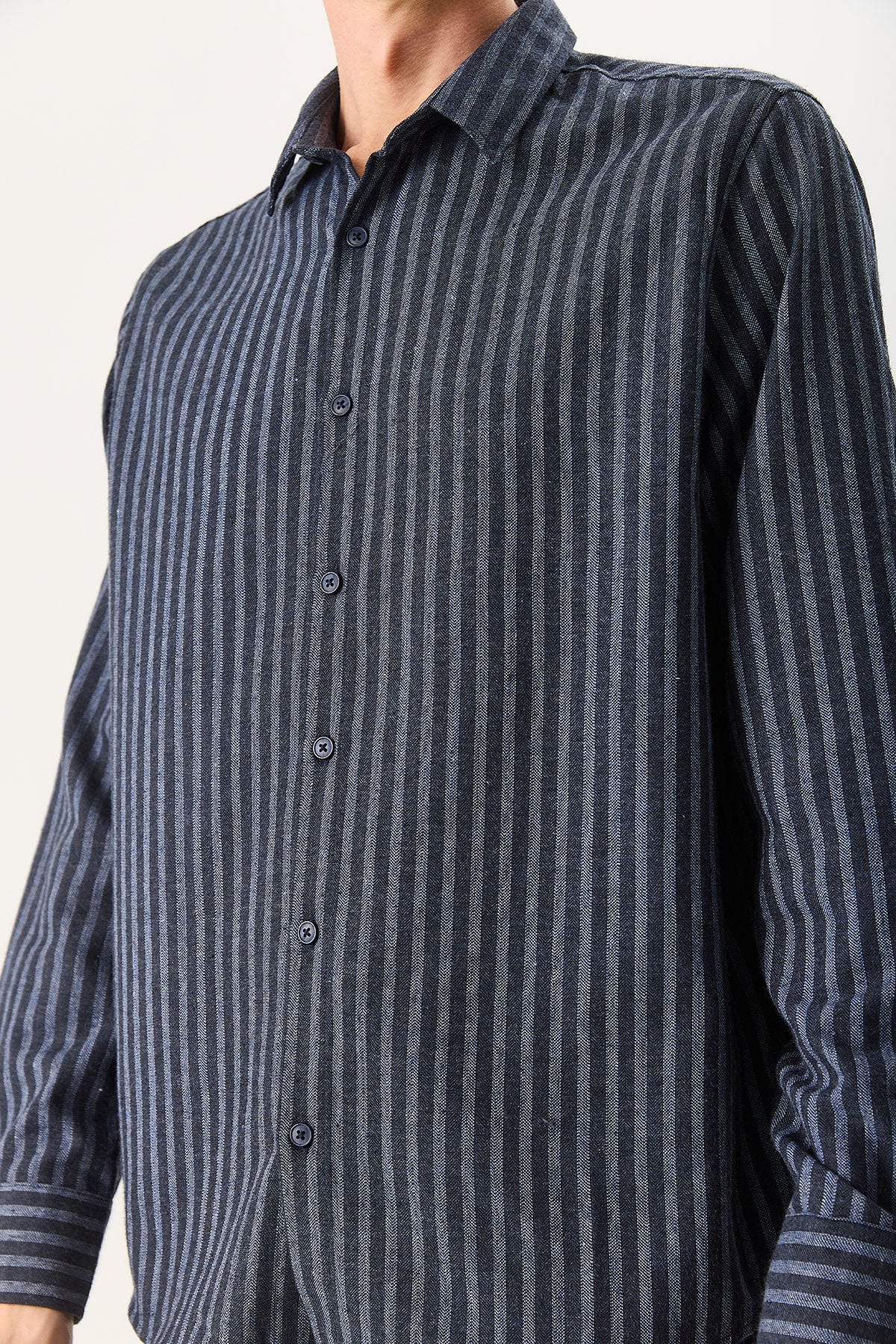 Erkek Regular Fit Çizgili Gömlek - Indigo