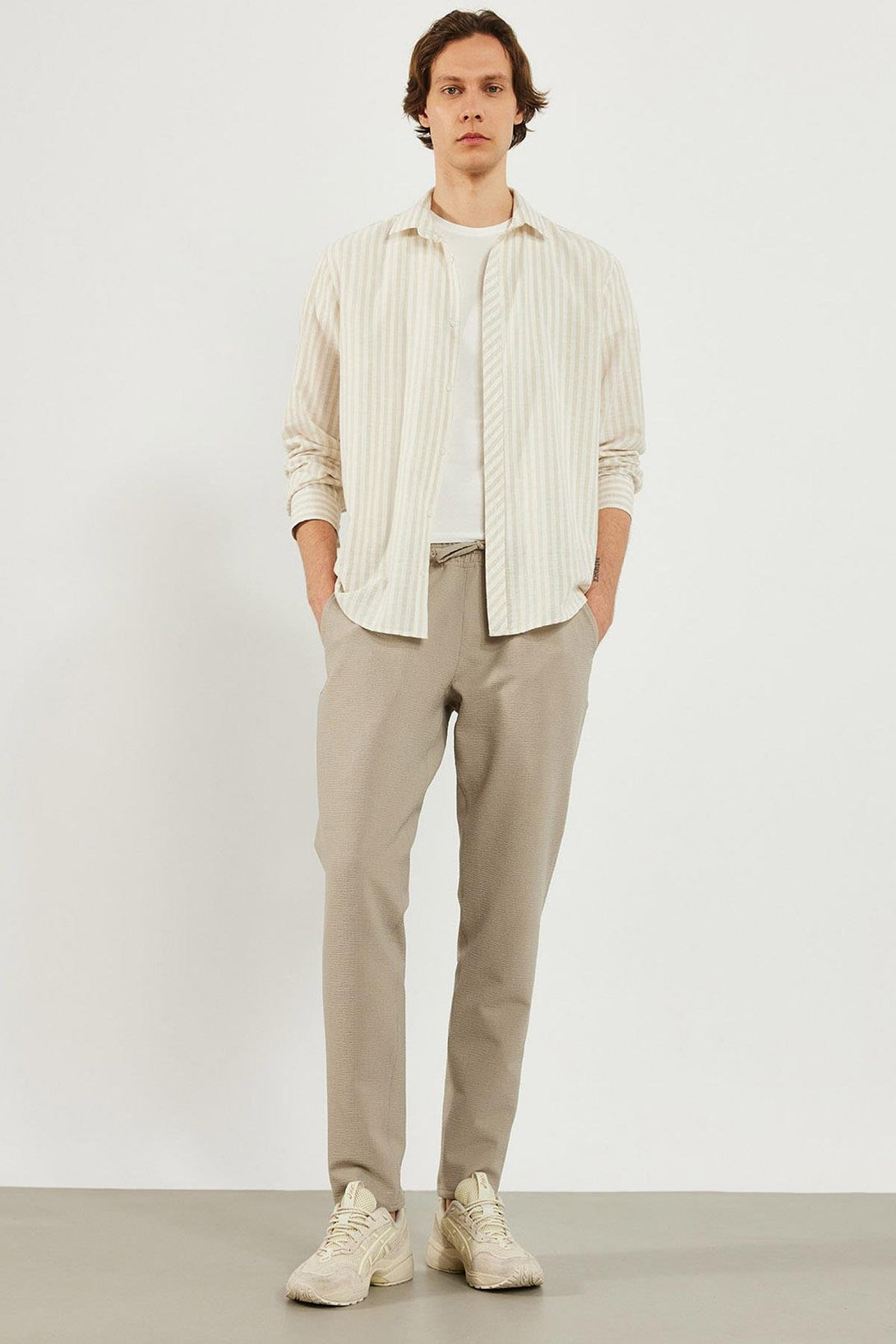 Regular fit kesimi ve çizgili tasarımıyla klasik ve modern bir görünüm sunar.