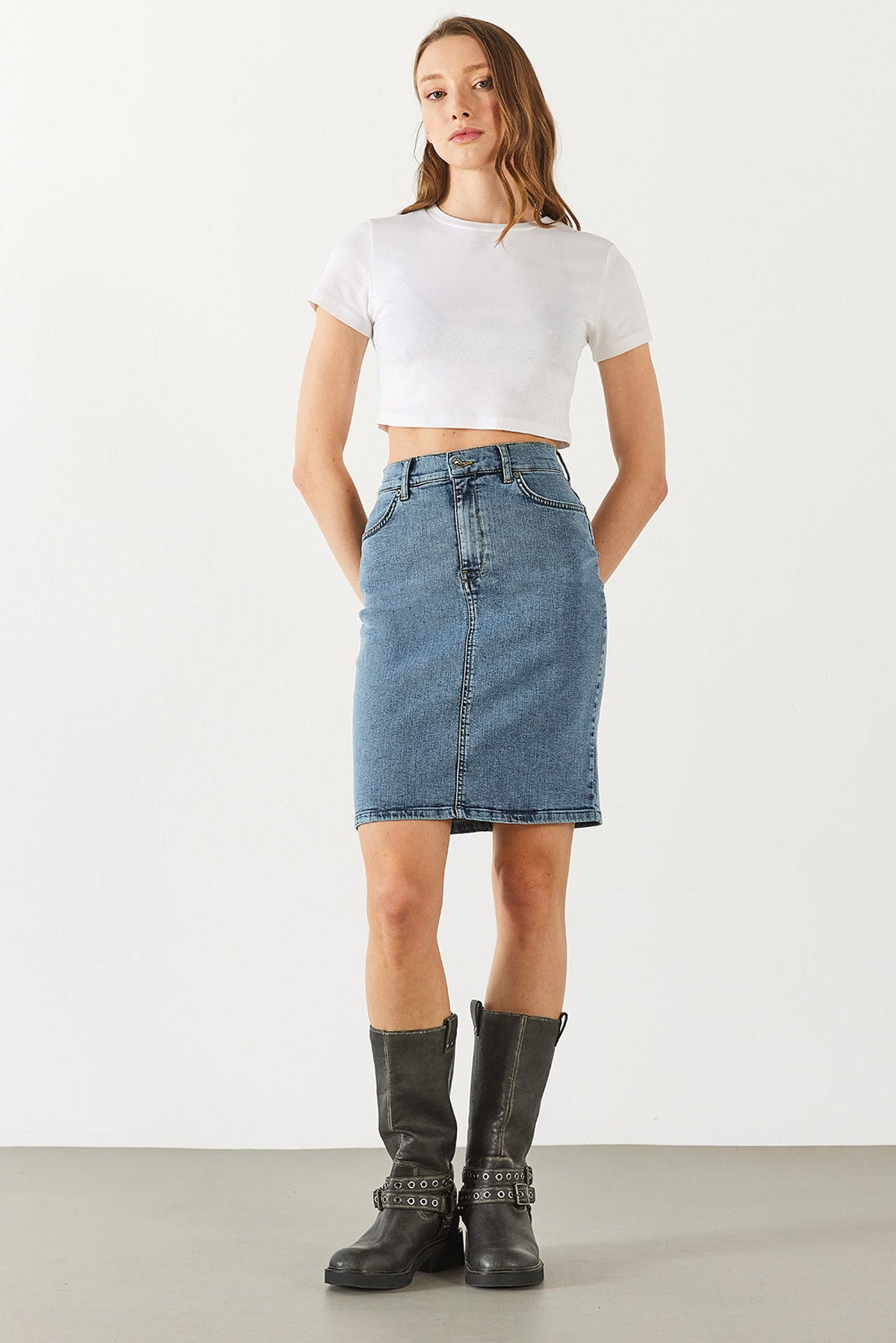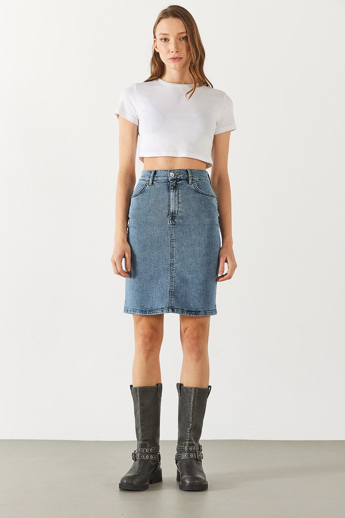Kadın Freya Dirty Med Blue Regular Fit Jean Etek - Dirty Med Blue