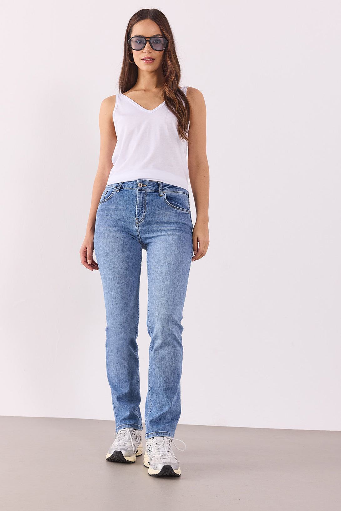 Kadın Gabriel Med Blue Straight Fit Jean Pantolon - Med Blue