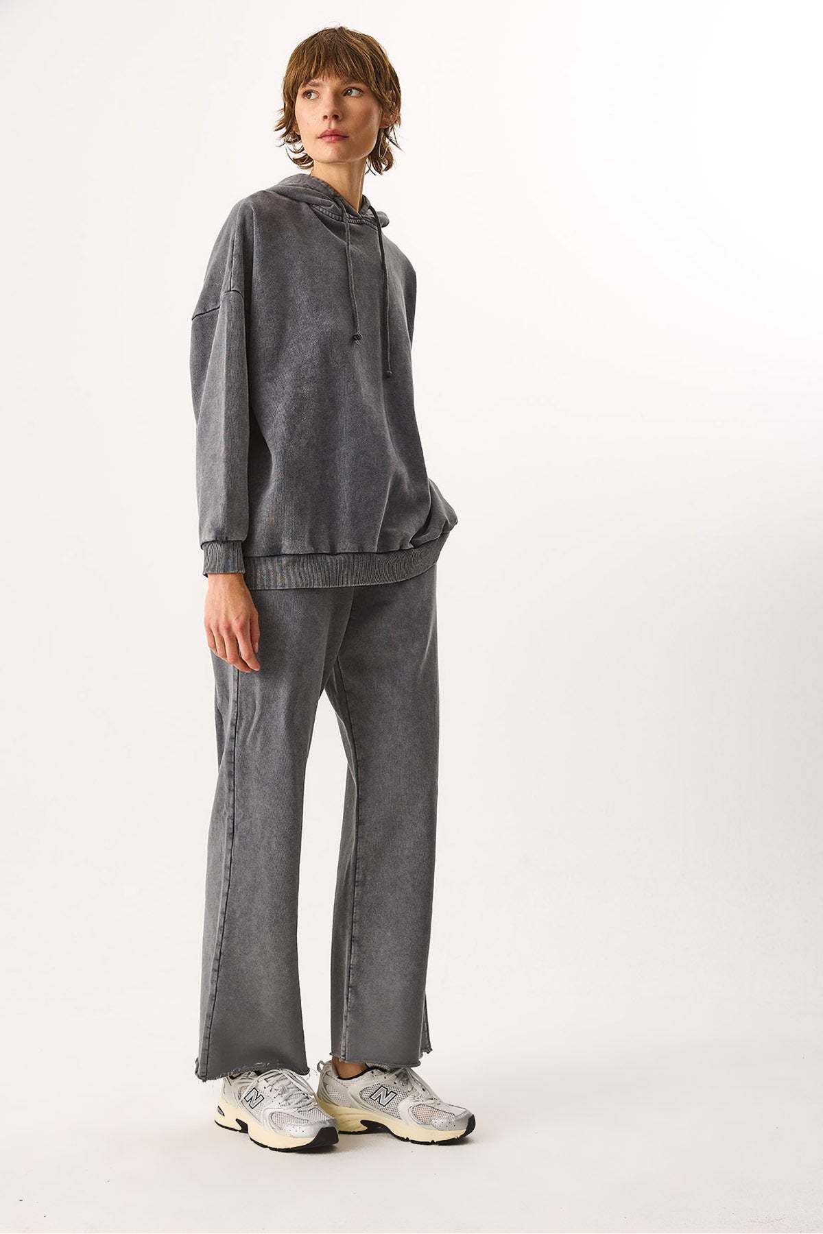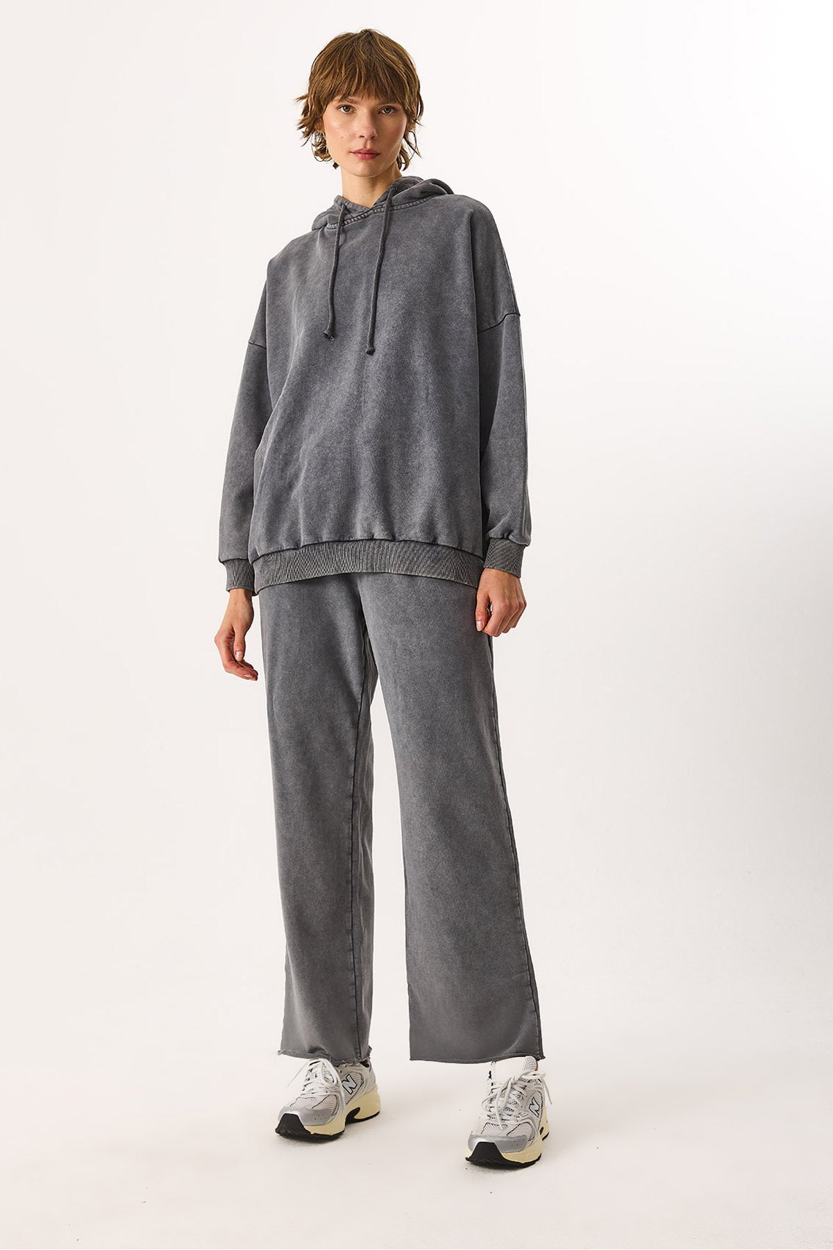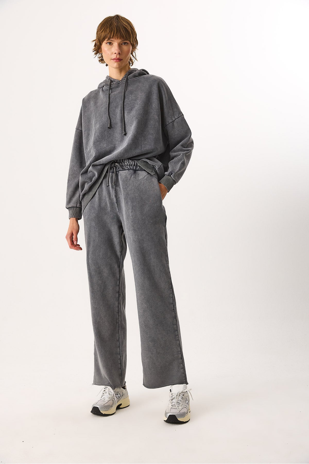 Kadın Geniş Paça Regular Fit Yıkamalı Jogging Pantolon %100 Pamuk - Antrasit