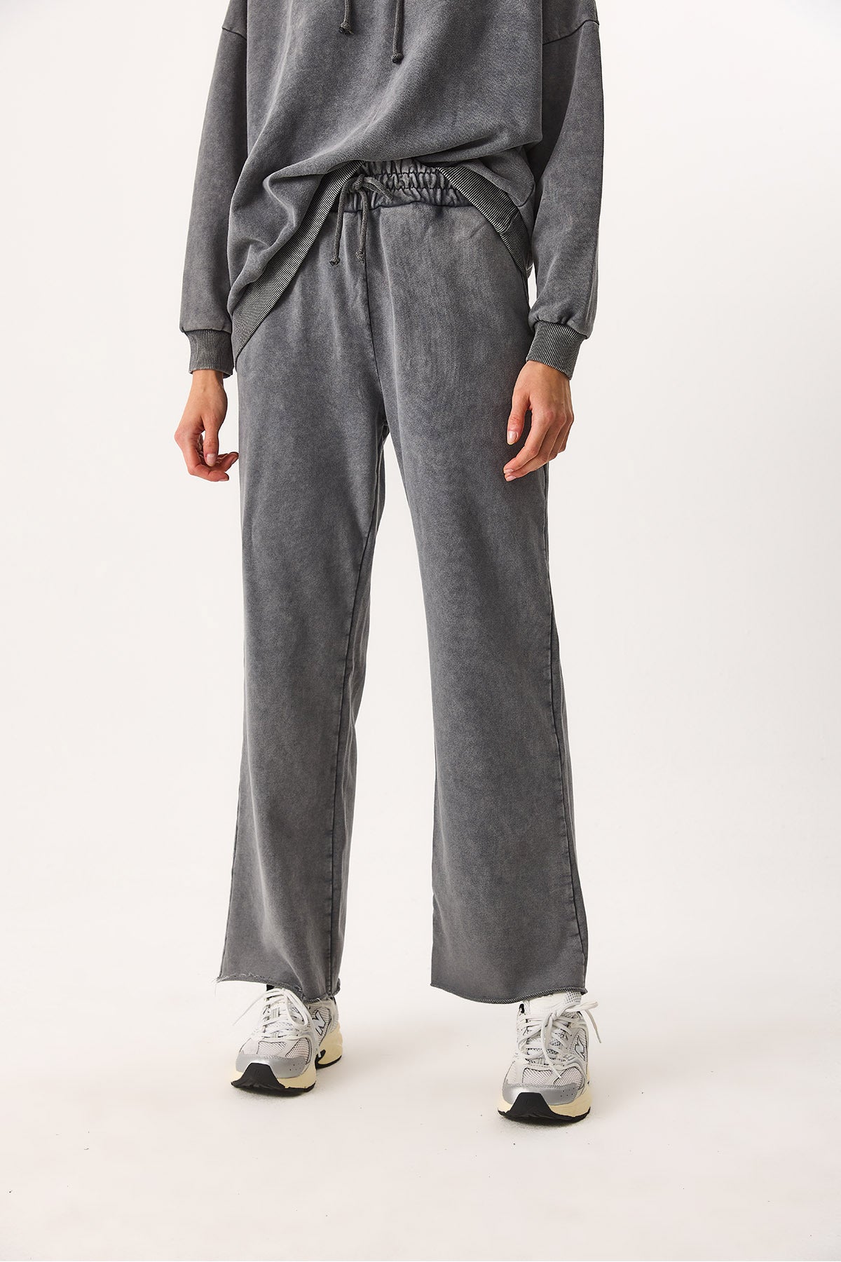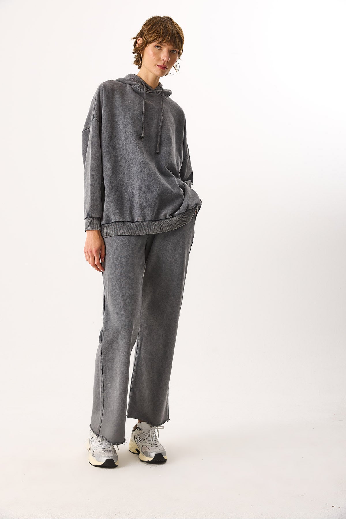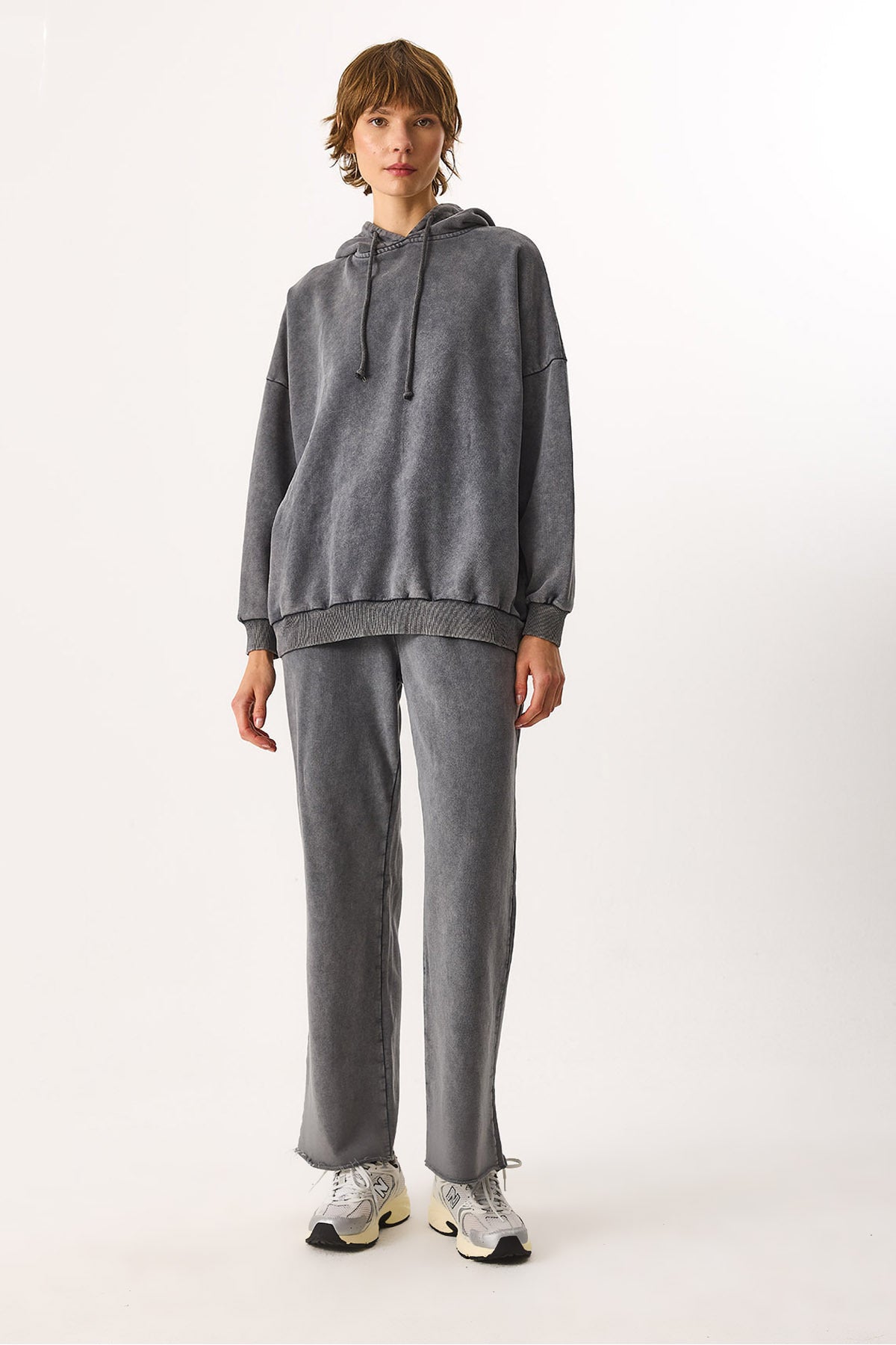 Kadın Geniş Paça Regular Fit Yıkamalı Jogging Pantolon %100 Pamuk - Antrasit