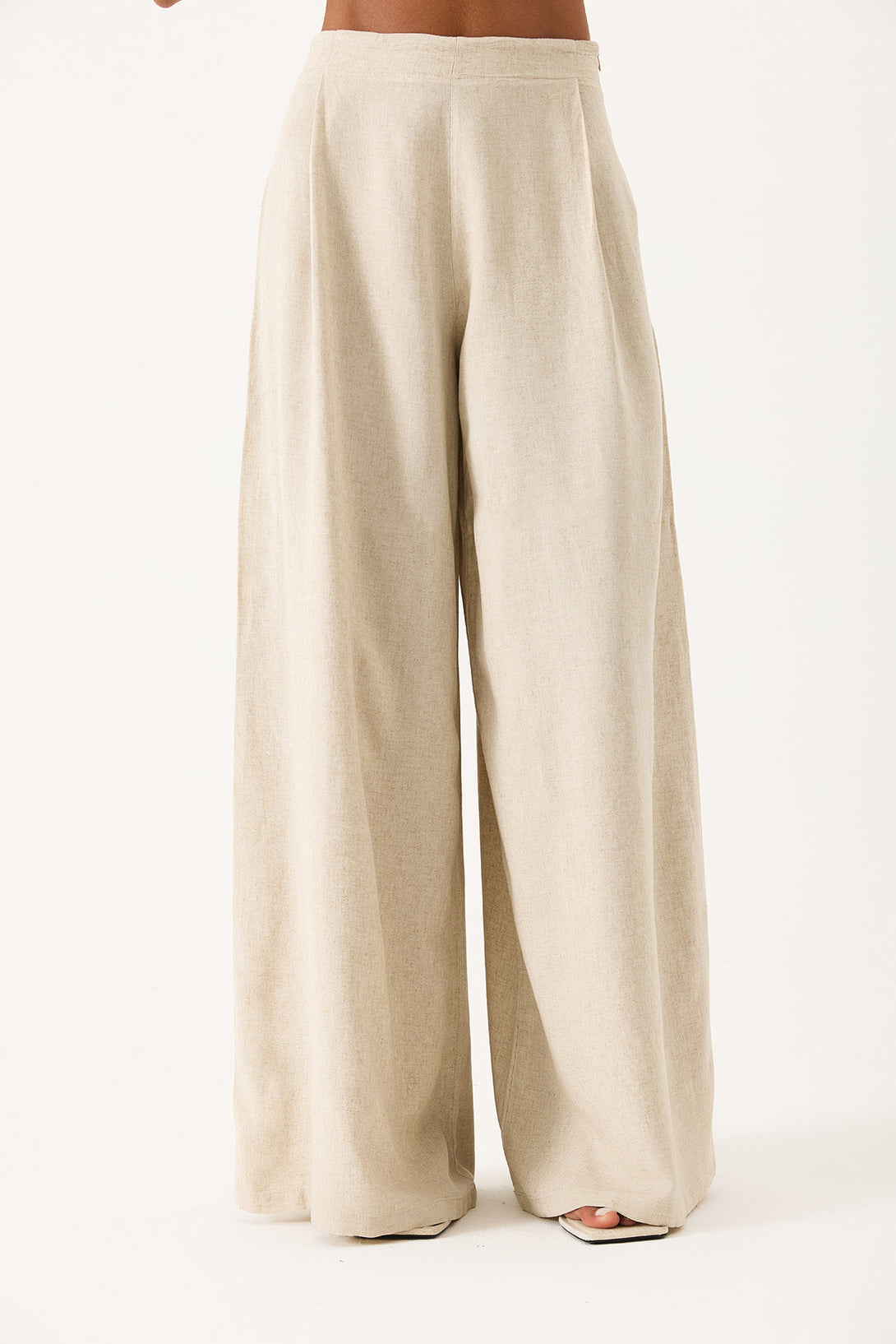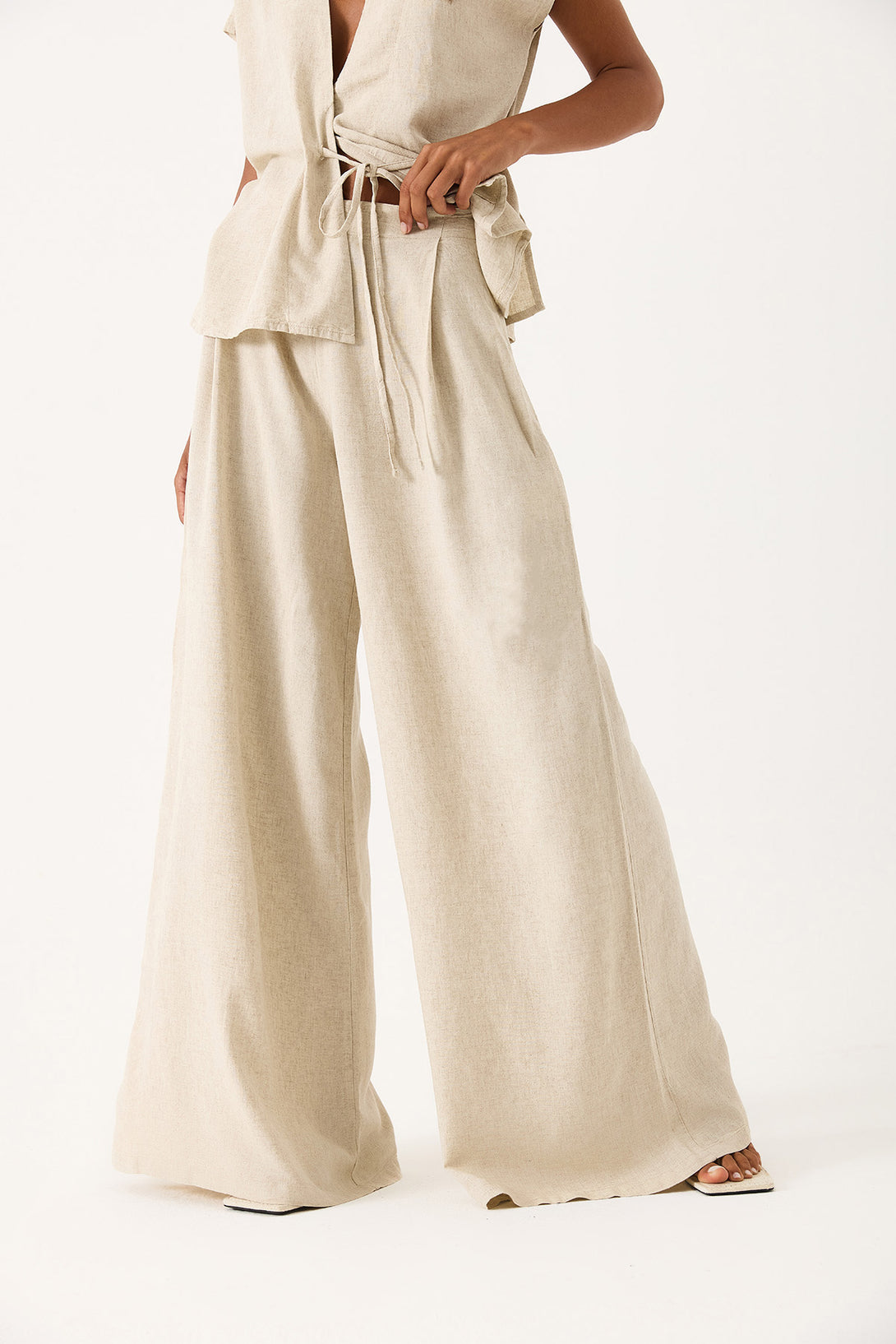 Geniş Paçalı Dökümlü Pantolon - NATUREL