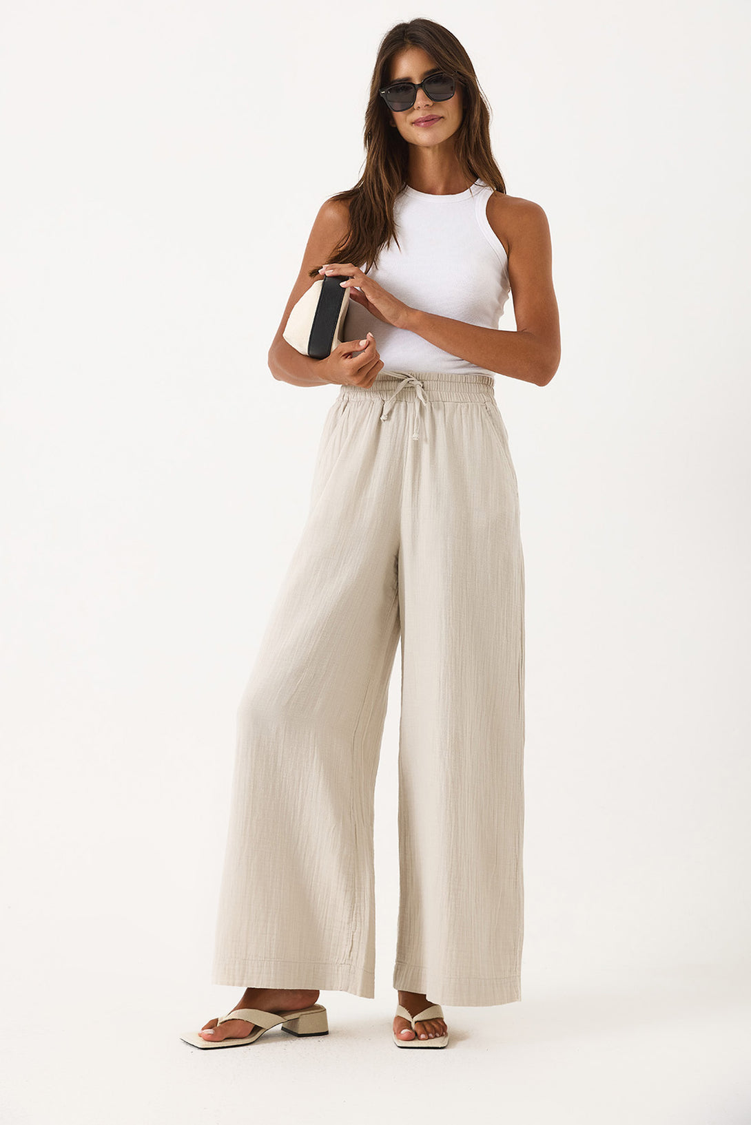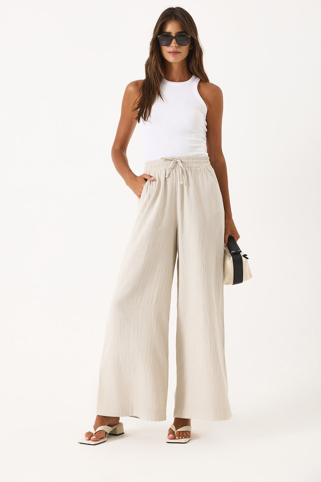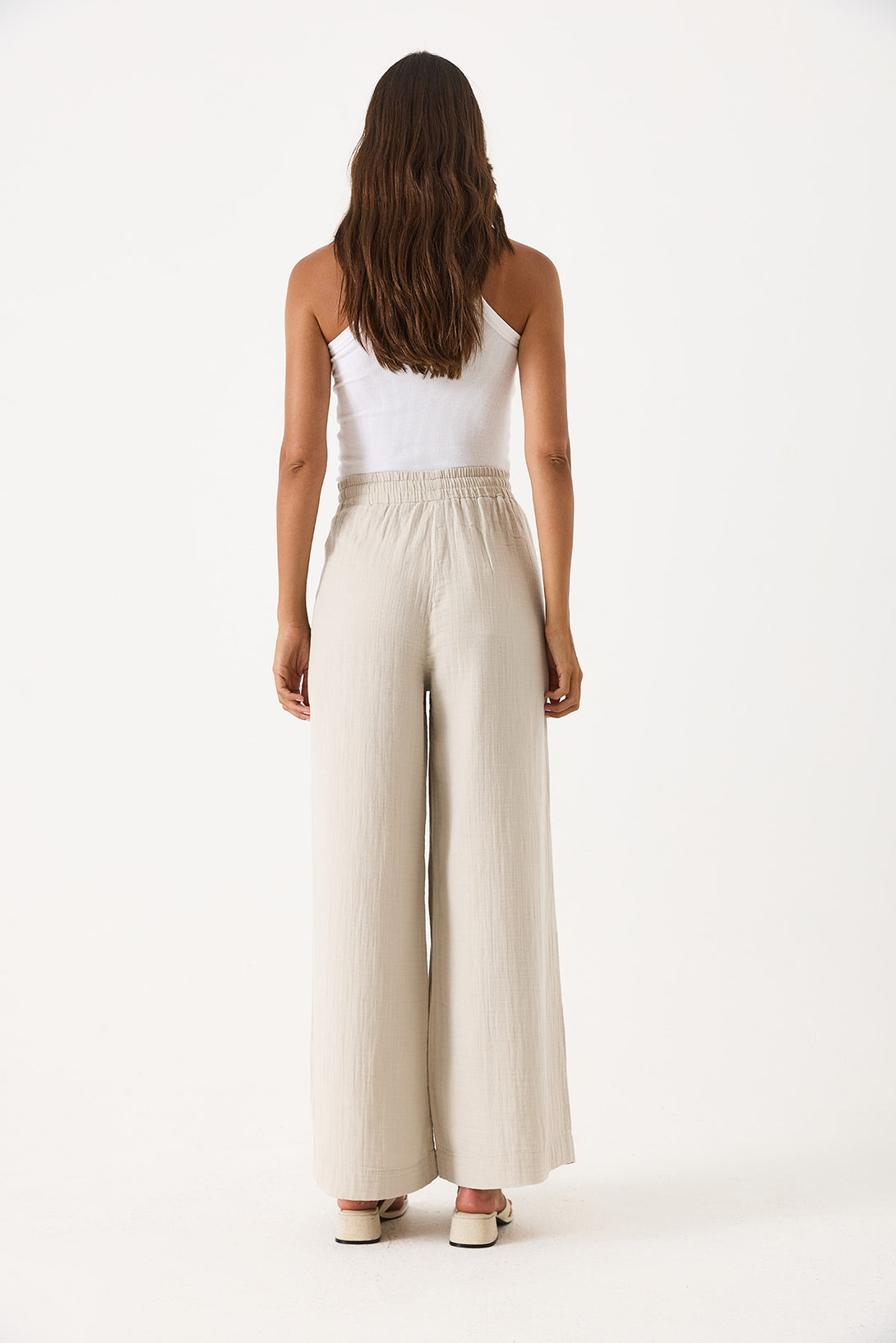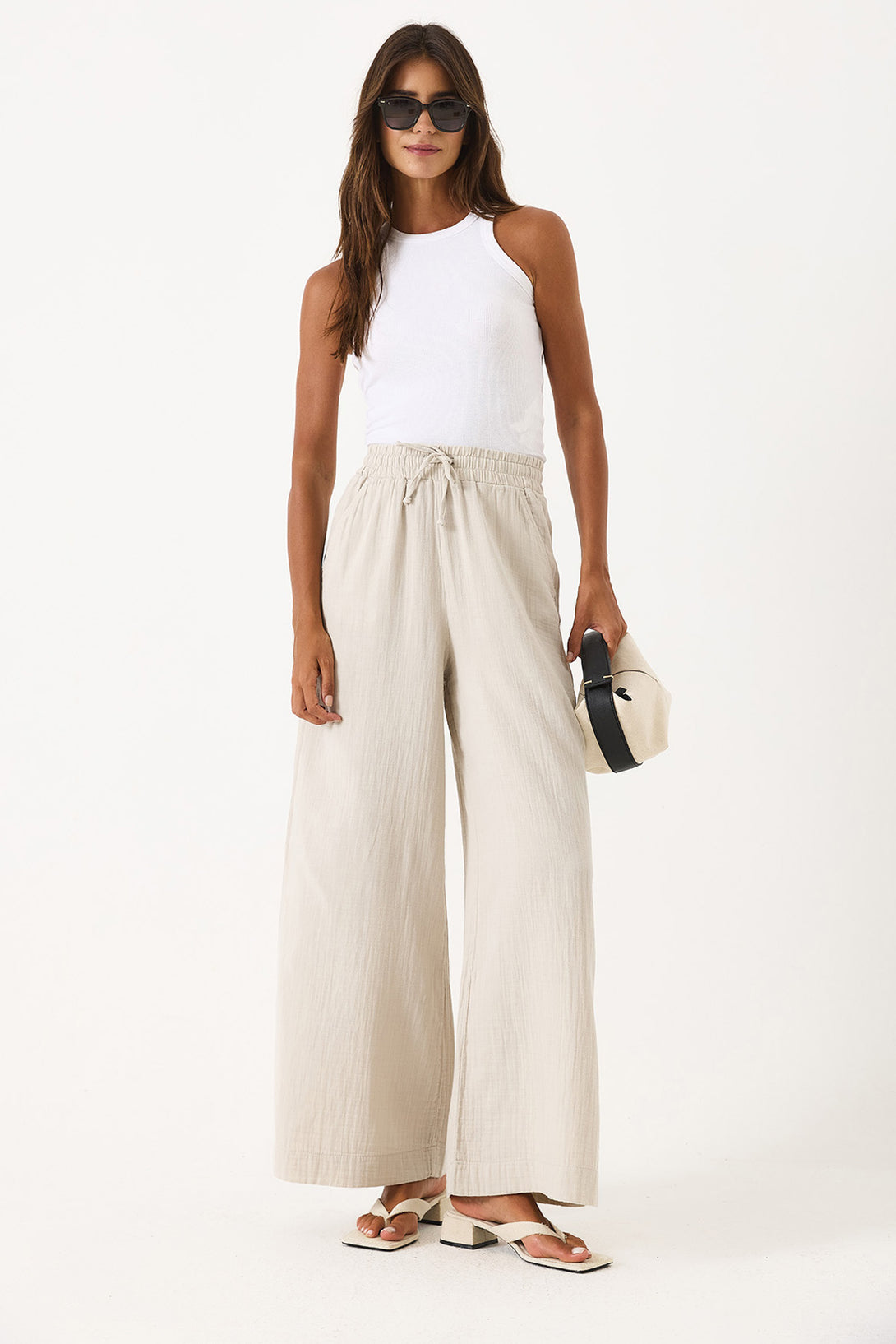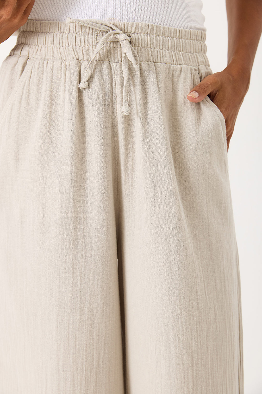Gigi Yüksek Bel Wide Leg Müslin Pantolon - TAŞ