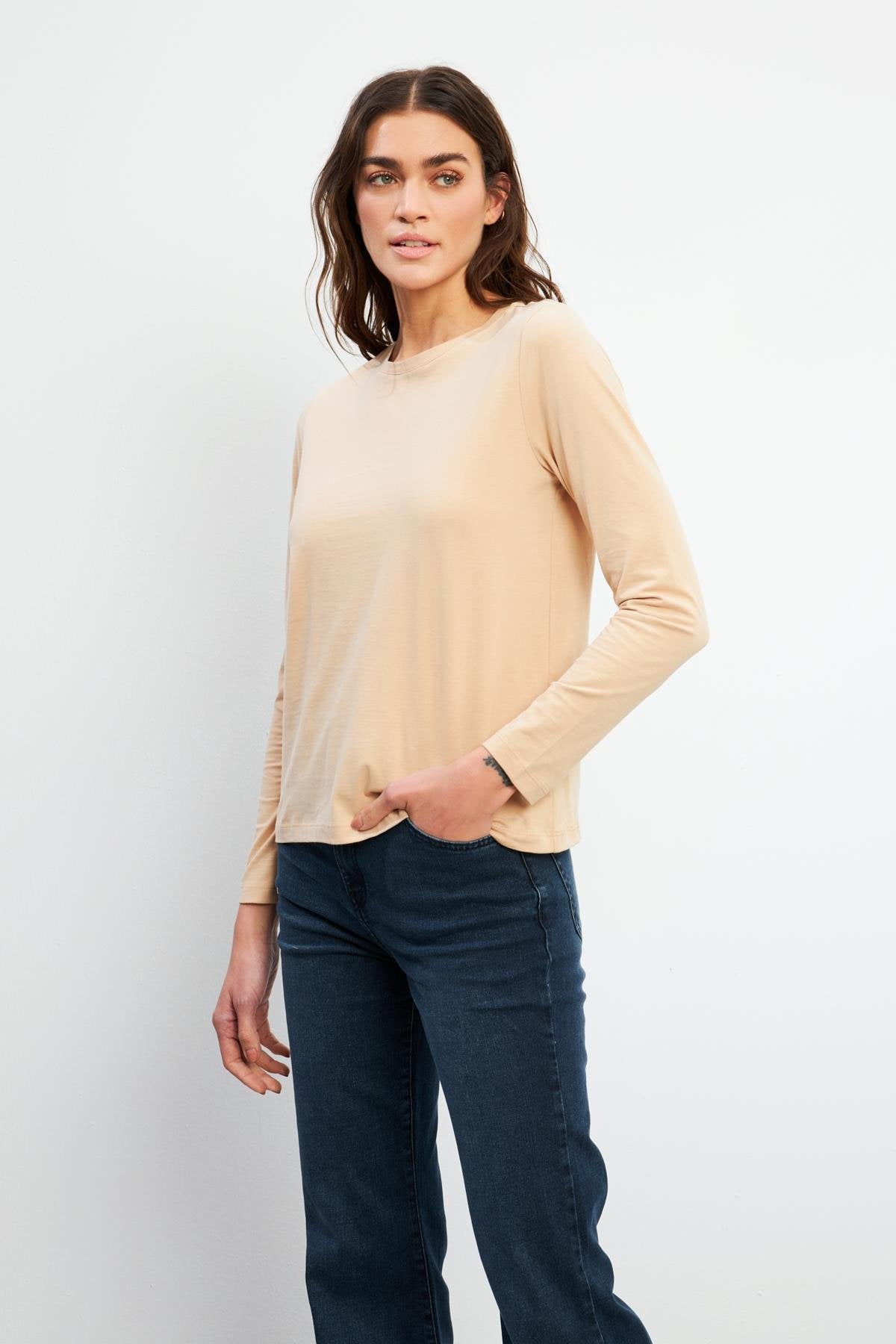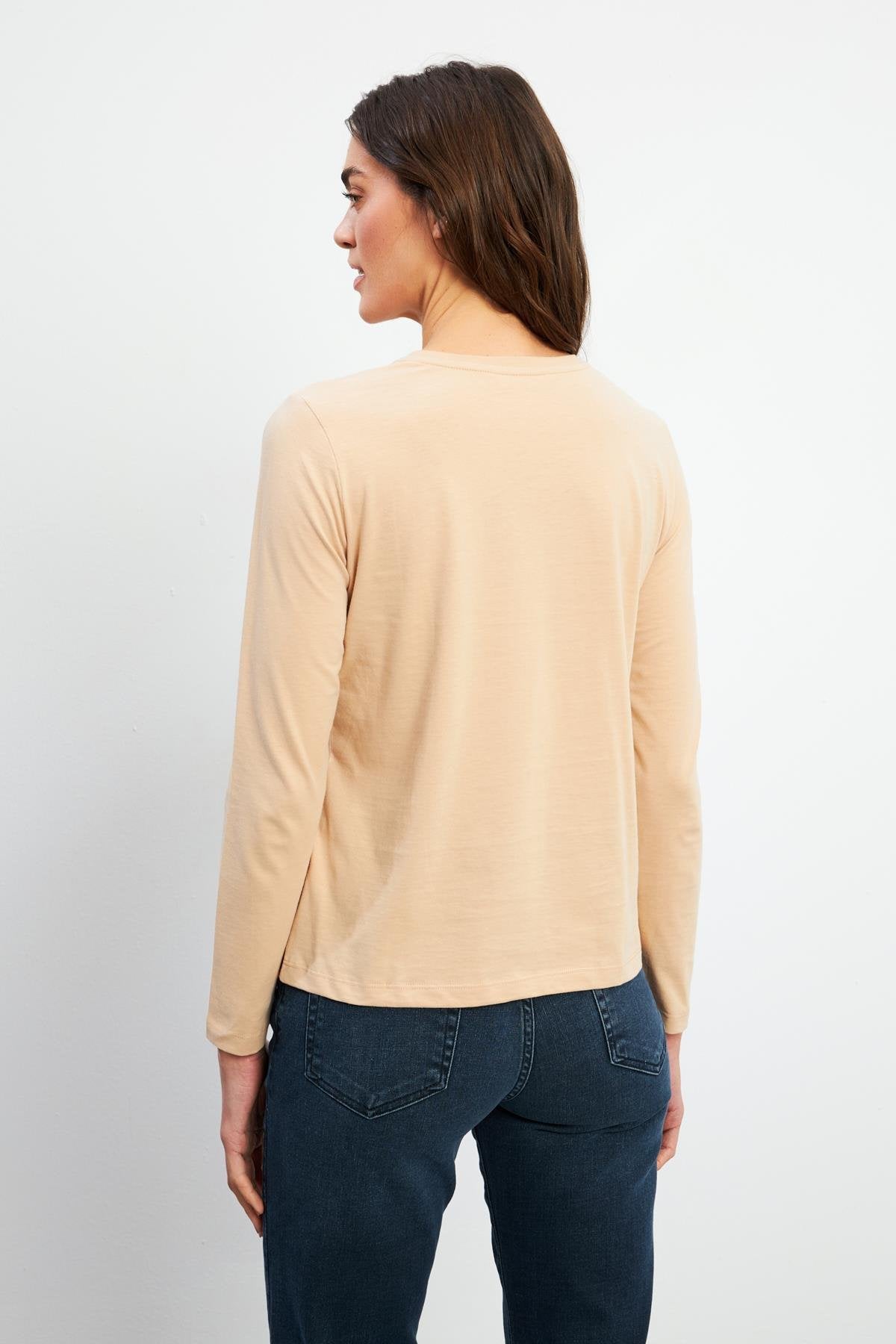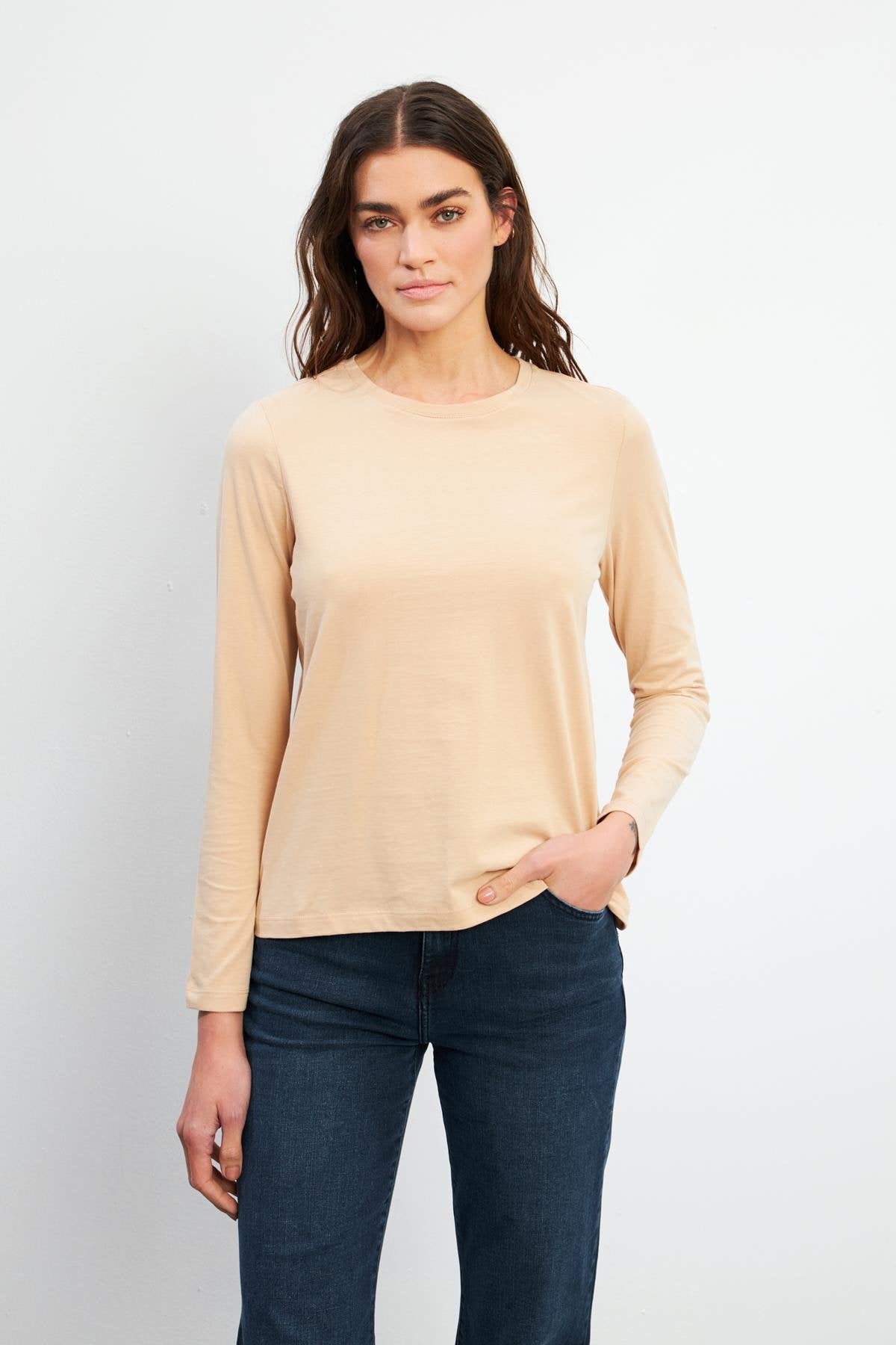 Kadın Gloria Bisiklet Yaka Regular Fit Uzun Kollu Basic Tişört %100 Pamuk - Kum