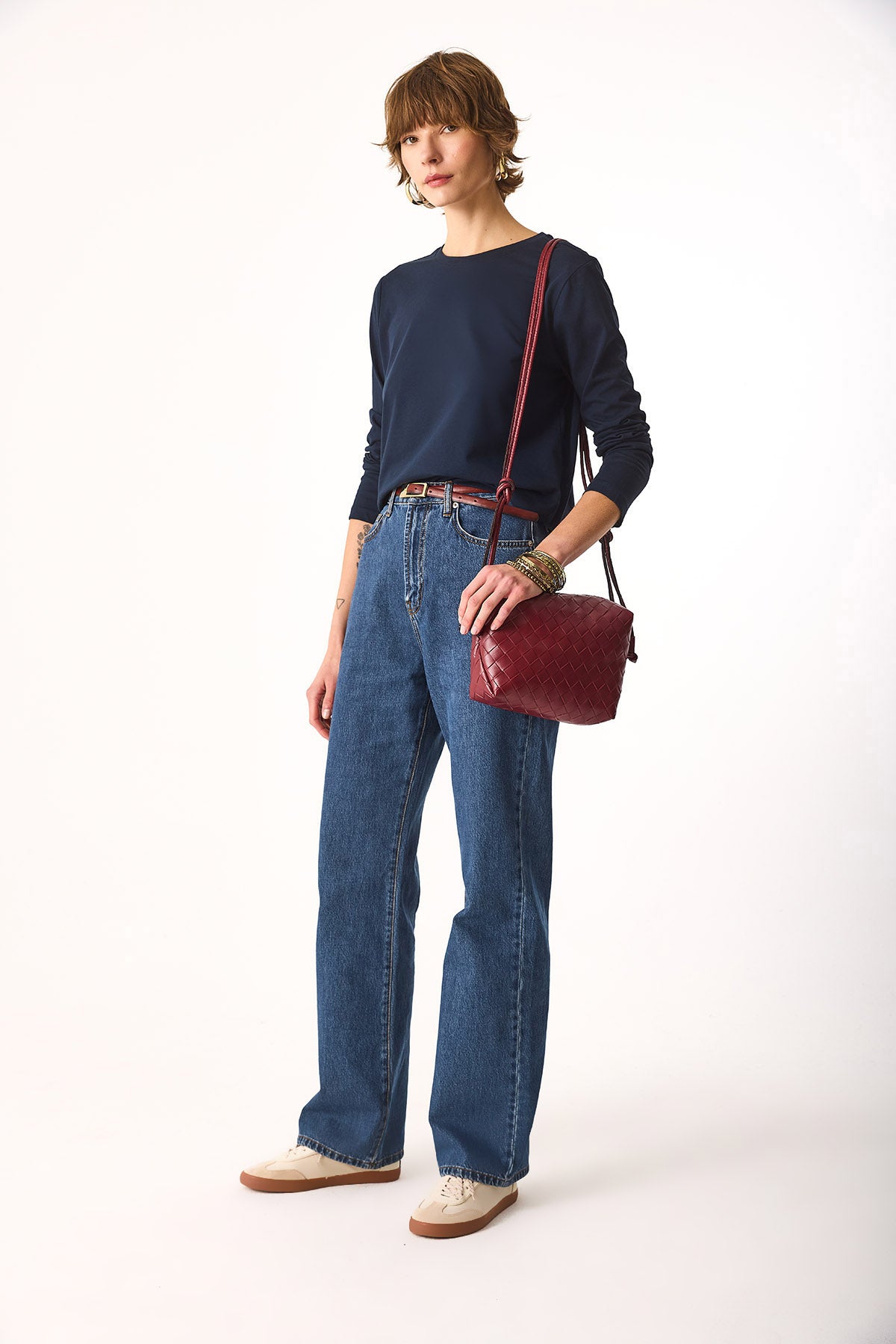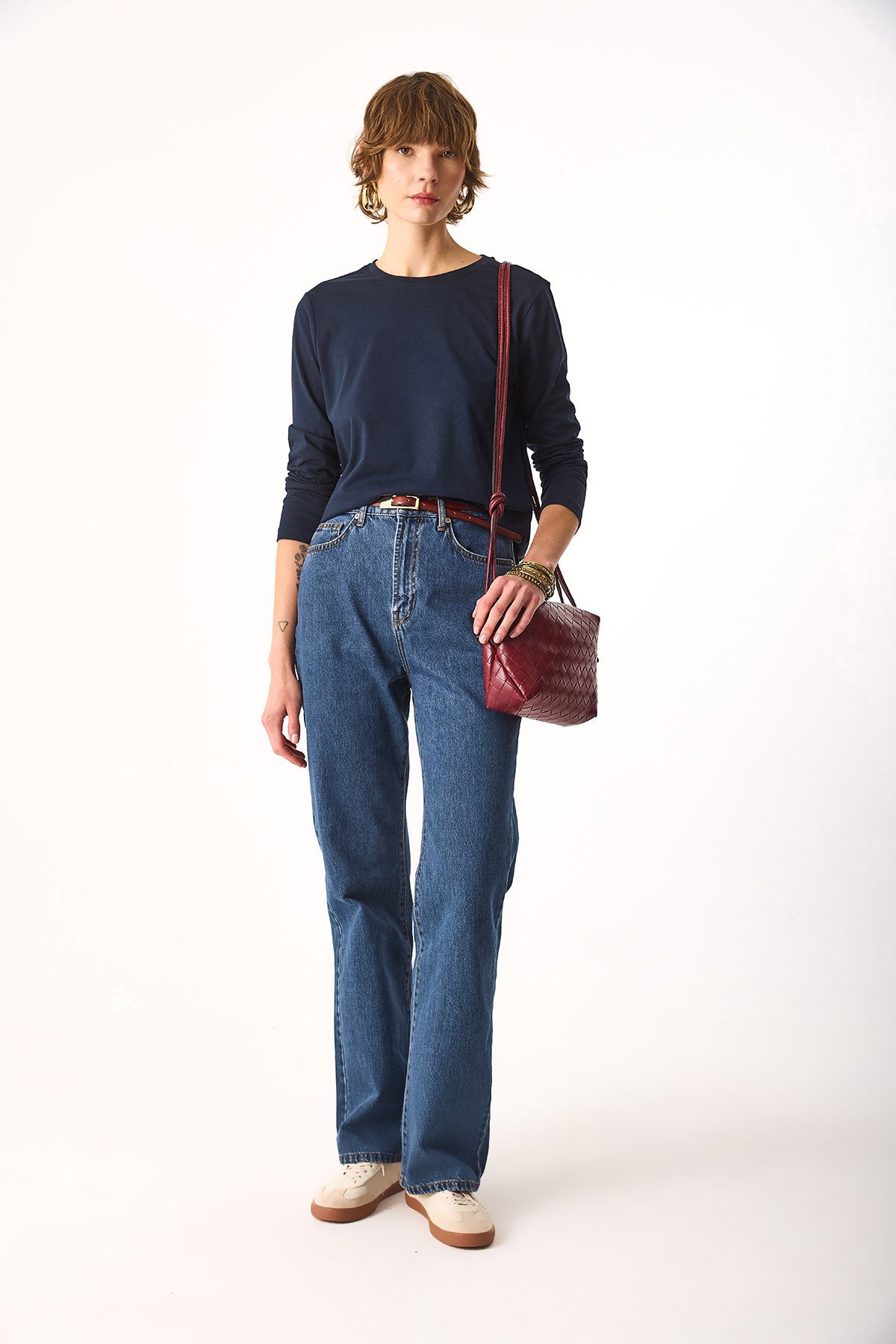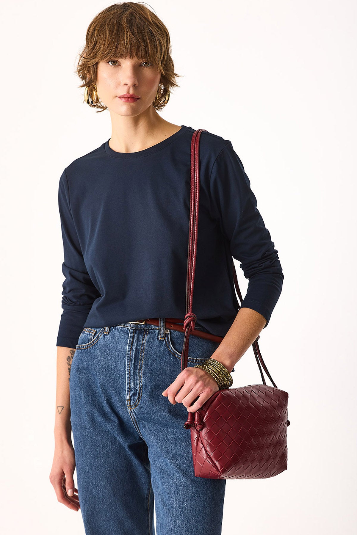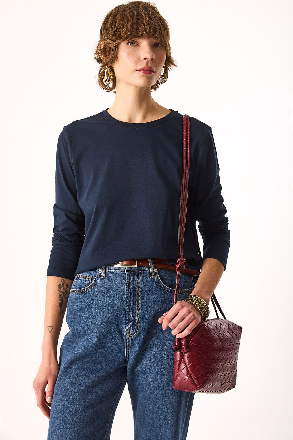 Kadın Gloria Bisiklet Yaka Regular Fit Uzun Kollu Tişört %100 Pamuk - Lacivert