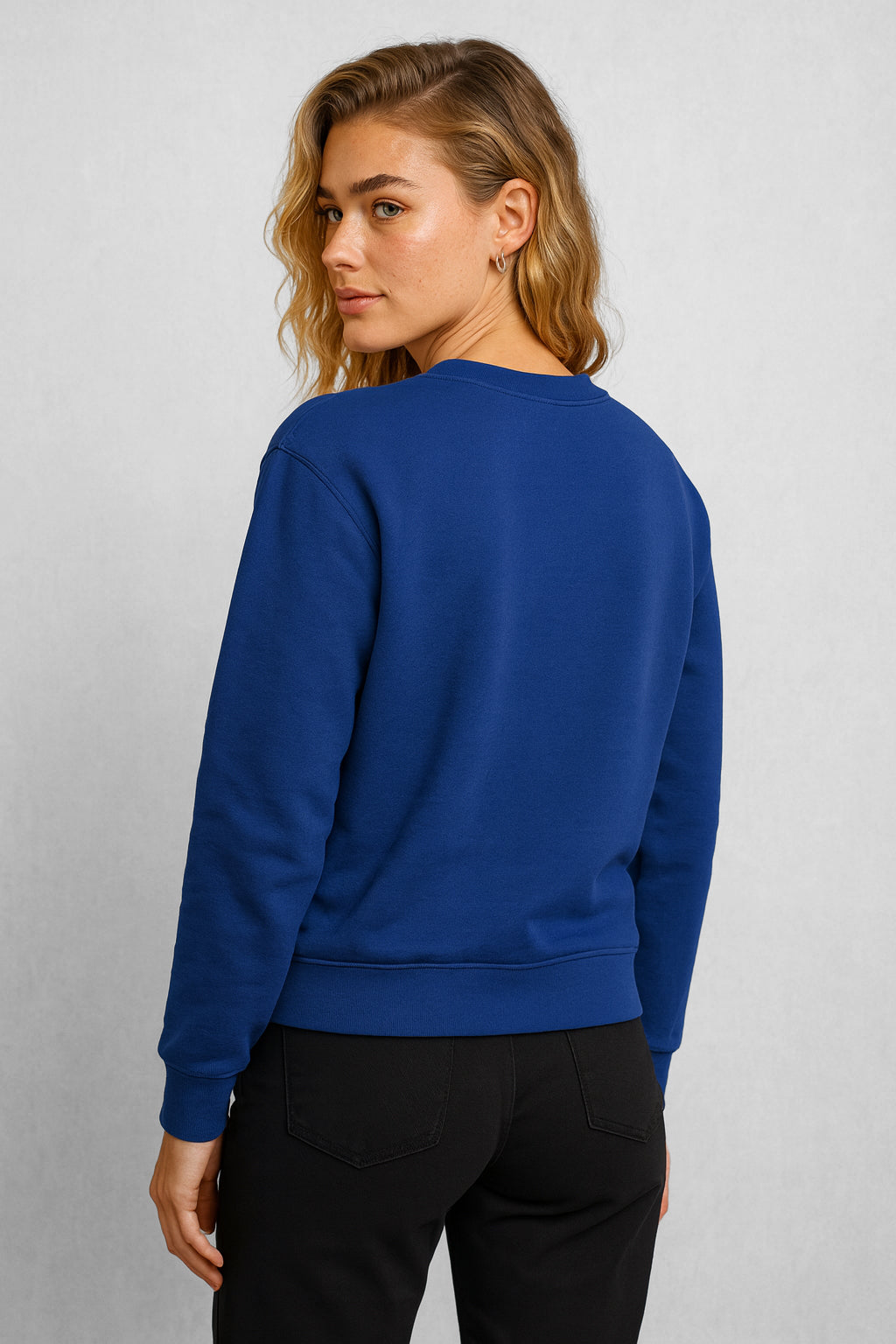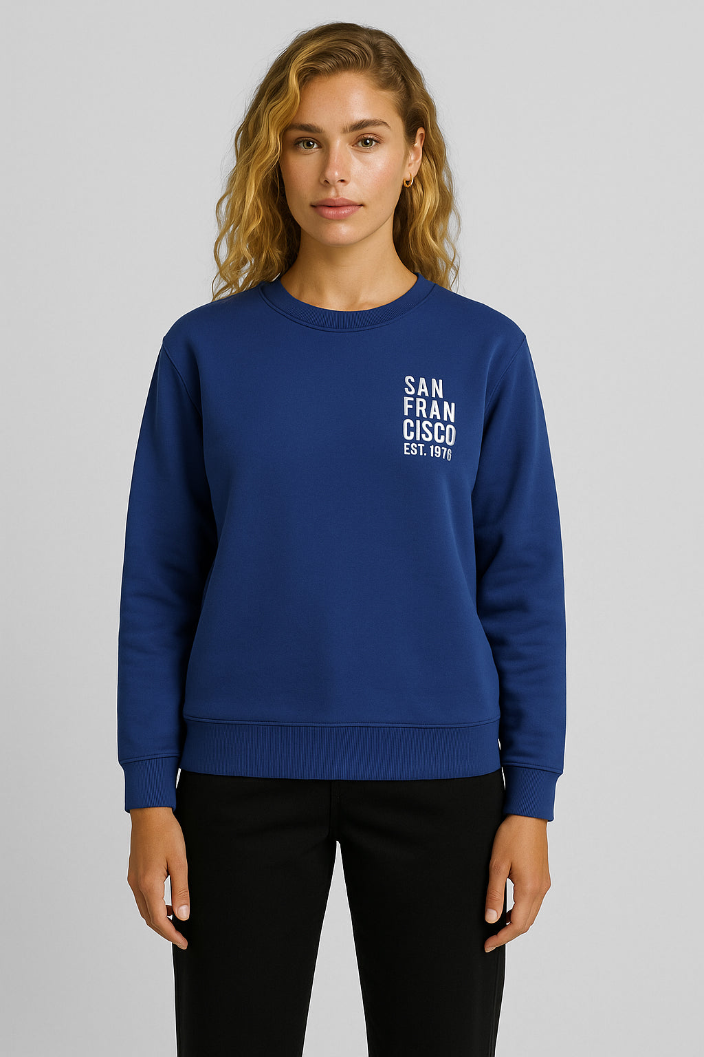 Kadın Göğsü Baskılı Basic Sweatshirt %100 Pamuk - Navy