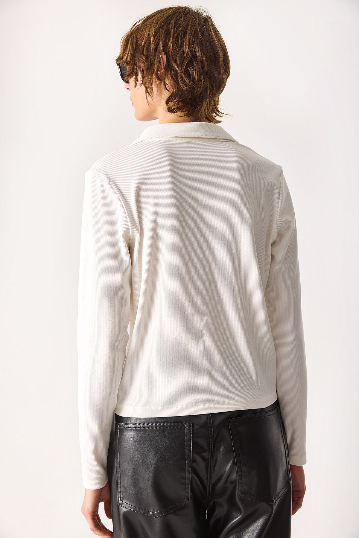 Kadın Gömlek Formlu Kaşkorse Tişört - Fildişi