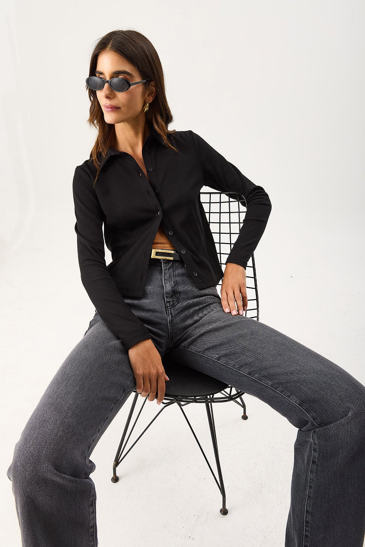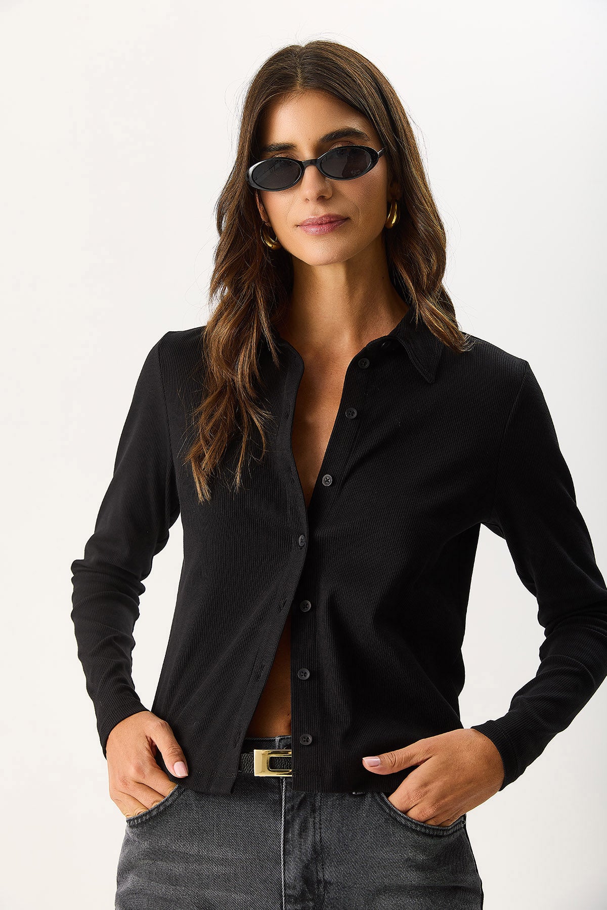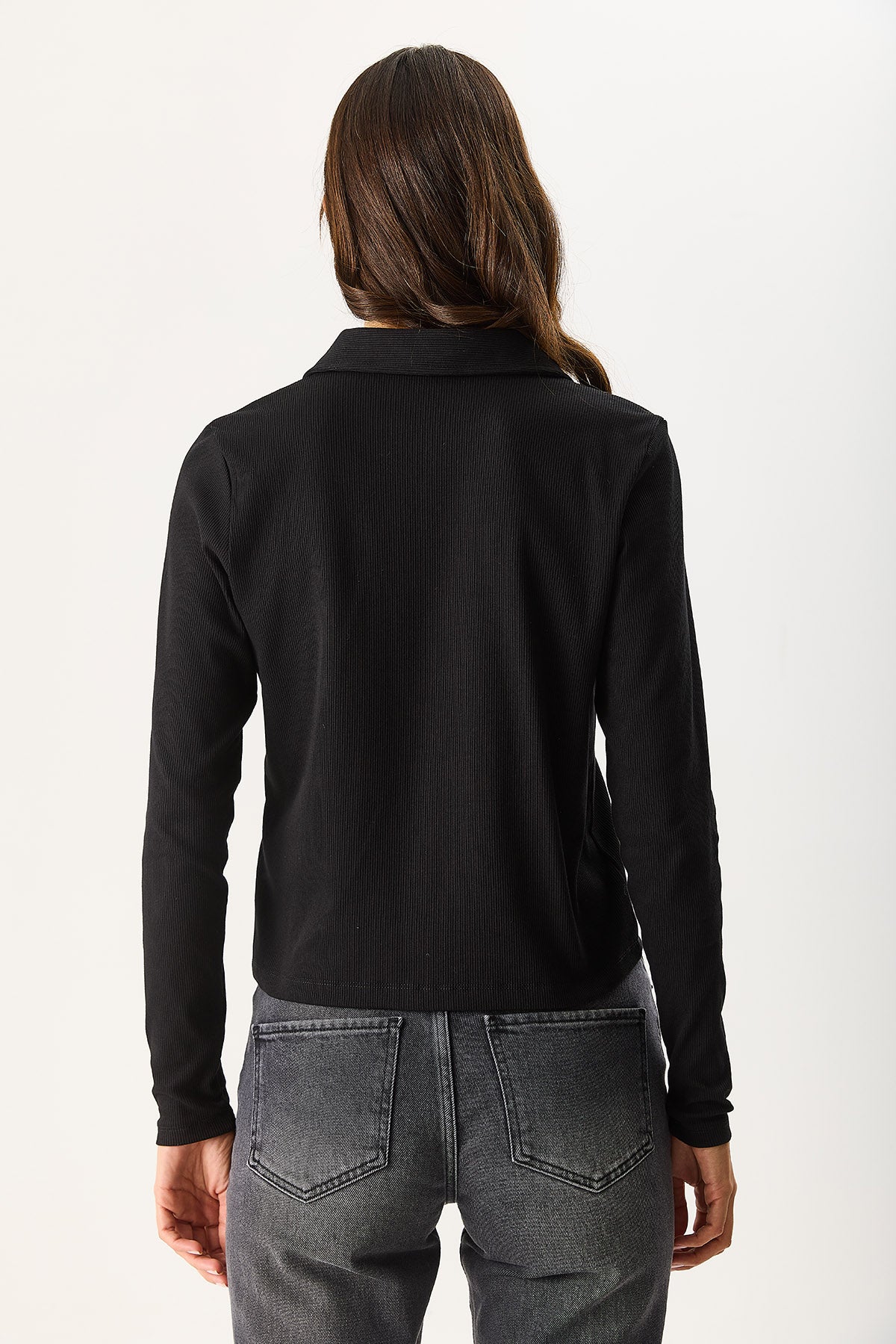 Kadın Gömlek Formlu Kaşkorse Tişört - Siyah