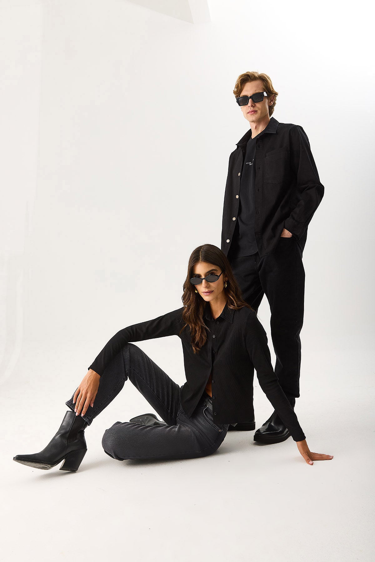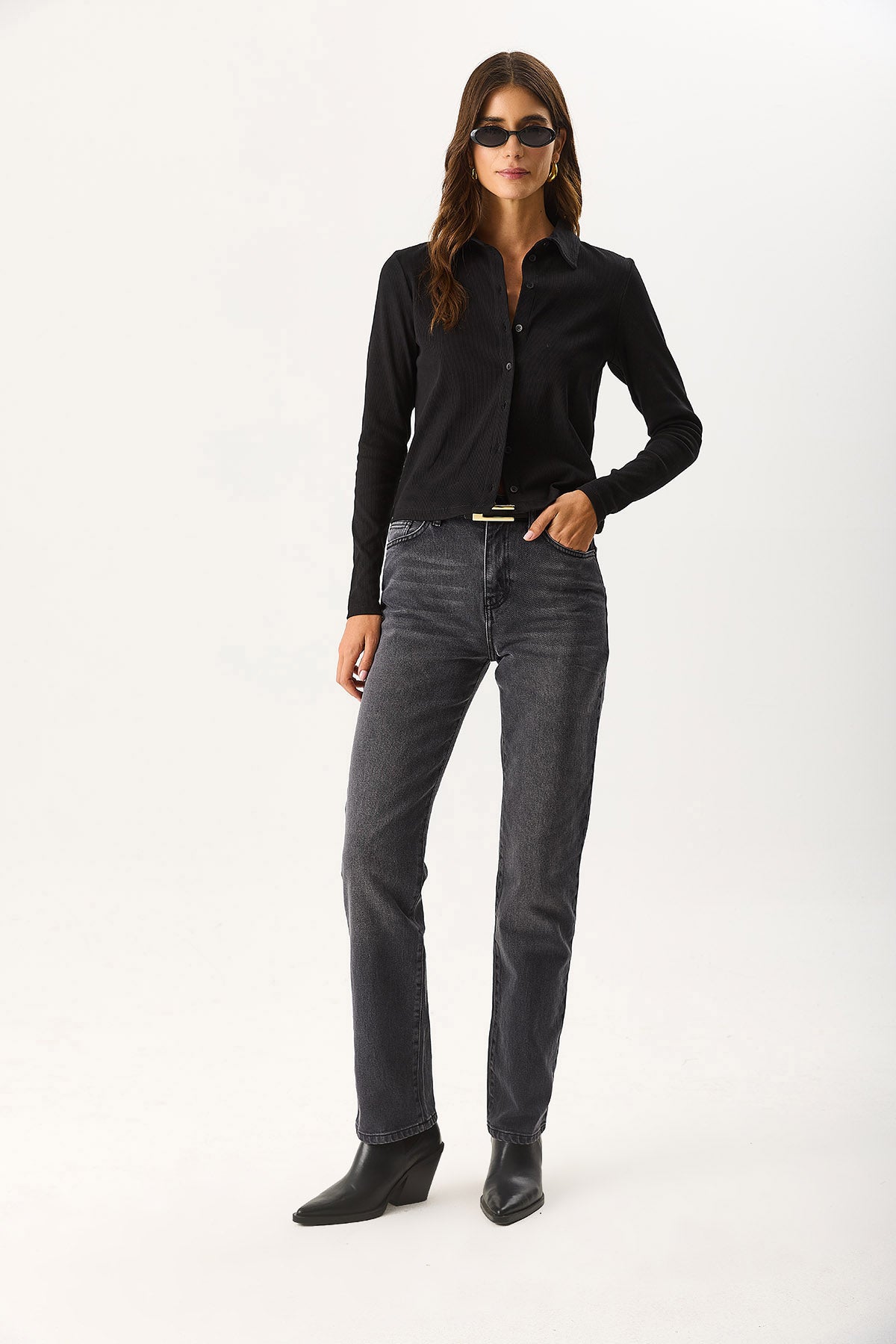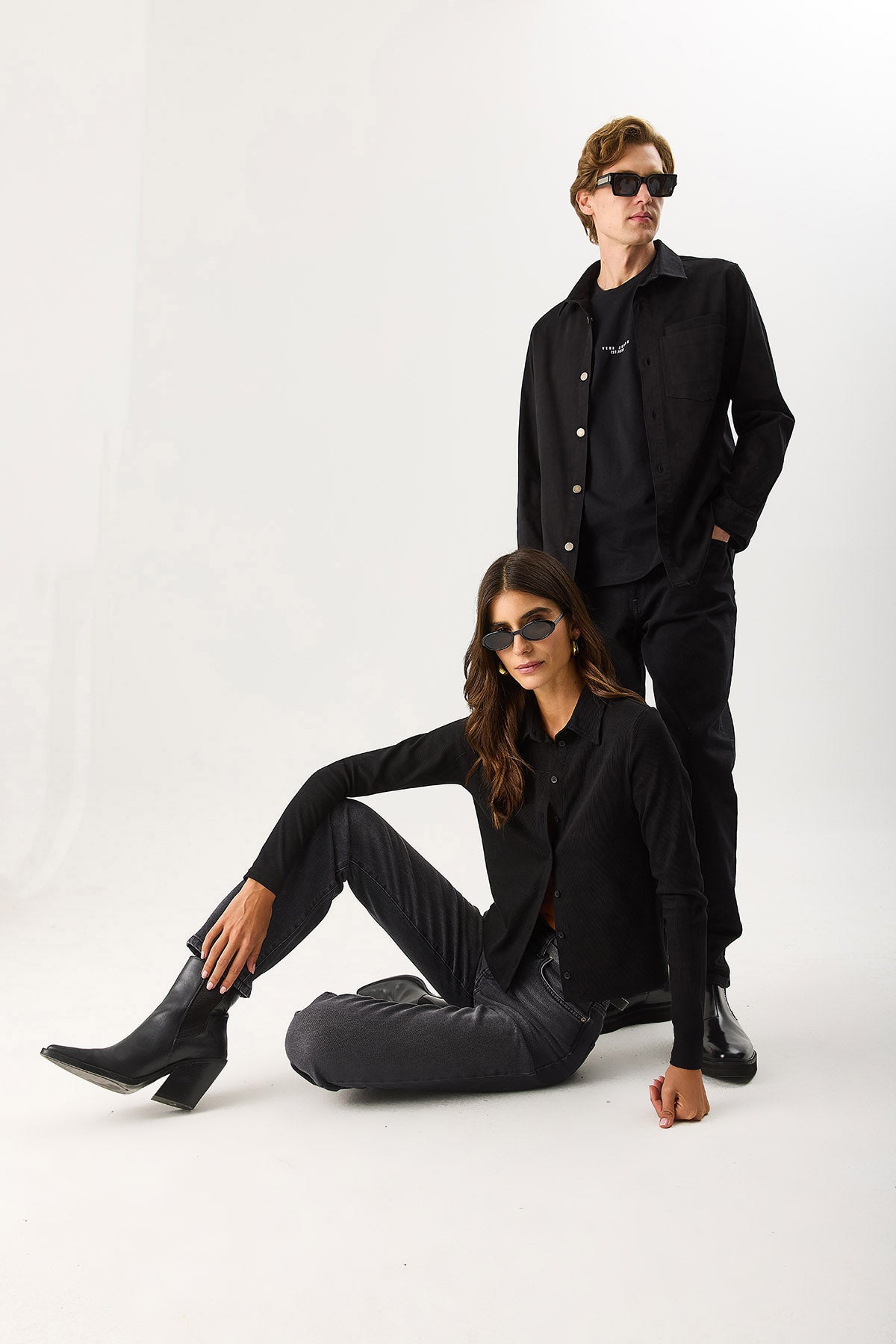 Kadın Gömlek Formlu Kaşkorse Tişört - Siyah