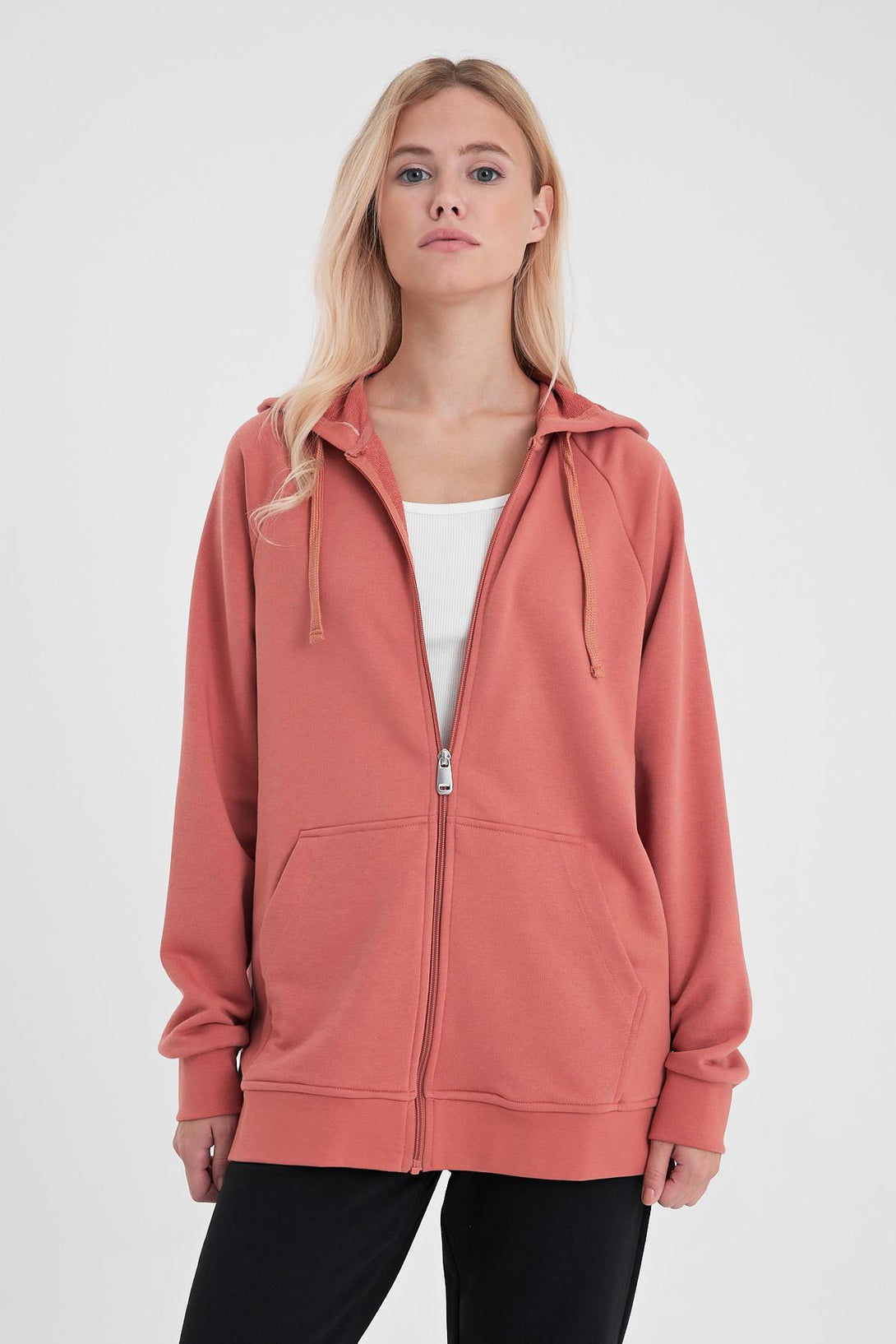 Kadın Grace Gül Kurusu Kapüşonlu Fermuarlı Regular Fit Basic Sweatshirt