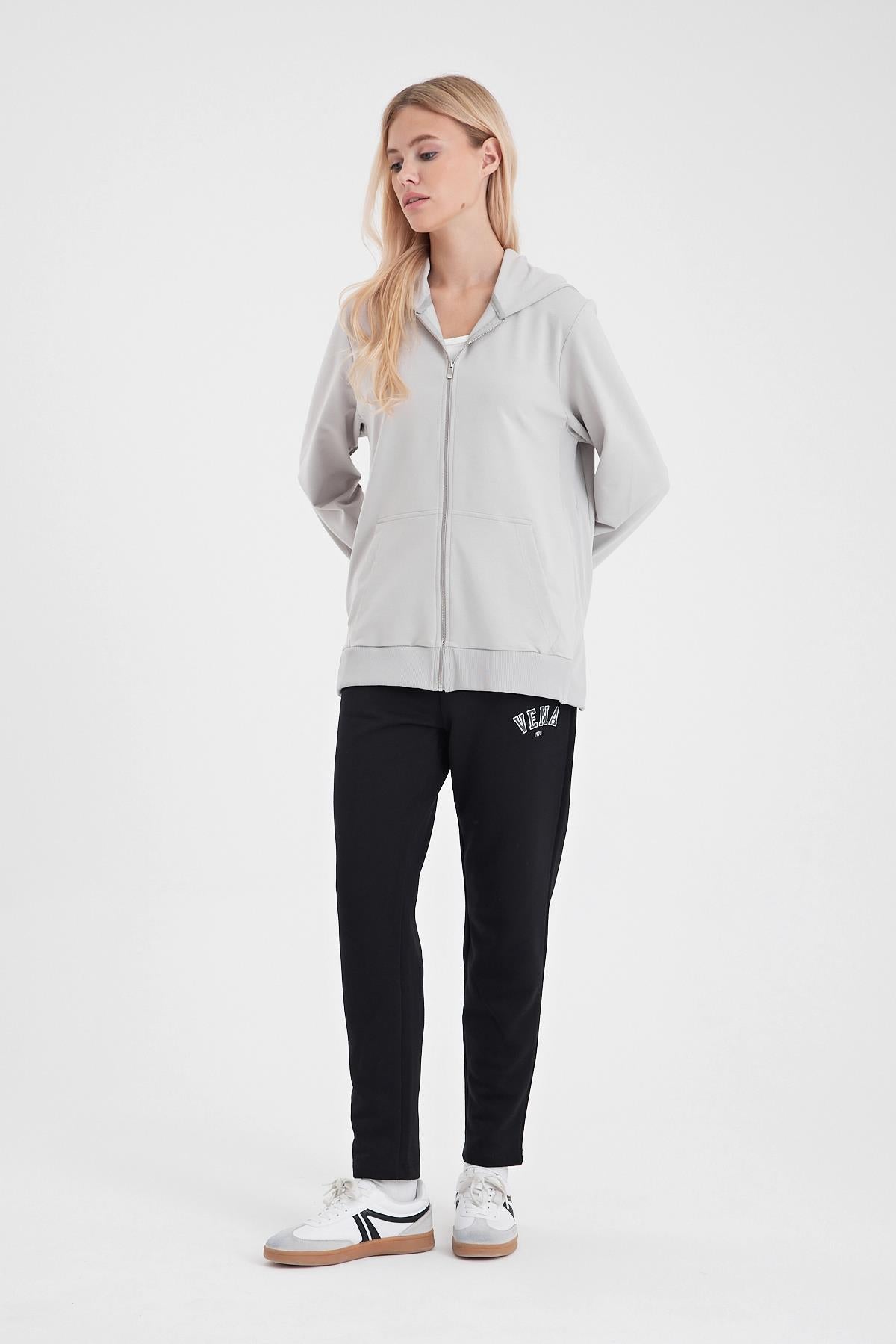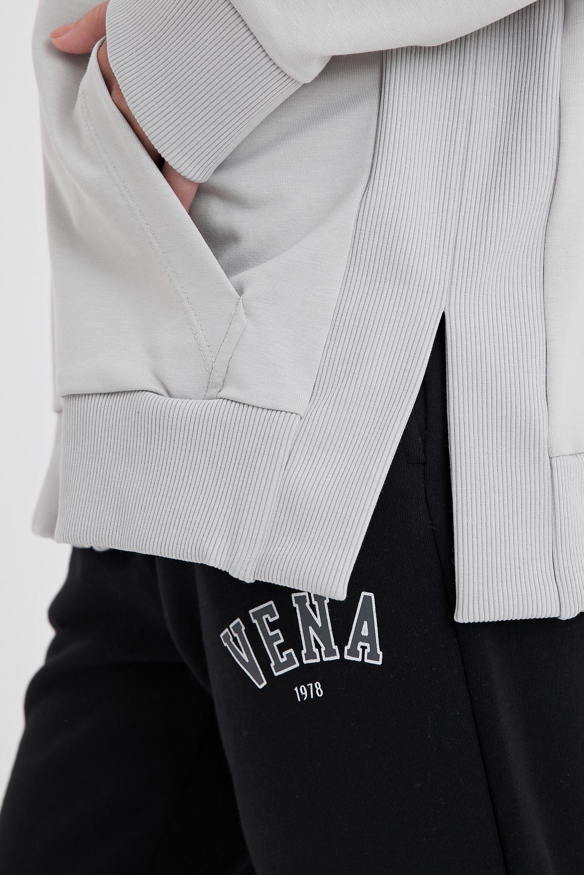 Kadın Gwen Yanı Yırtmaçlı Fermuarlı Sweatshirt - Gri