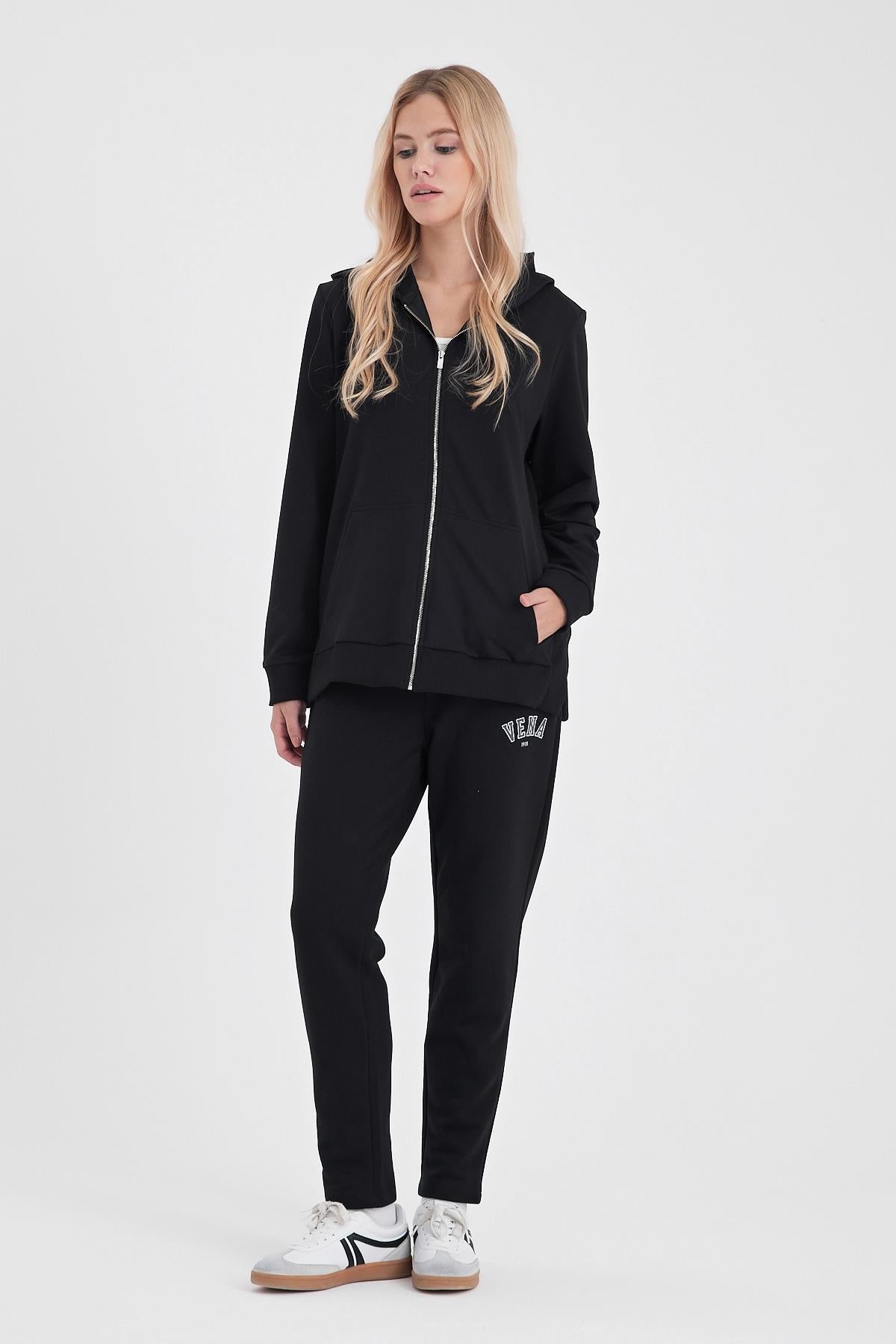 Kadın Gwen Yanı Yırtmaçlı Fermuarlı Sweatshirt - Siyah