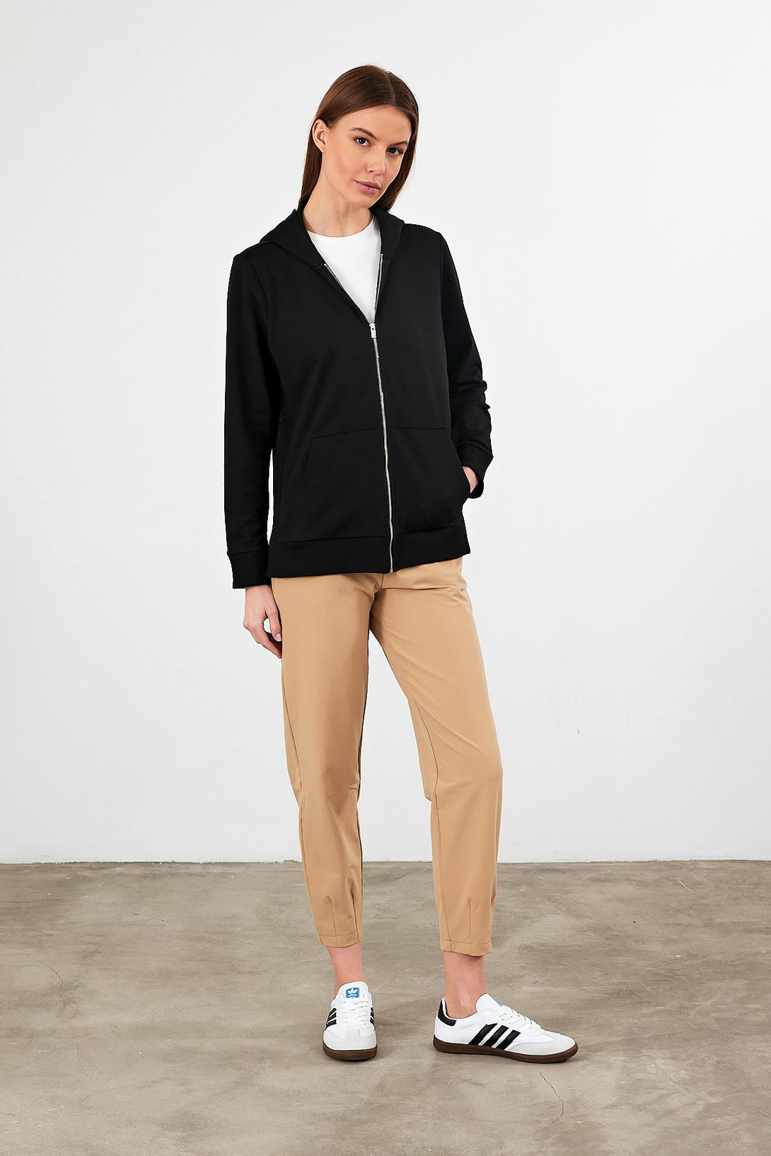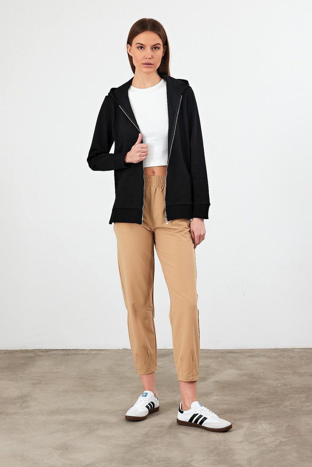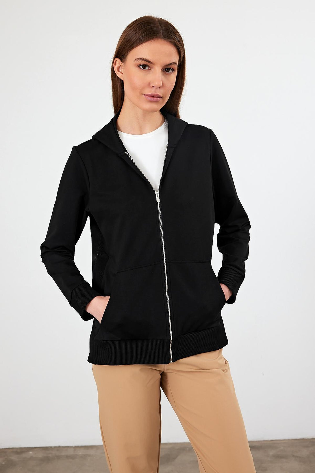 Kadın Gwen Siyah Yanı Yırtmaçlı Fermuarlı Sweatshirt