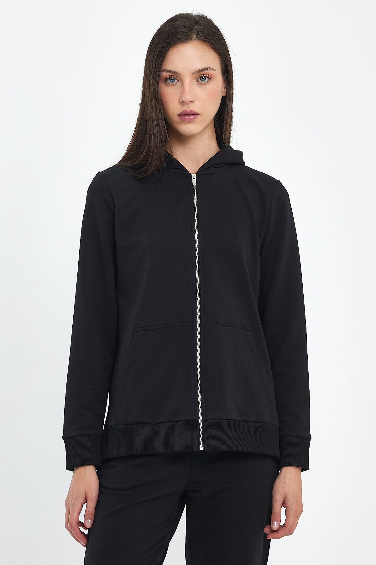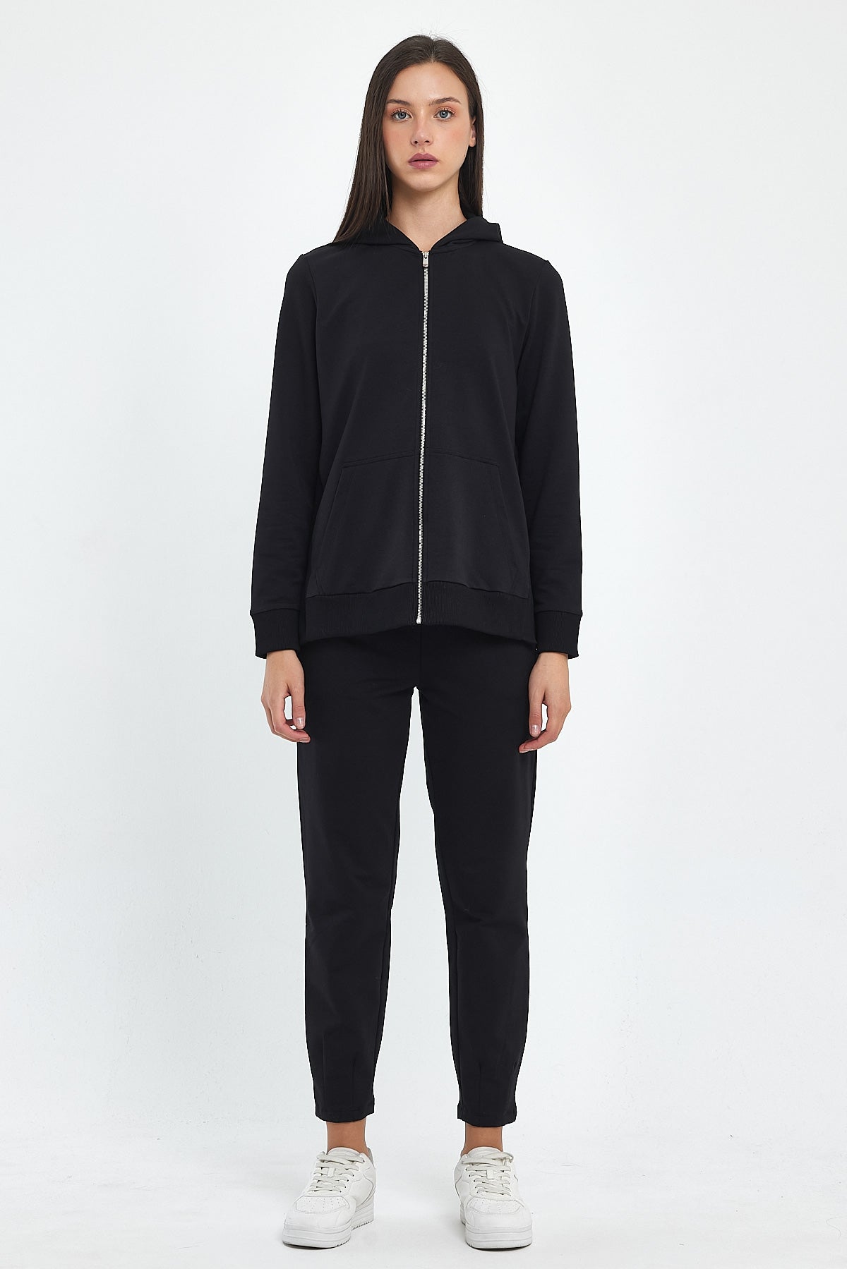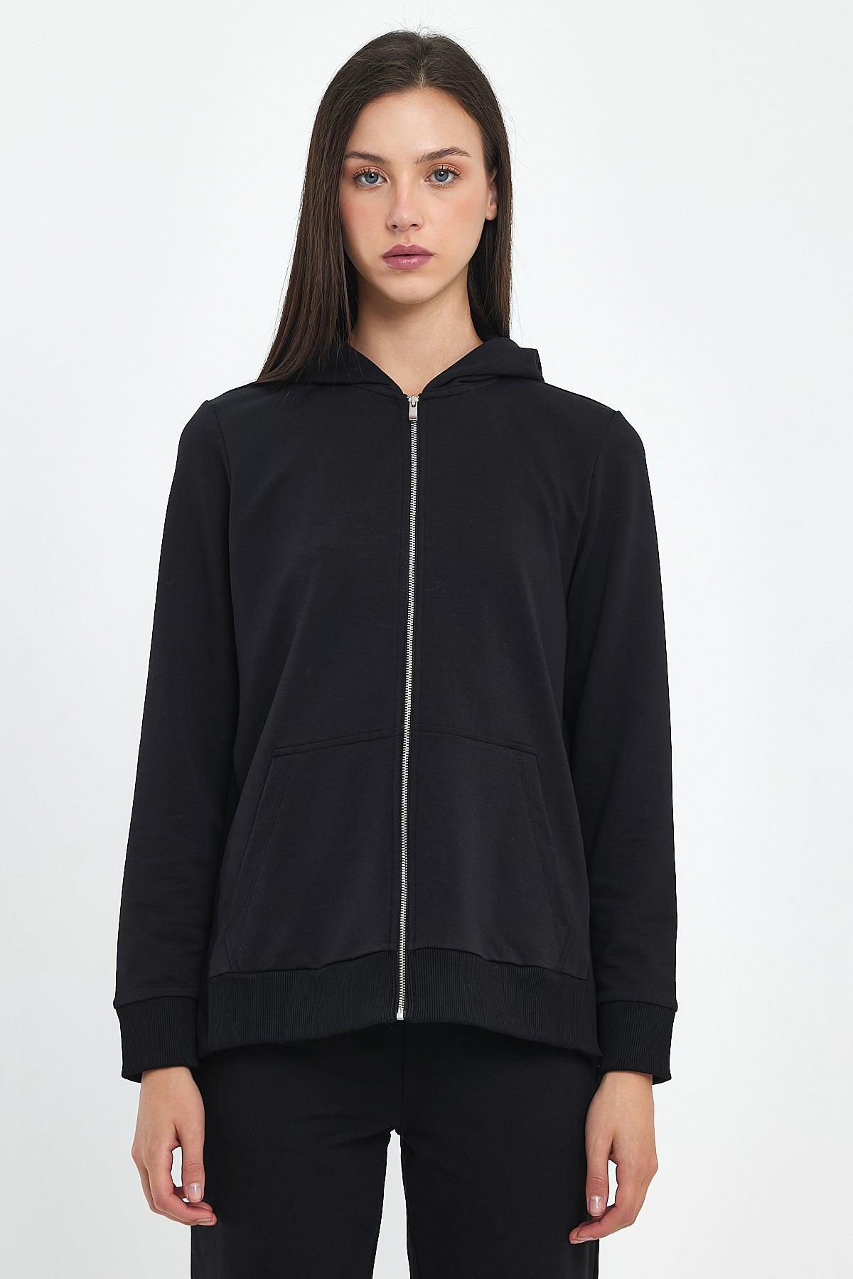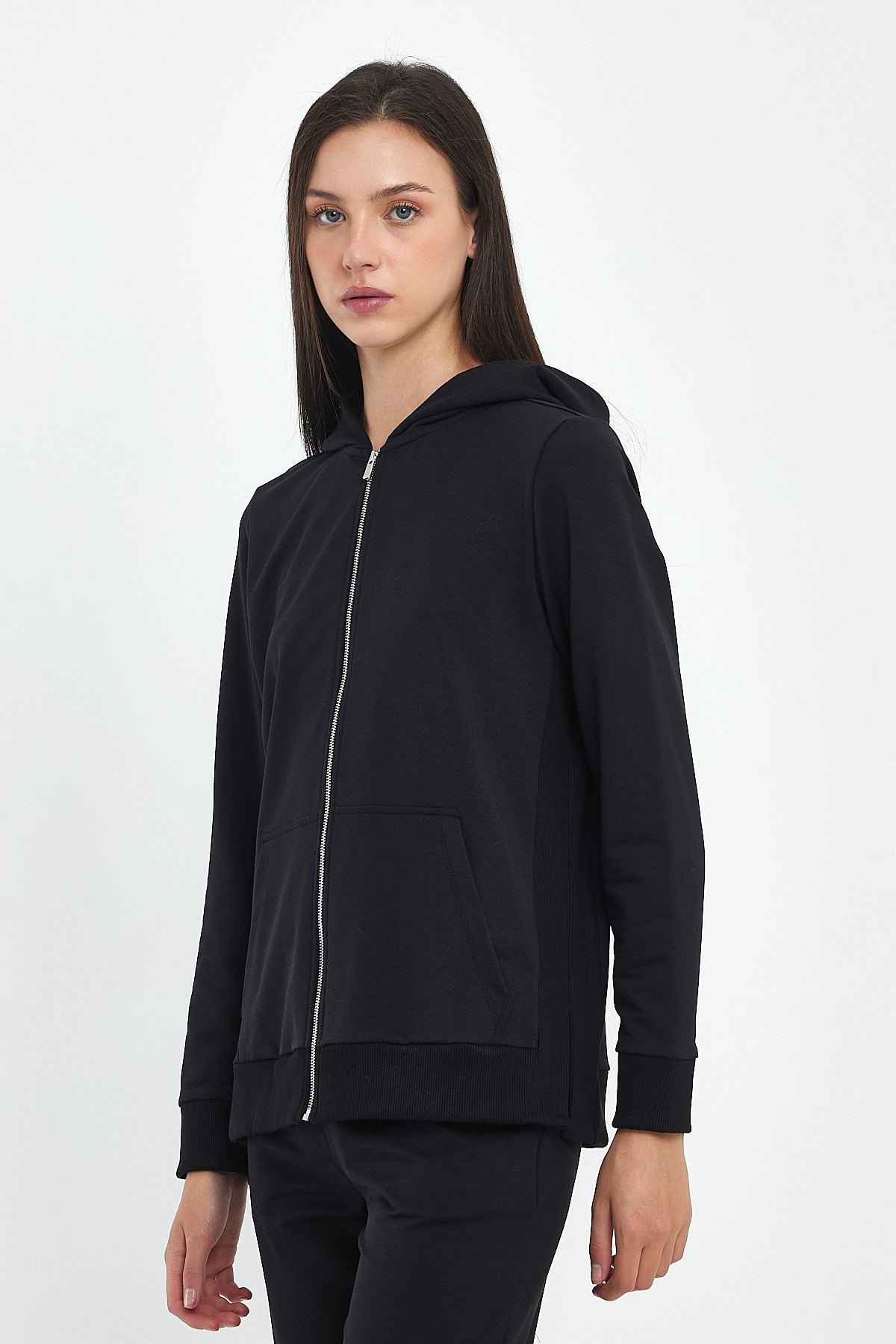 Kadın Gwen Yanı Yırtmaçlı Fermuarlı Sweatshirt - Siyah