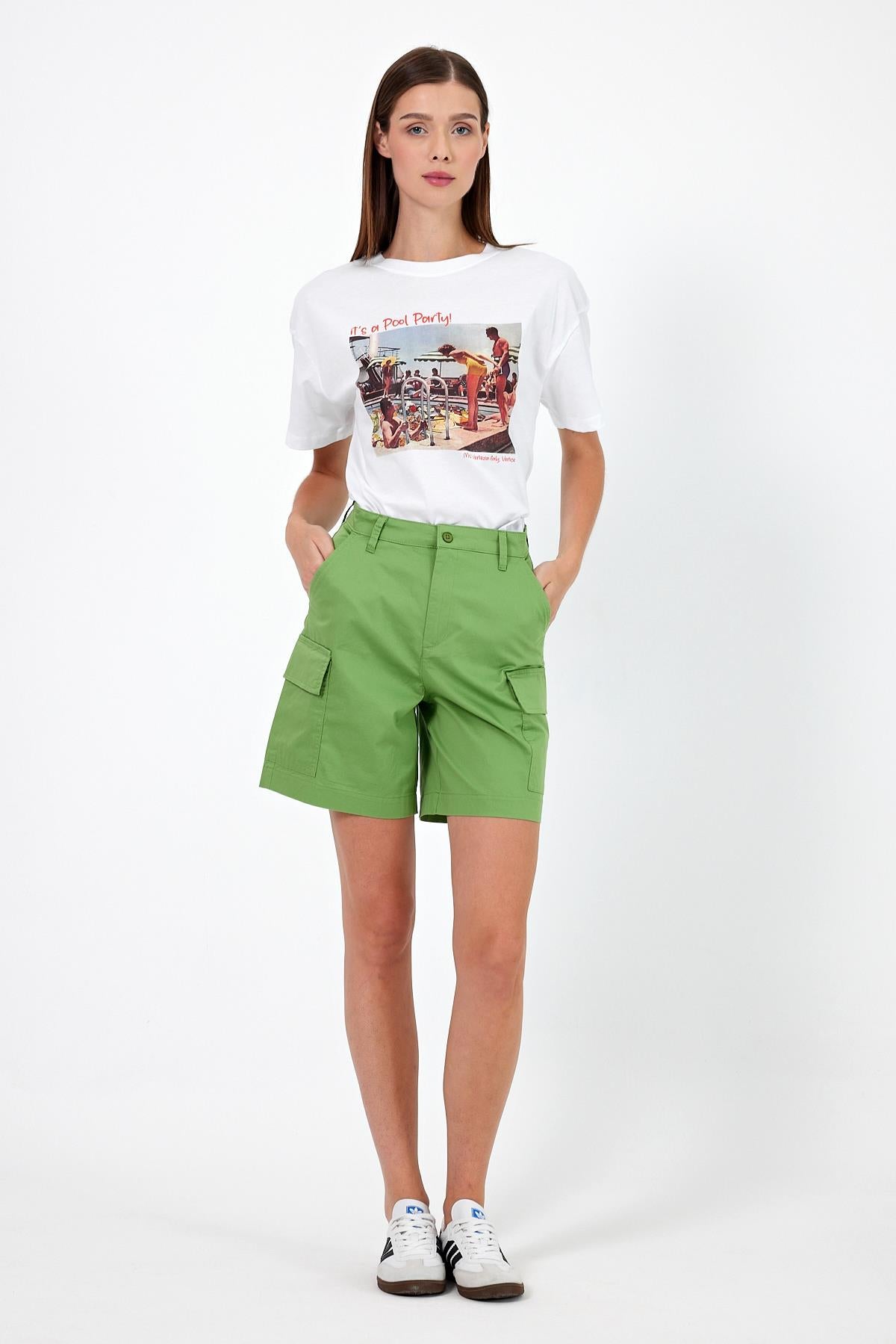 Kadın Helen Kargo Cepli Gabardin Bermuda Şort - Çağla