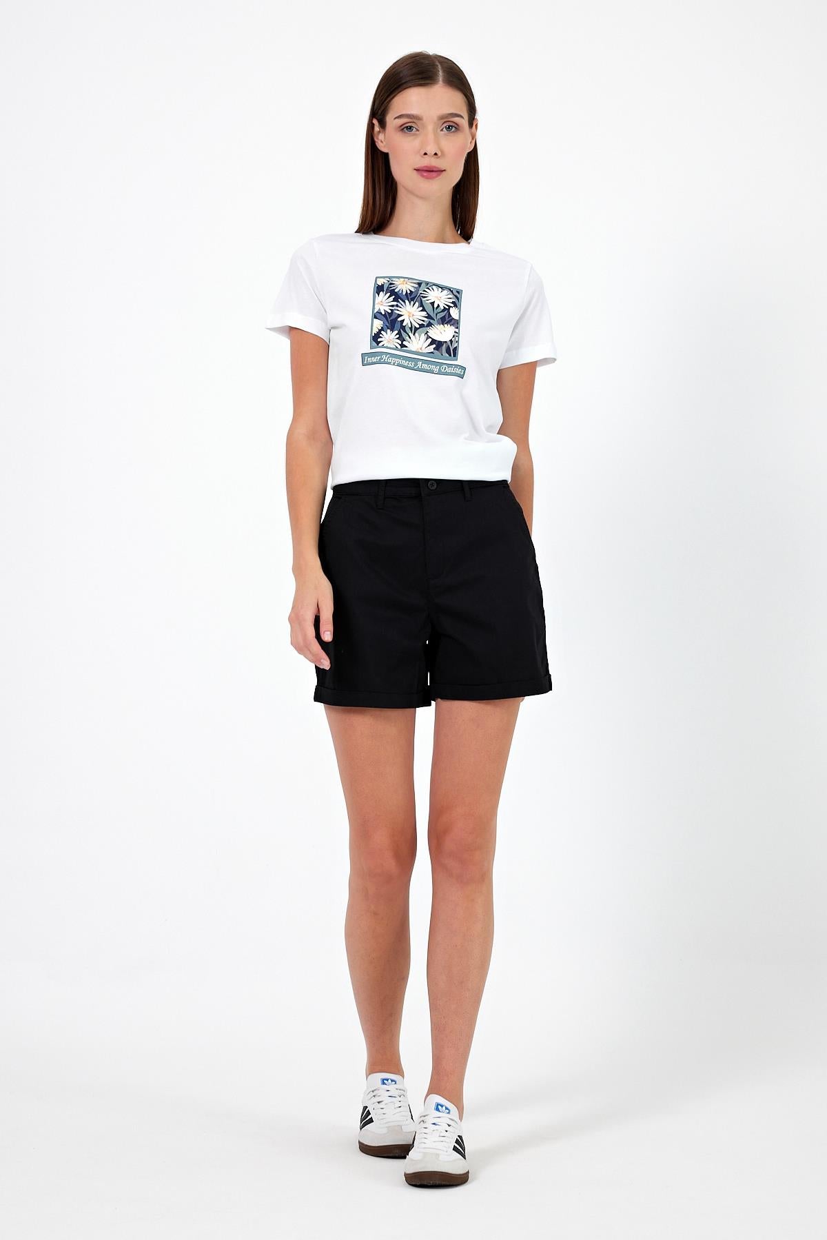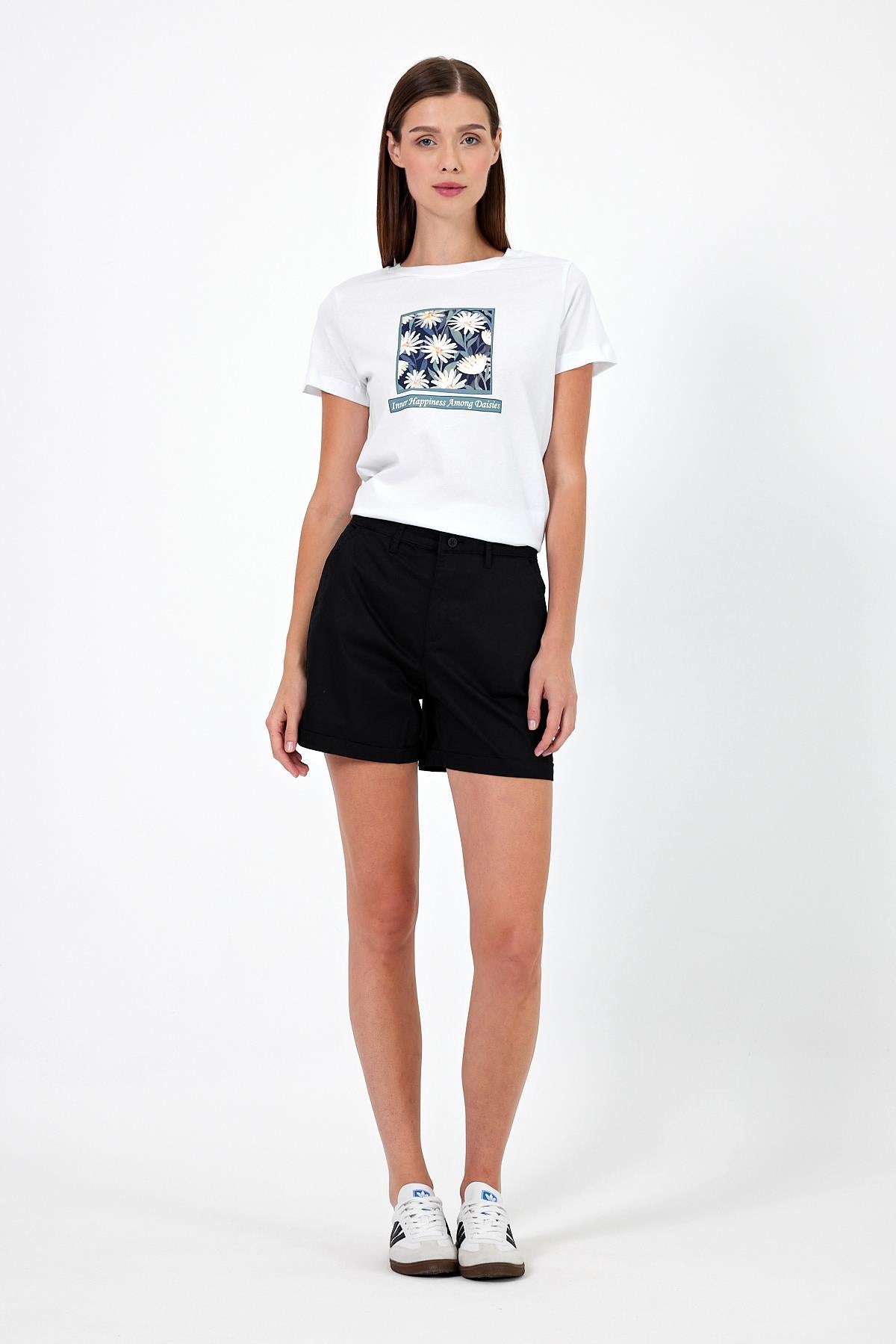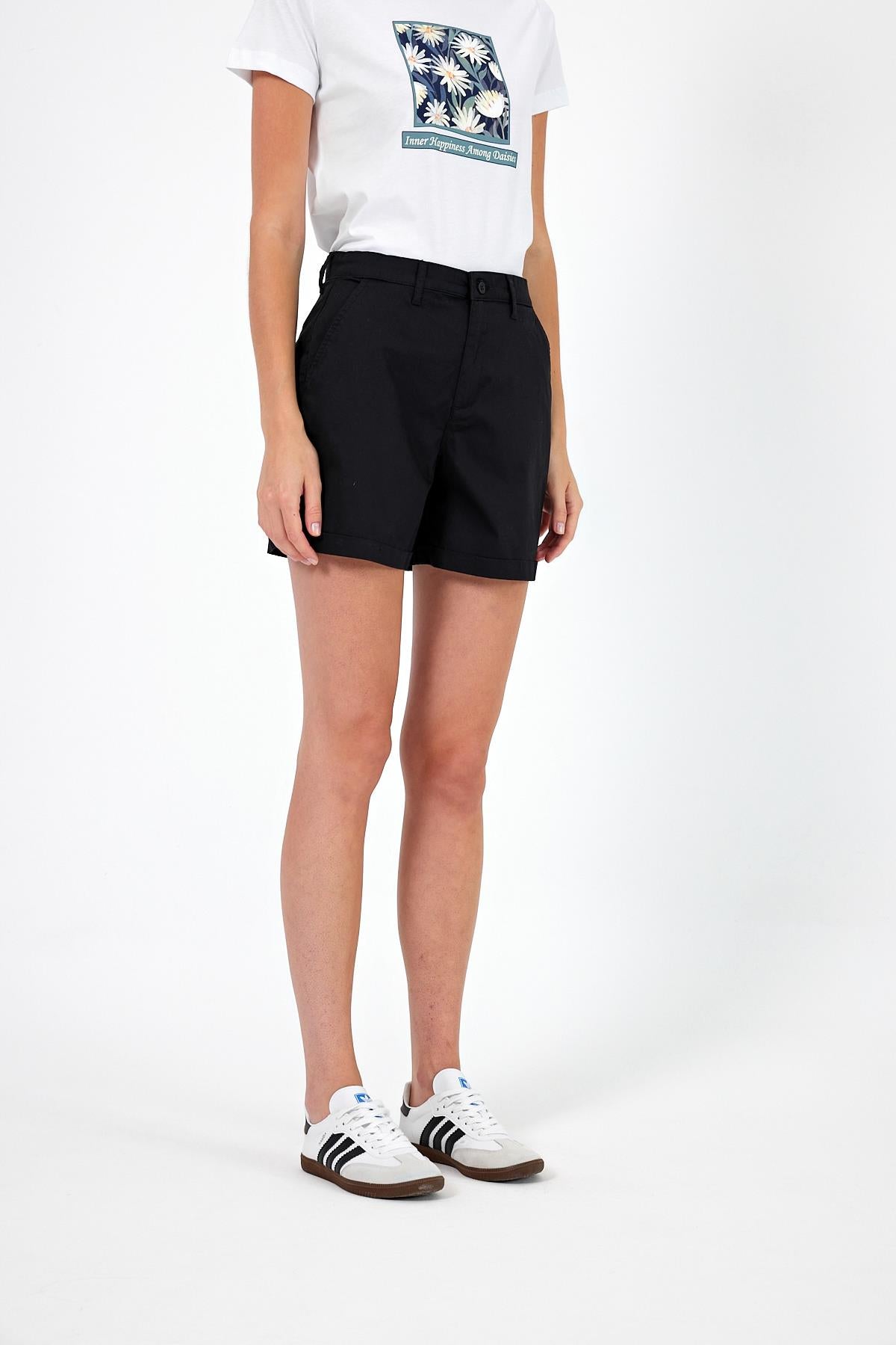 Kadın Helen Yüksek Bel Gabardin Bermuda Şort - Siyah