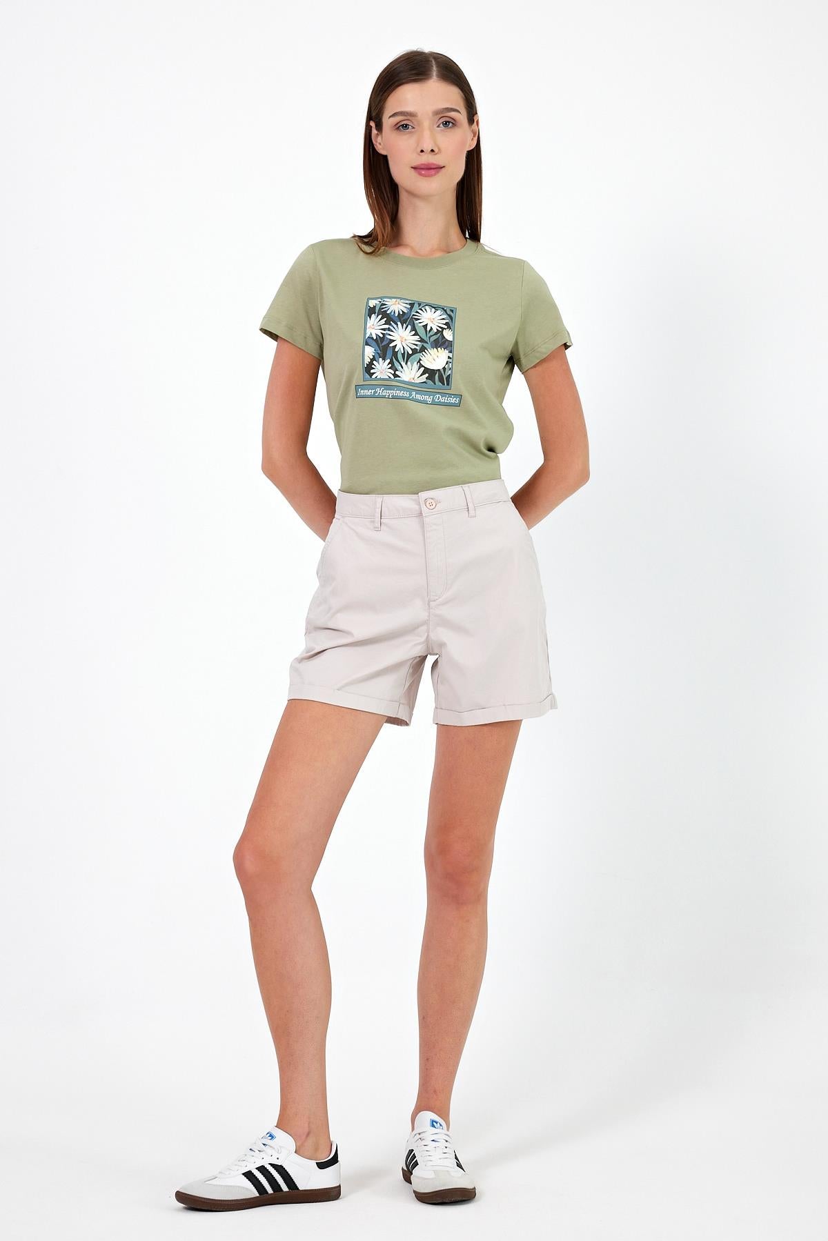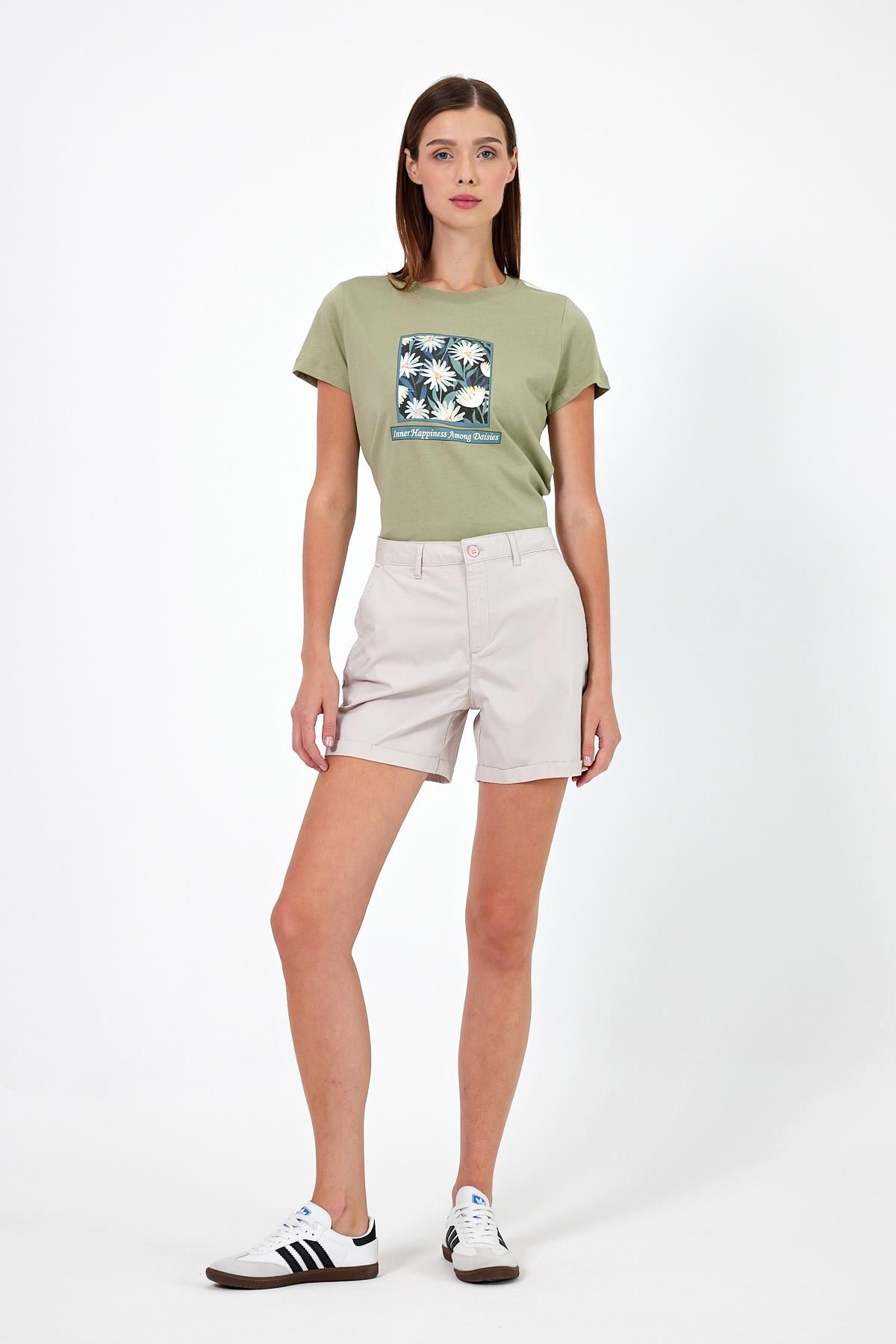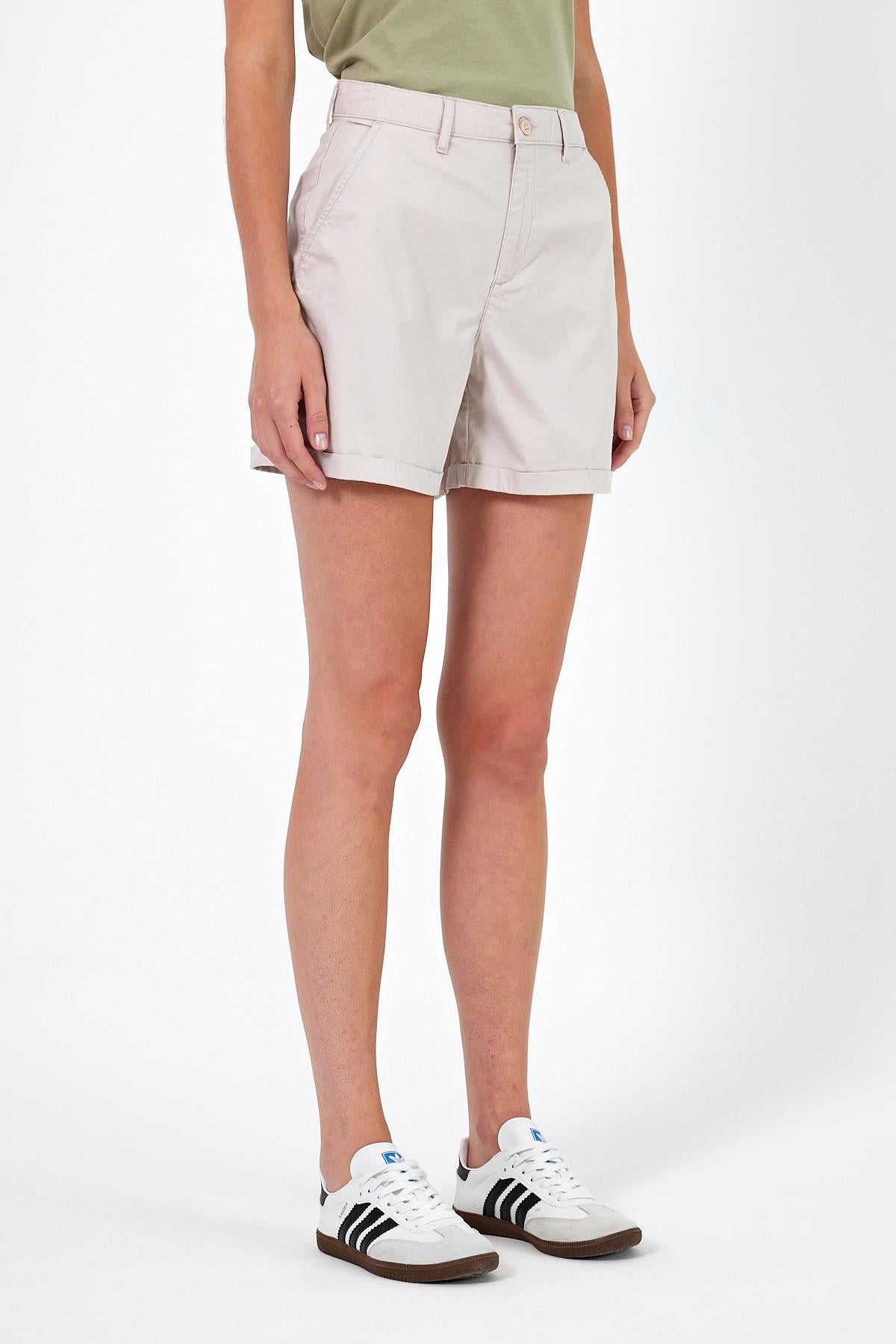 Kadın Helen Yüksek Bel Gabardin Bermuda Şort - Taş