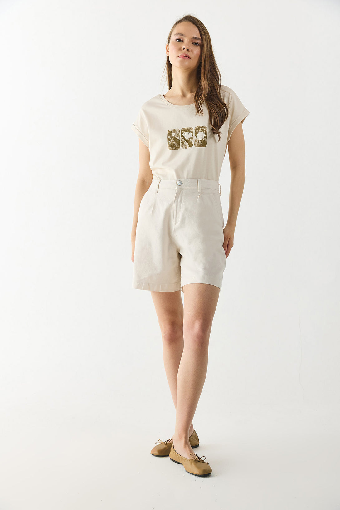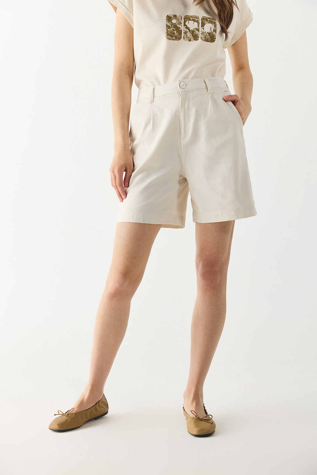 Helen Yüksek Bel Keten Bermuda Şort - FİLDİŞİ 4Y254433-357