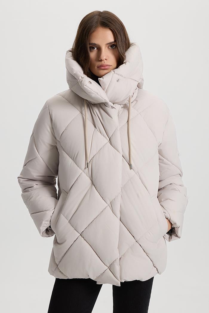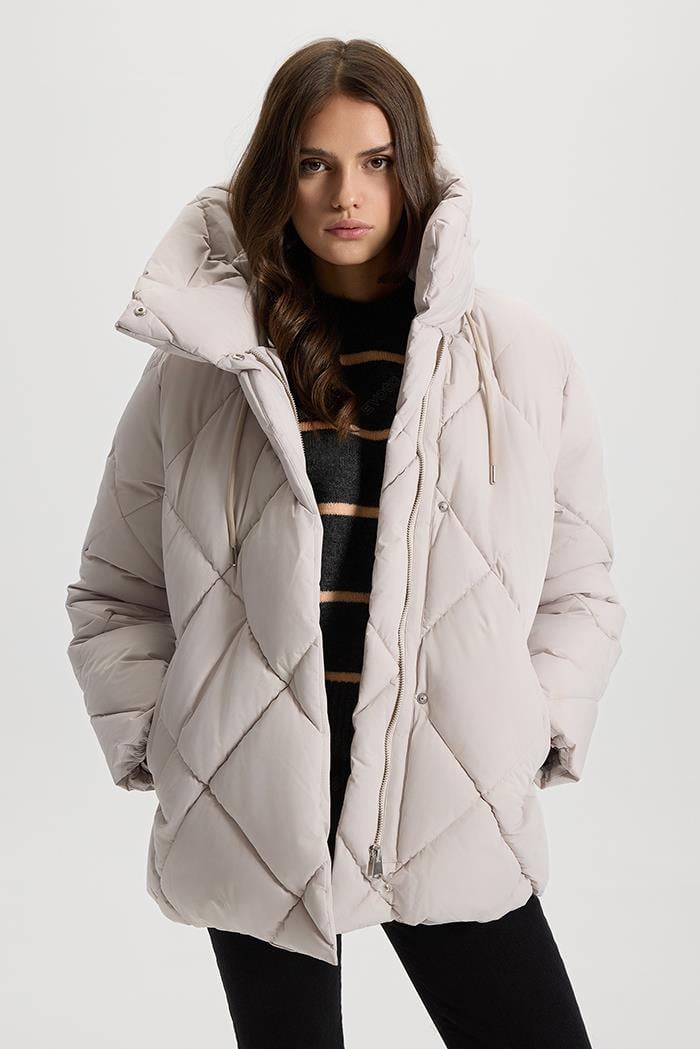 Kadın Holly Bej Baklava Desenli Şişme Mont