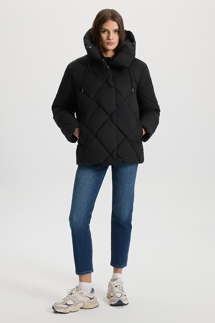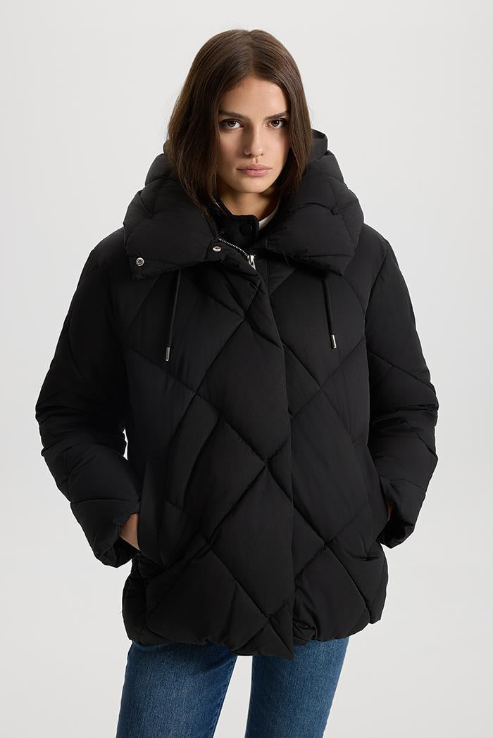 Kadın Holly Siyah Baklava Desenli Şişme Mont
