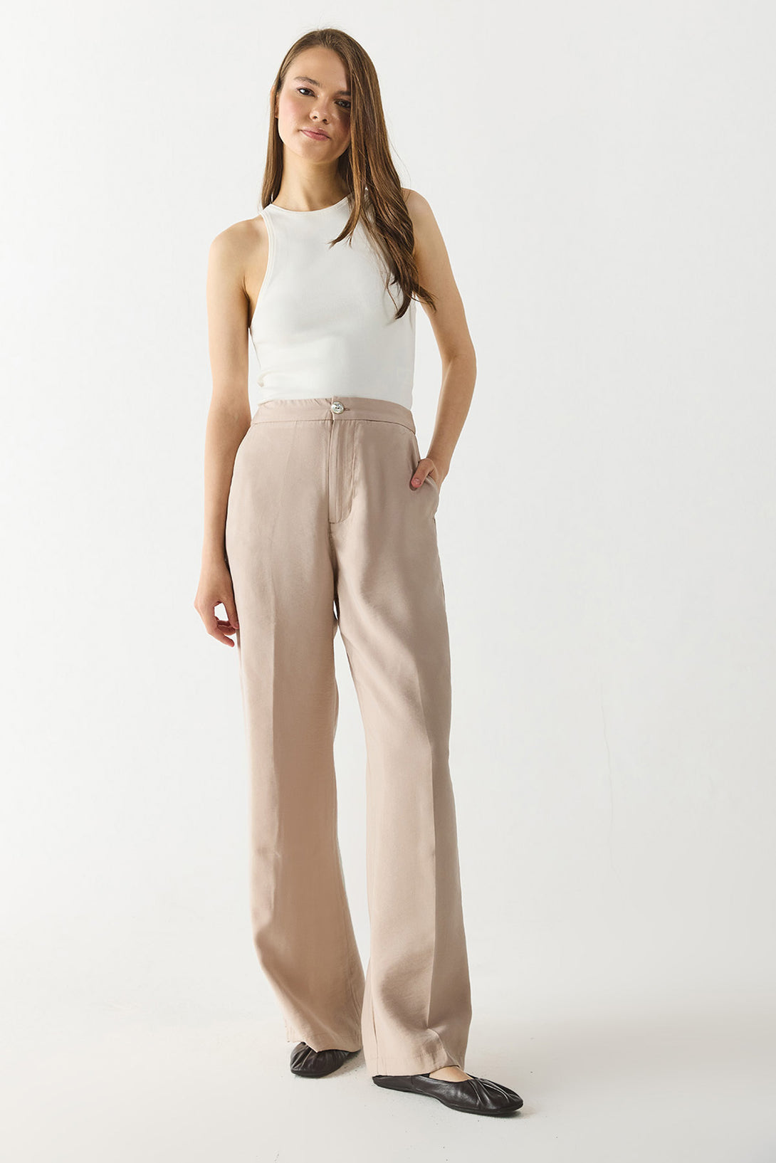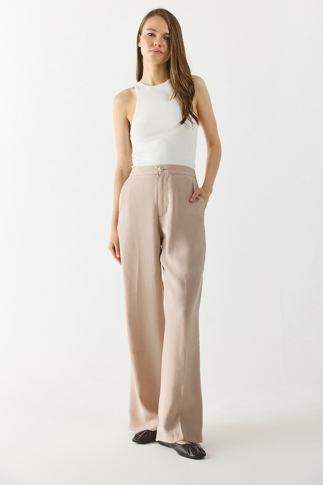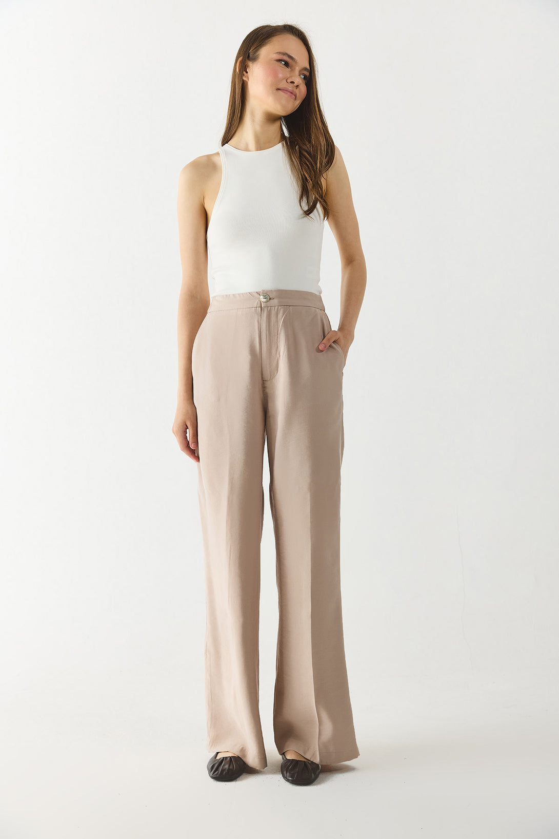 Kadın Holly Geniş Paça Pantolon (CUPRO) - Taş