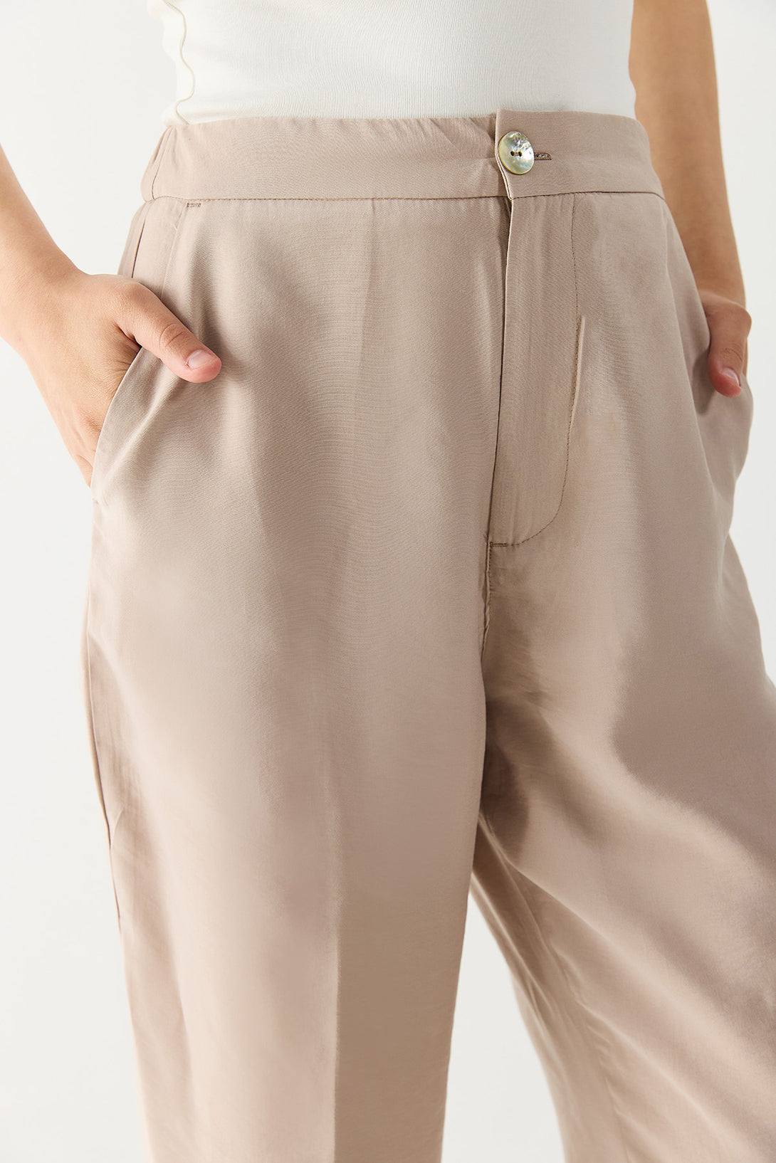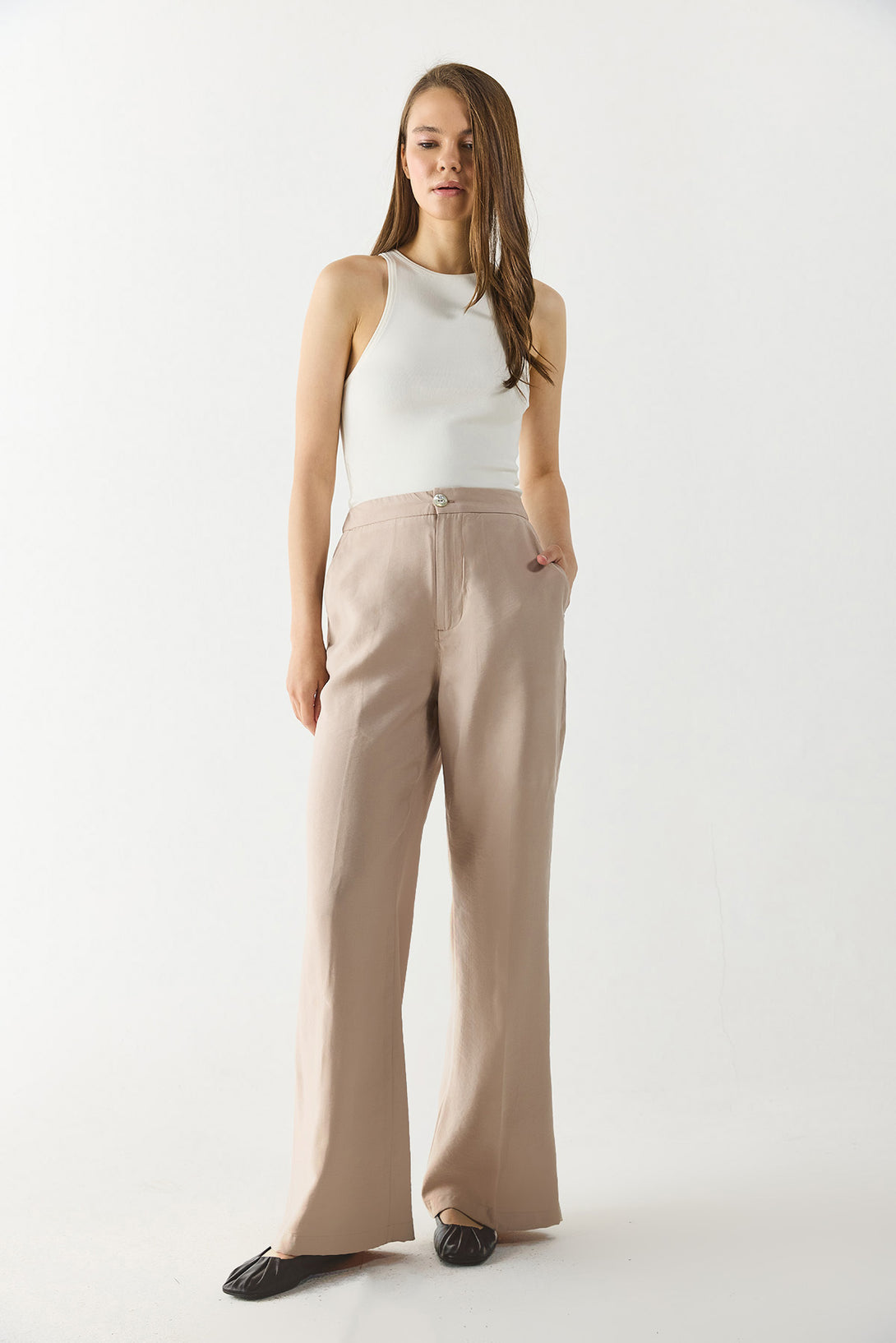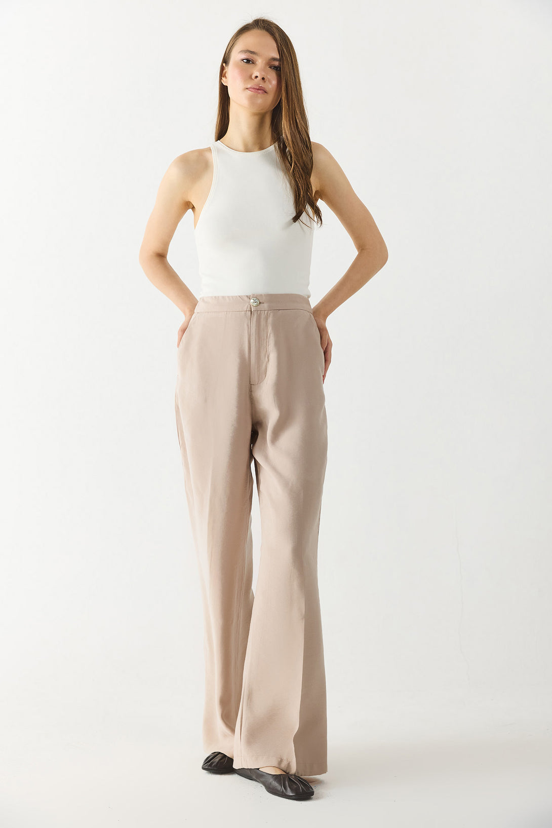 Kadın Holly Geniş Paça Pantolon (CUPRO) - Taş