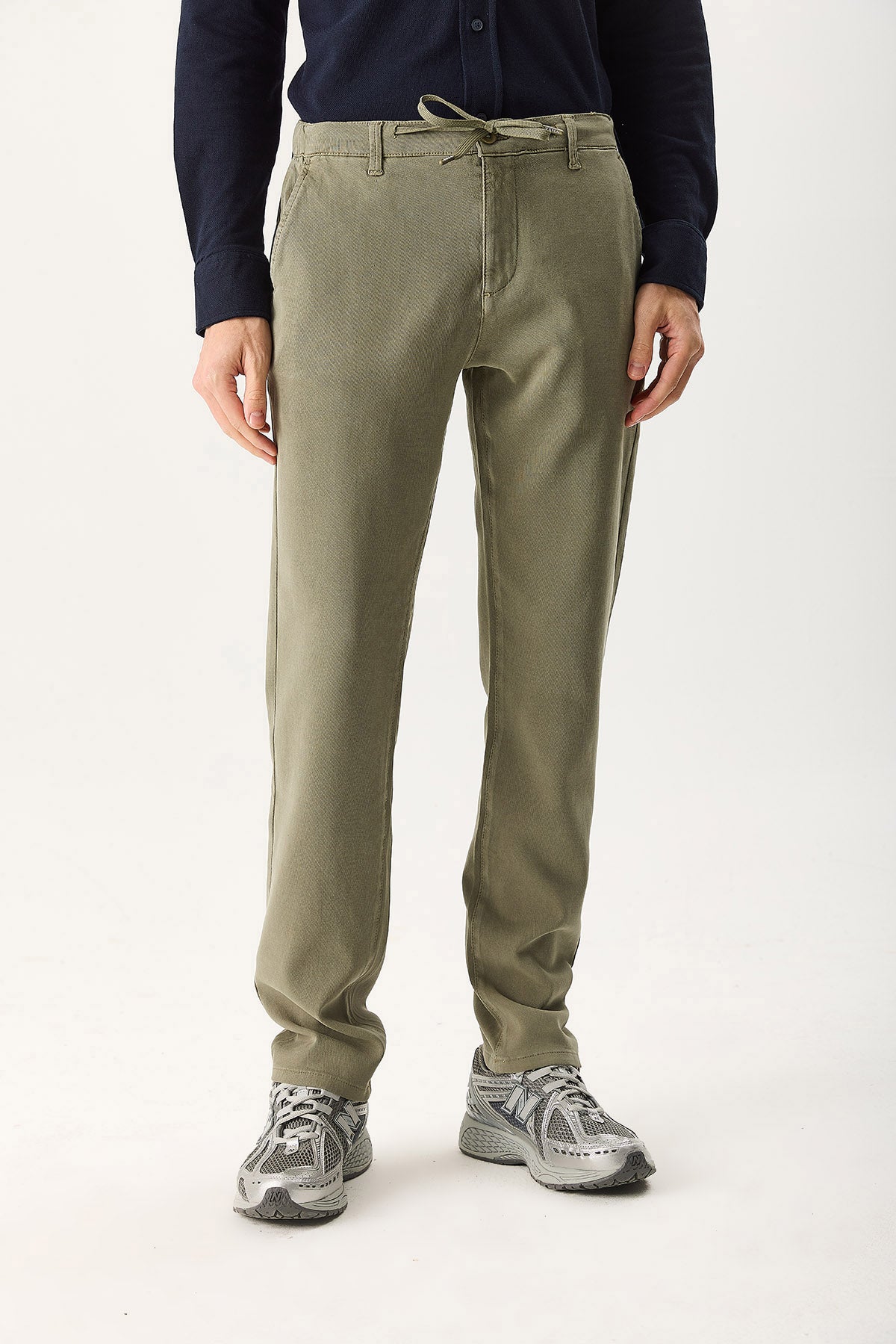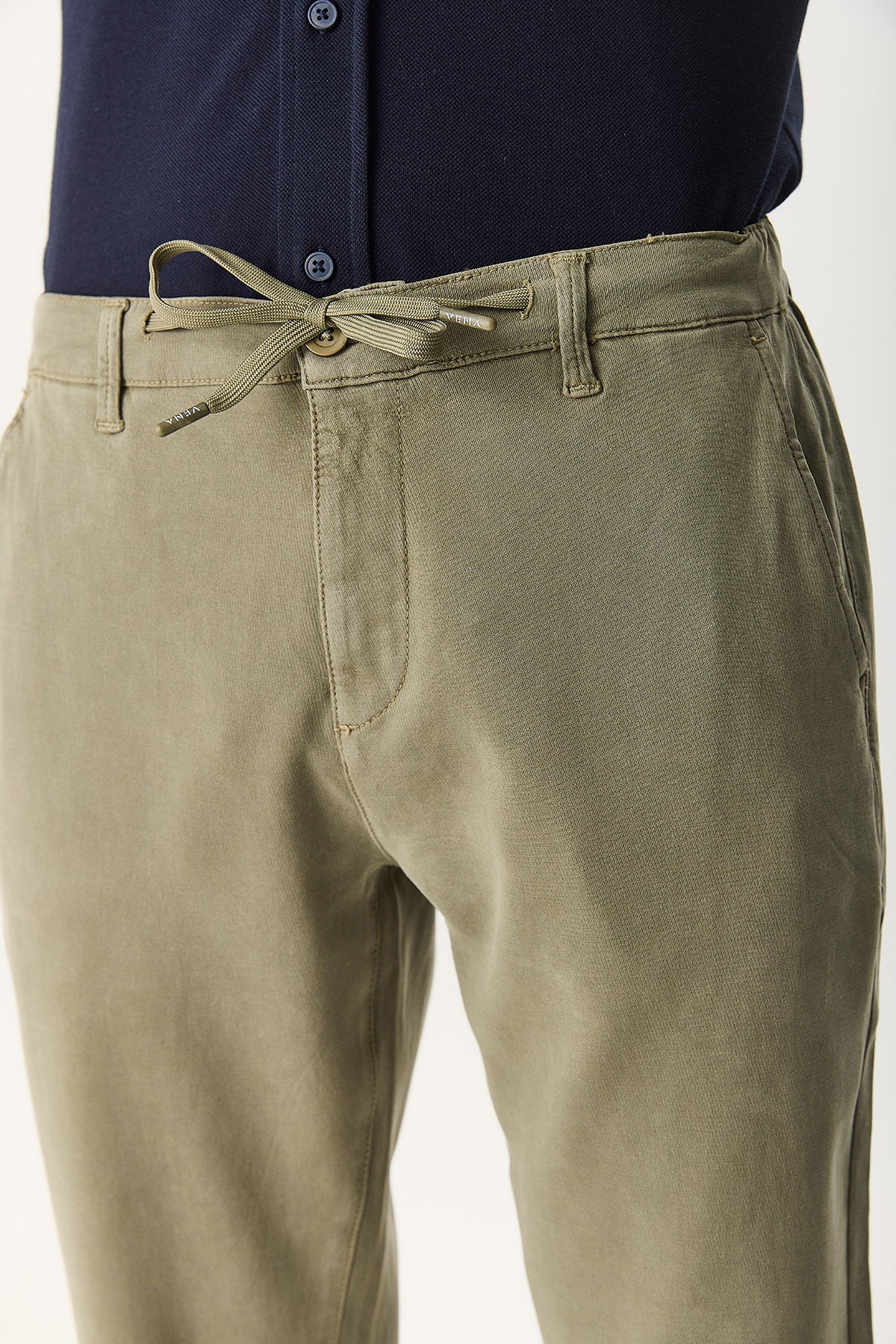 Erkek Jake Beli Lastikli Parça Boya Chino Pantolon (TENCEL)™ - Haki