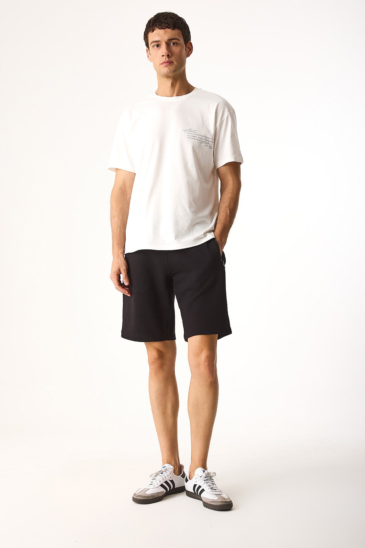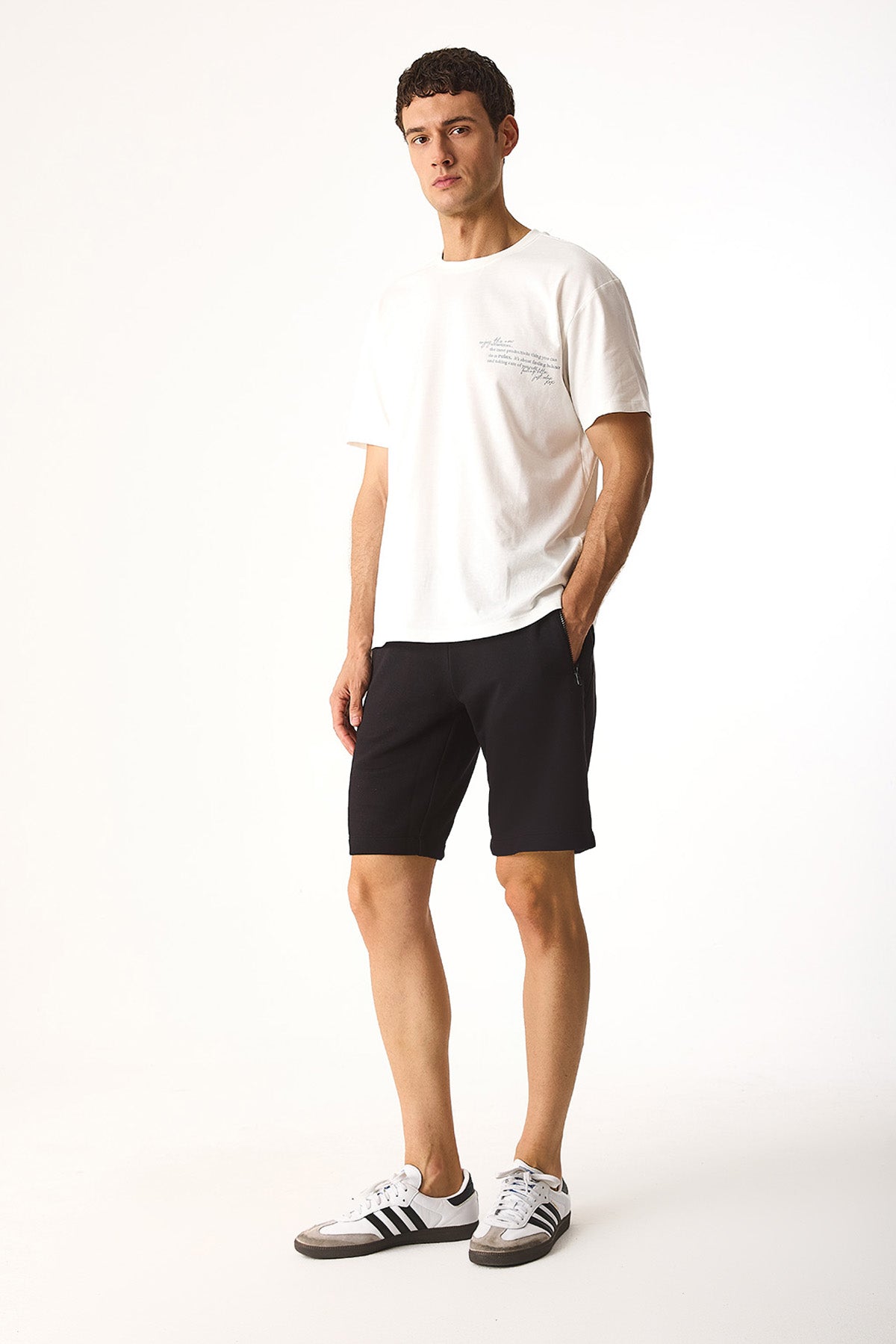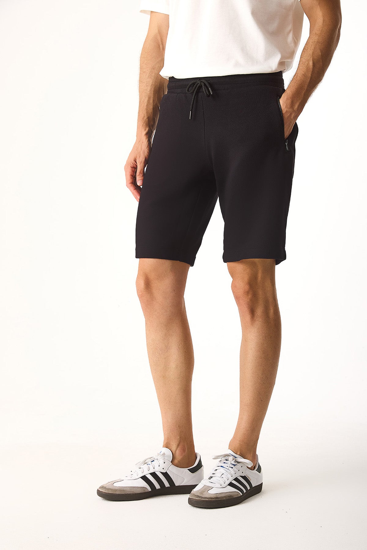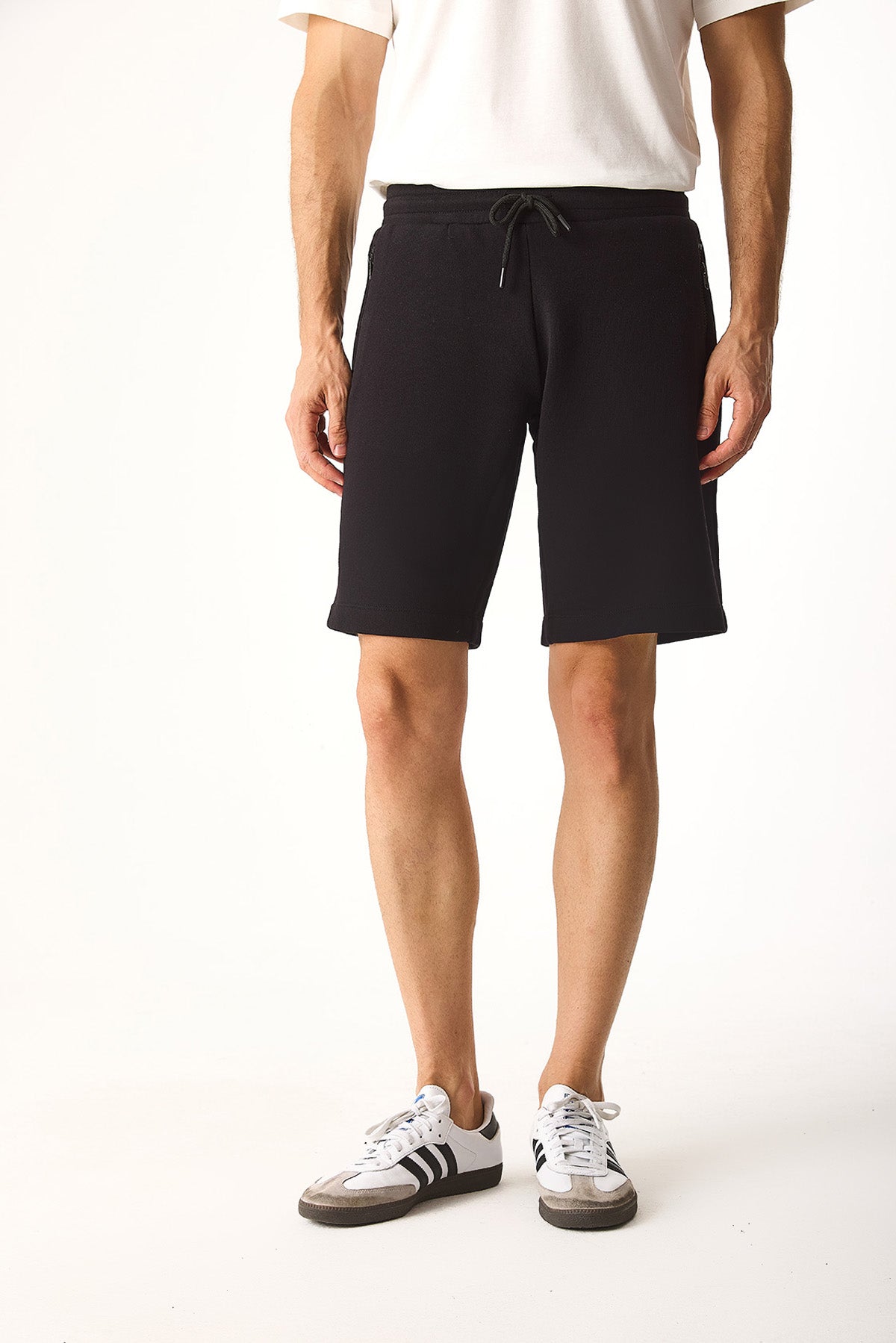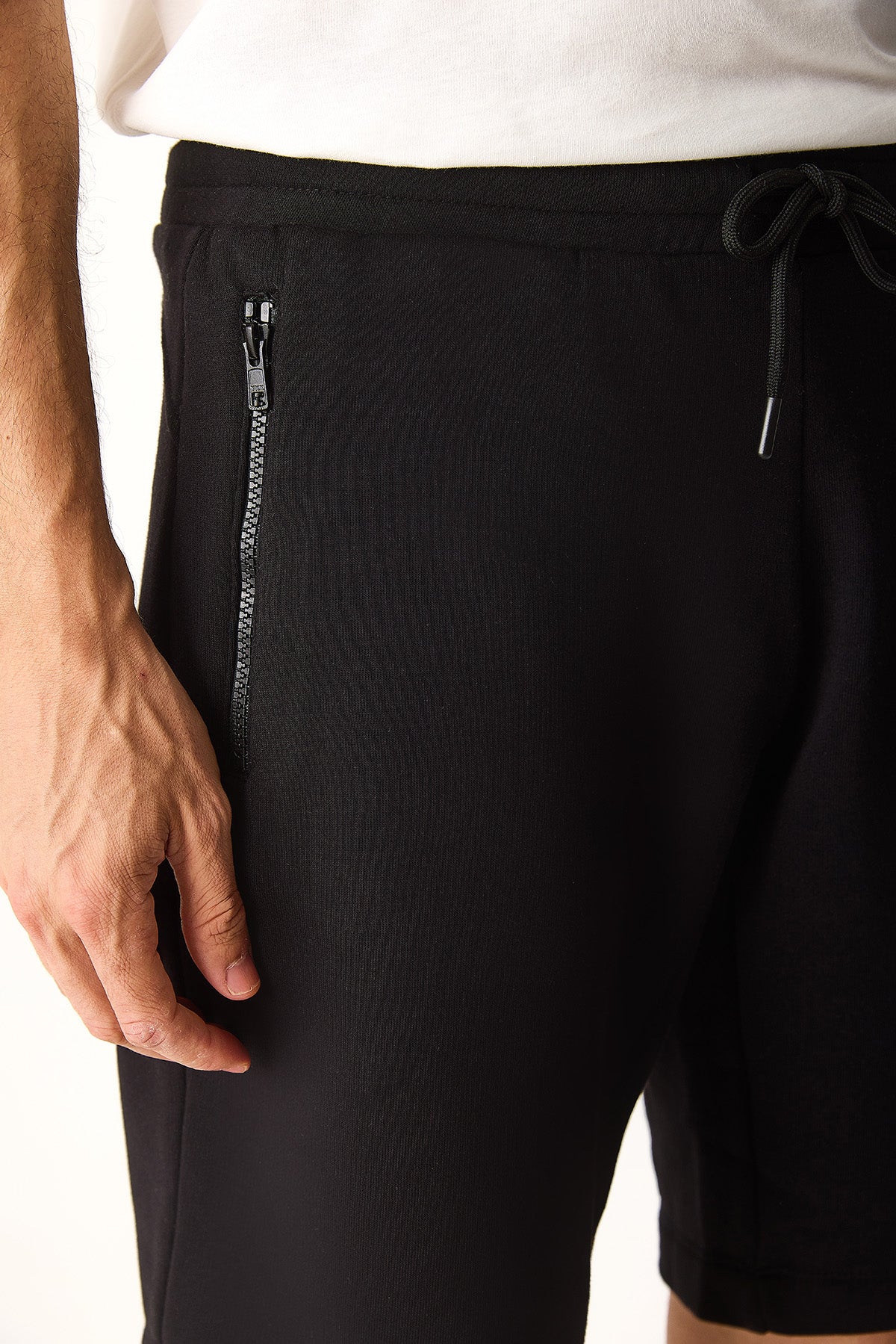 Erkek Jamie Cebi Fermuarlı Örme Şort - Siyah