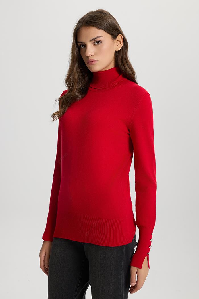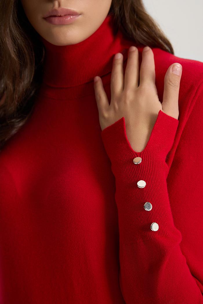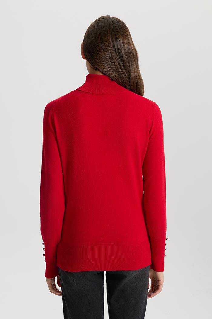 Kadın Janna Kırmızı Yarım Balıkçı Kolu Düğmeli Triko Kazak