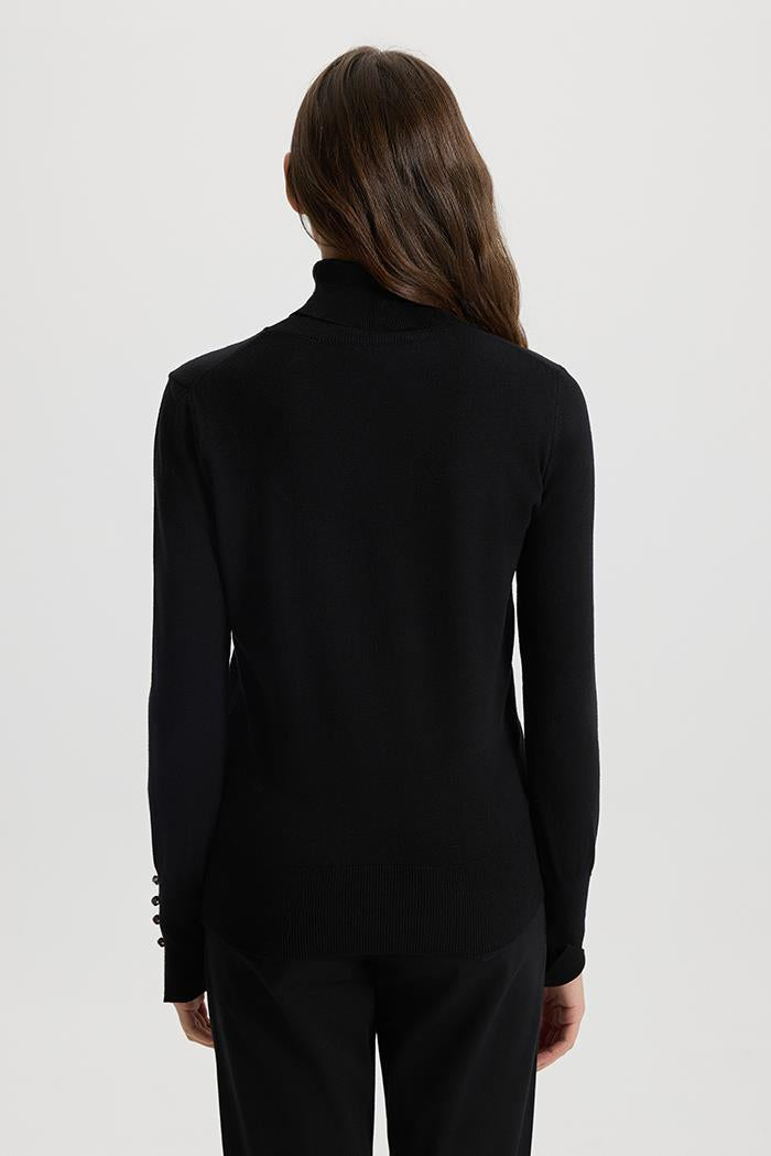 Kadın Janna Siyah Yarım Balıkçı Kolu Düğmeli Triko Kazak