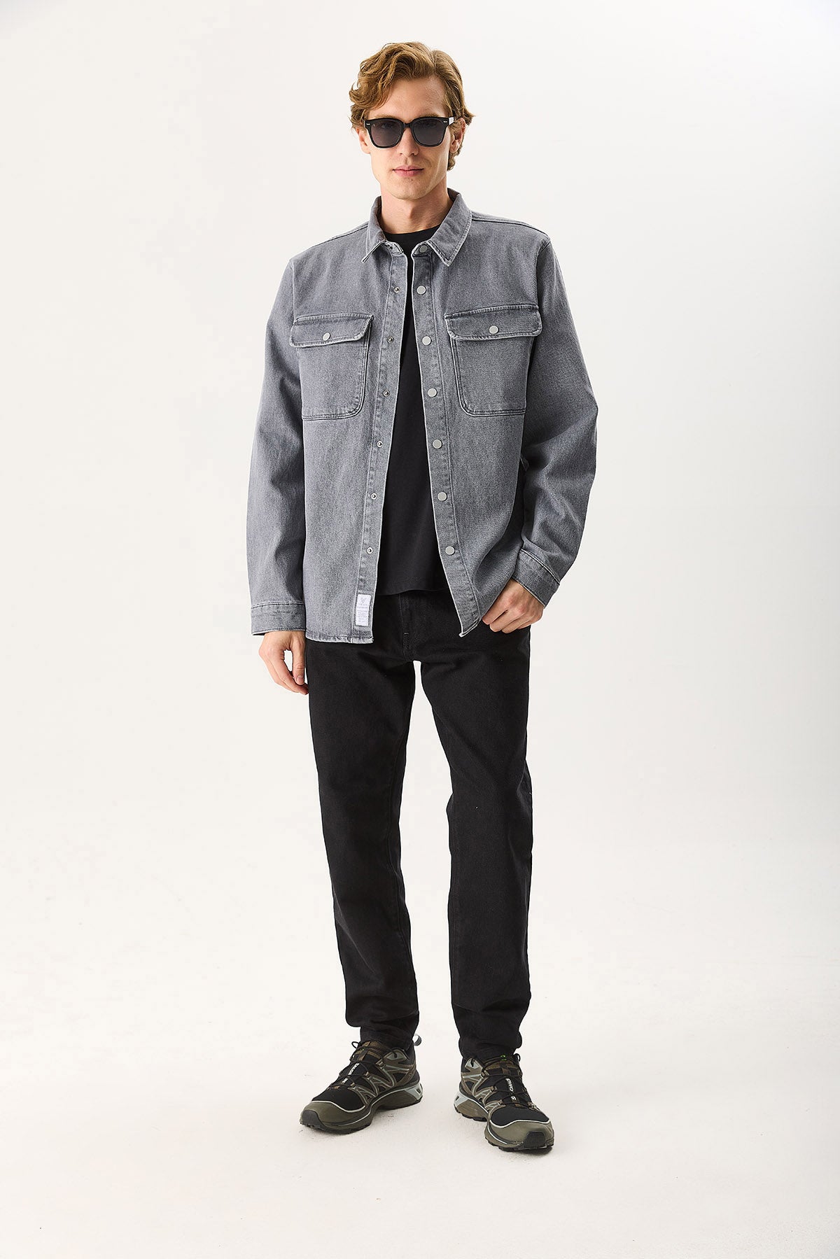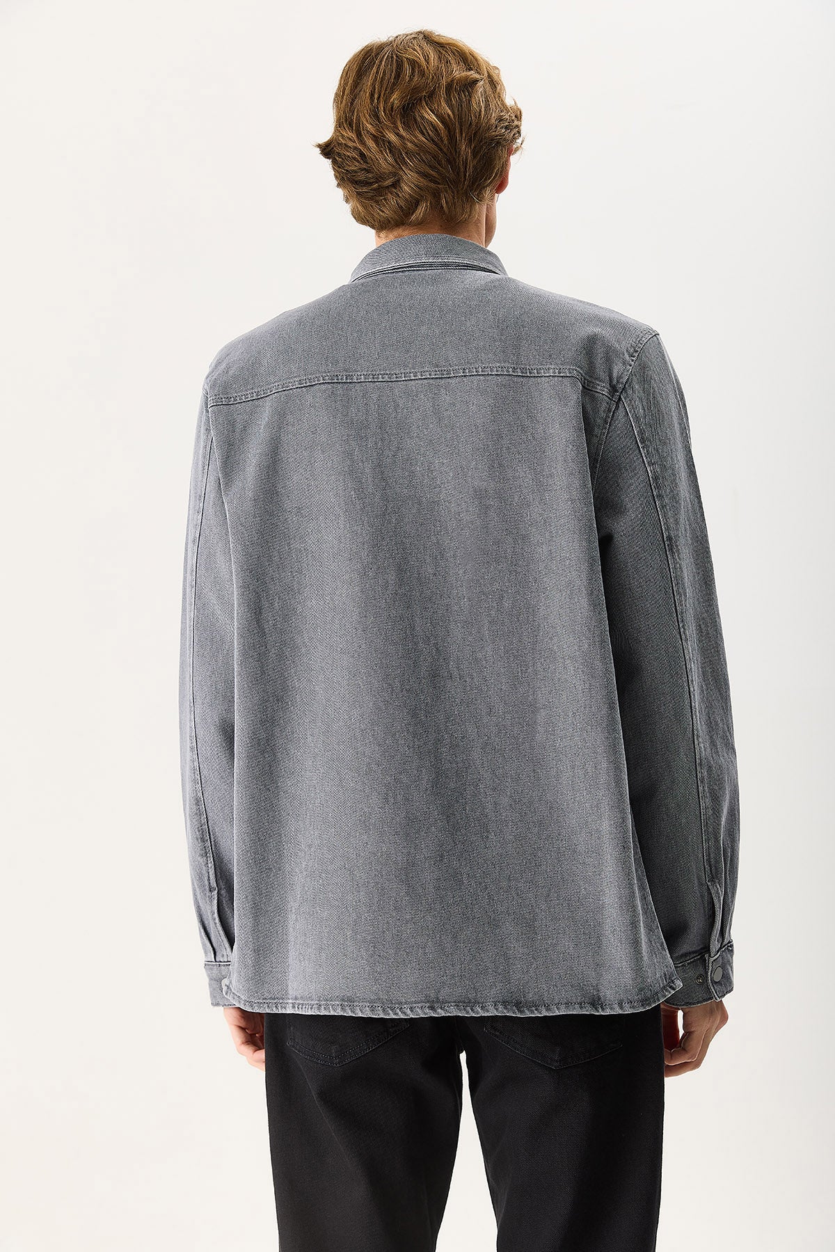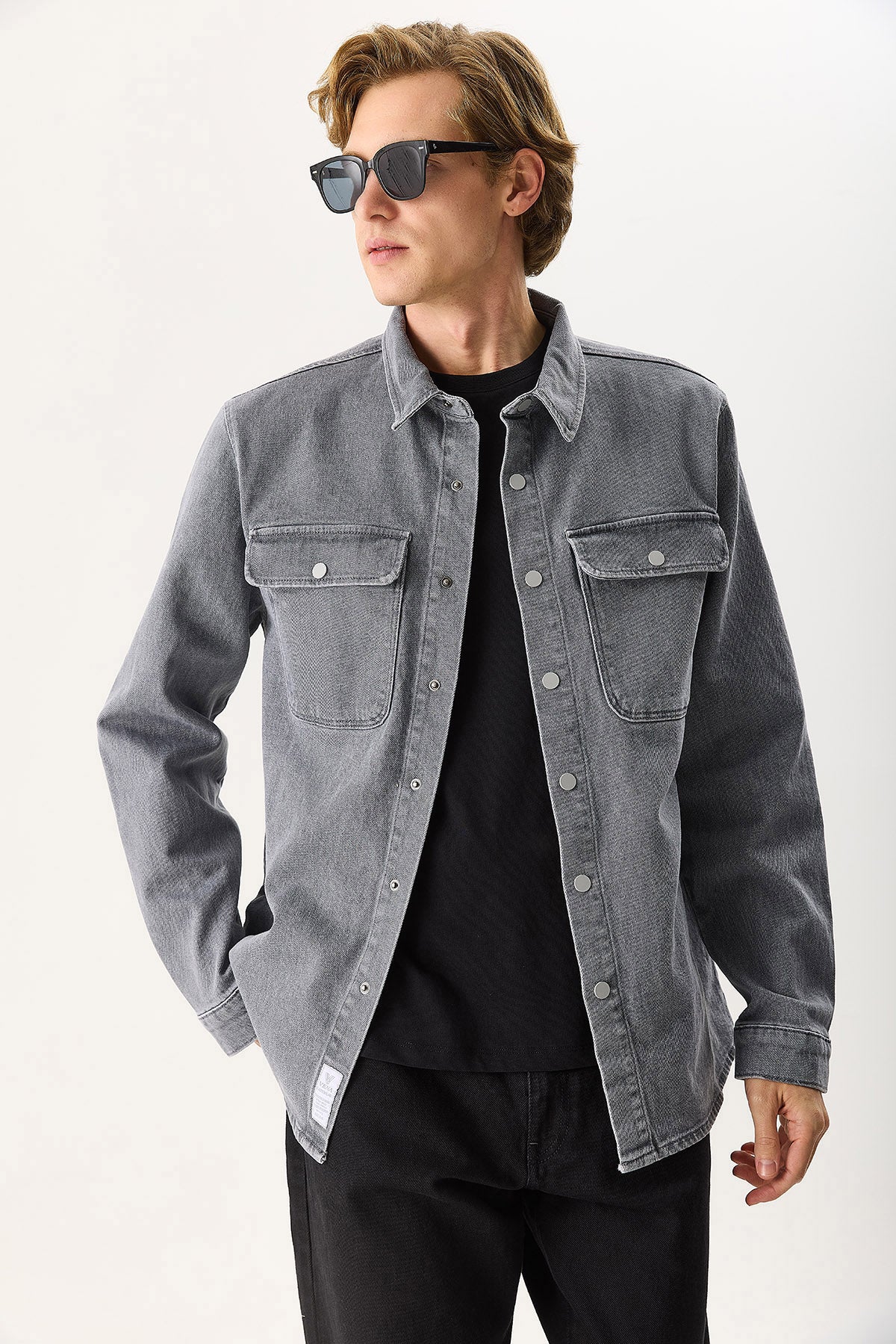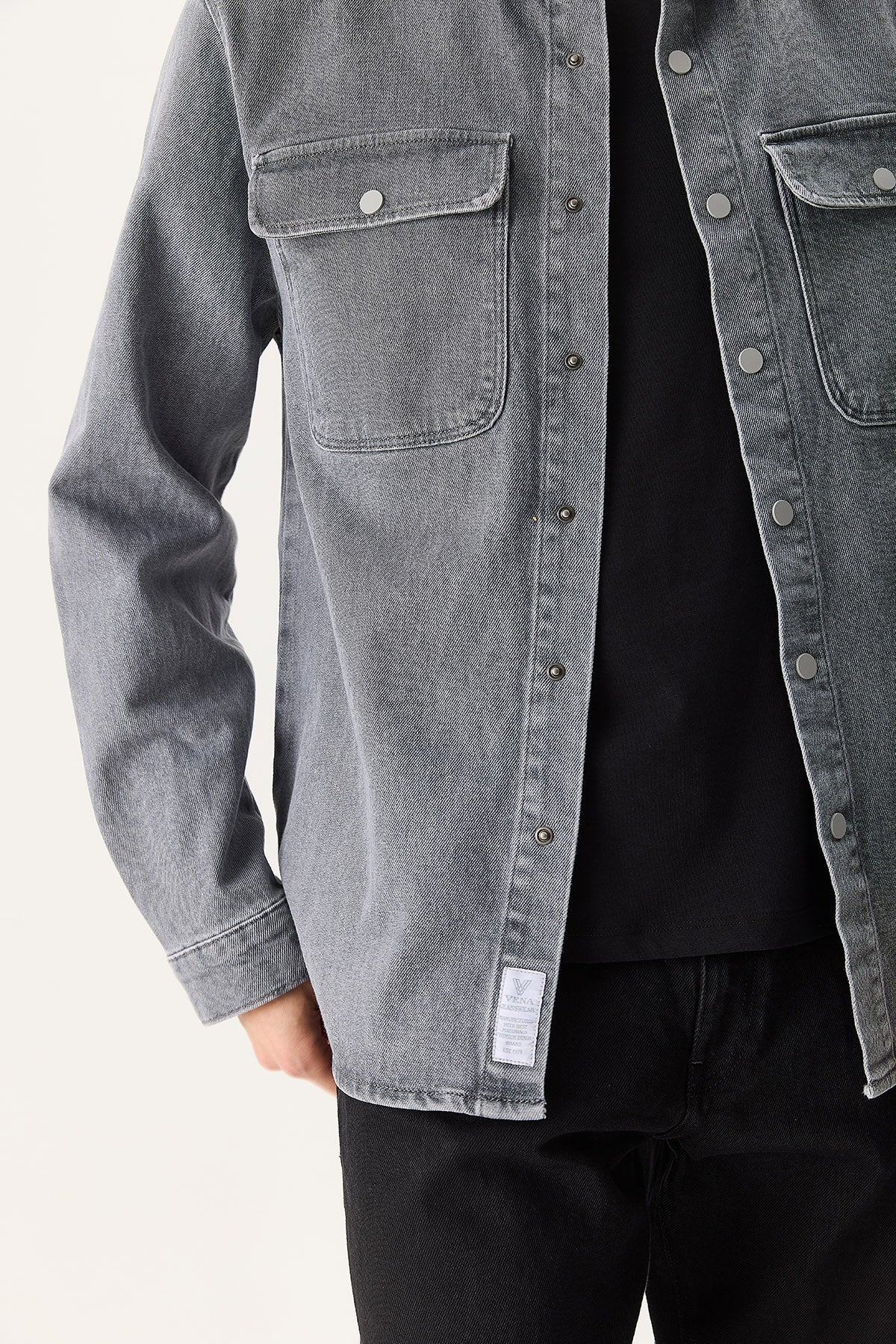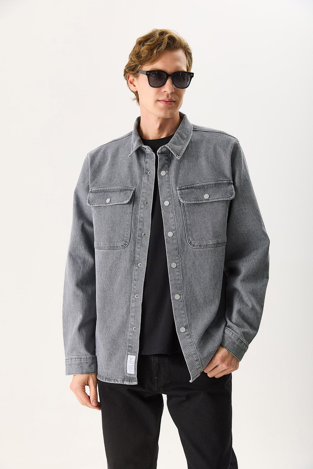 Erkek Jason Oversize Grey Jean Gömlek Ceket - Grey