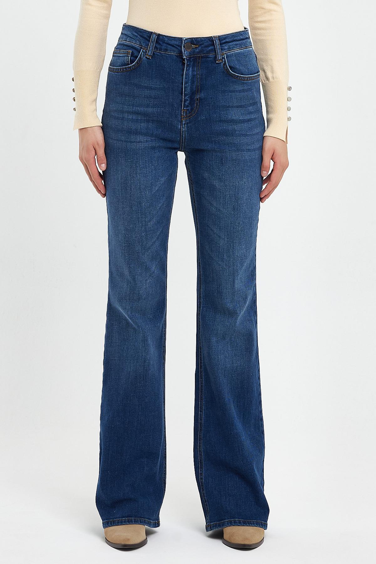 Jenny Dirty Dark Blue Yüksek Bel Flare Jean Pantolon - DIRTY DARK BLUE