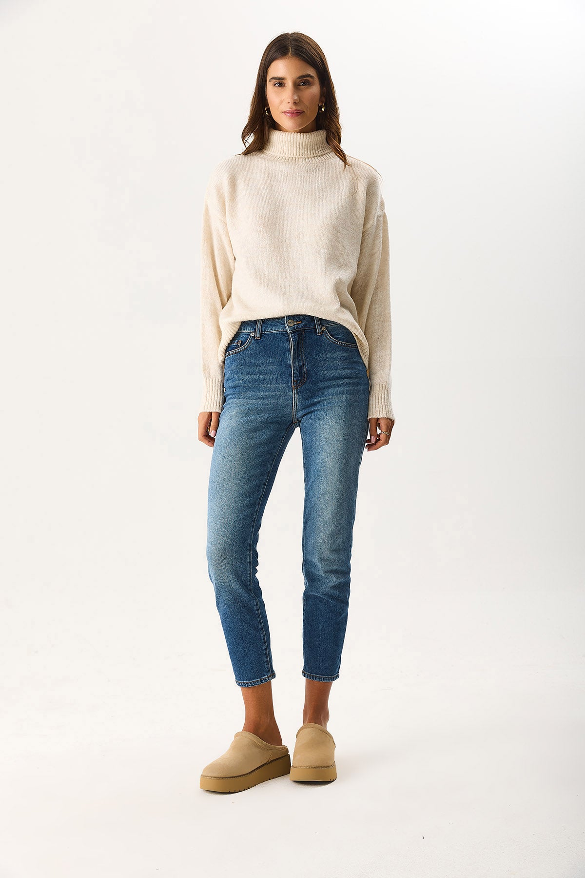 Kadın Jessica Dirty Dark Blue Mom Jean Pantolon - Dirty Dark Blue
