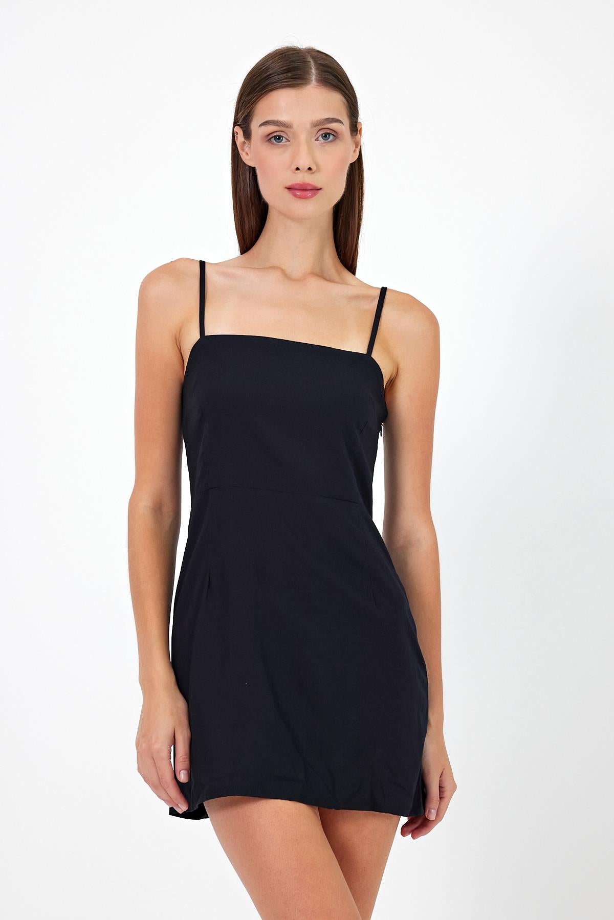 Kadın Jeyn Keten Mini Boy Elbise - Siyah
