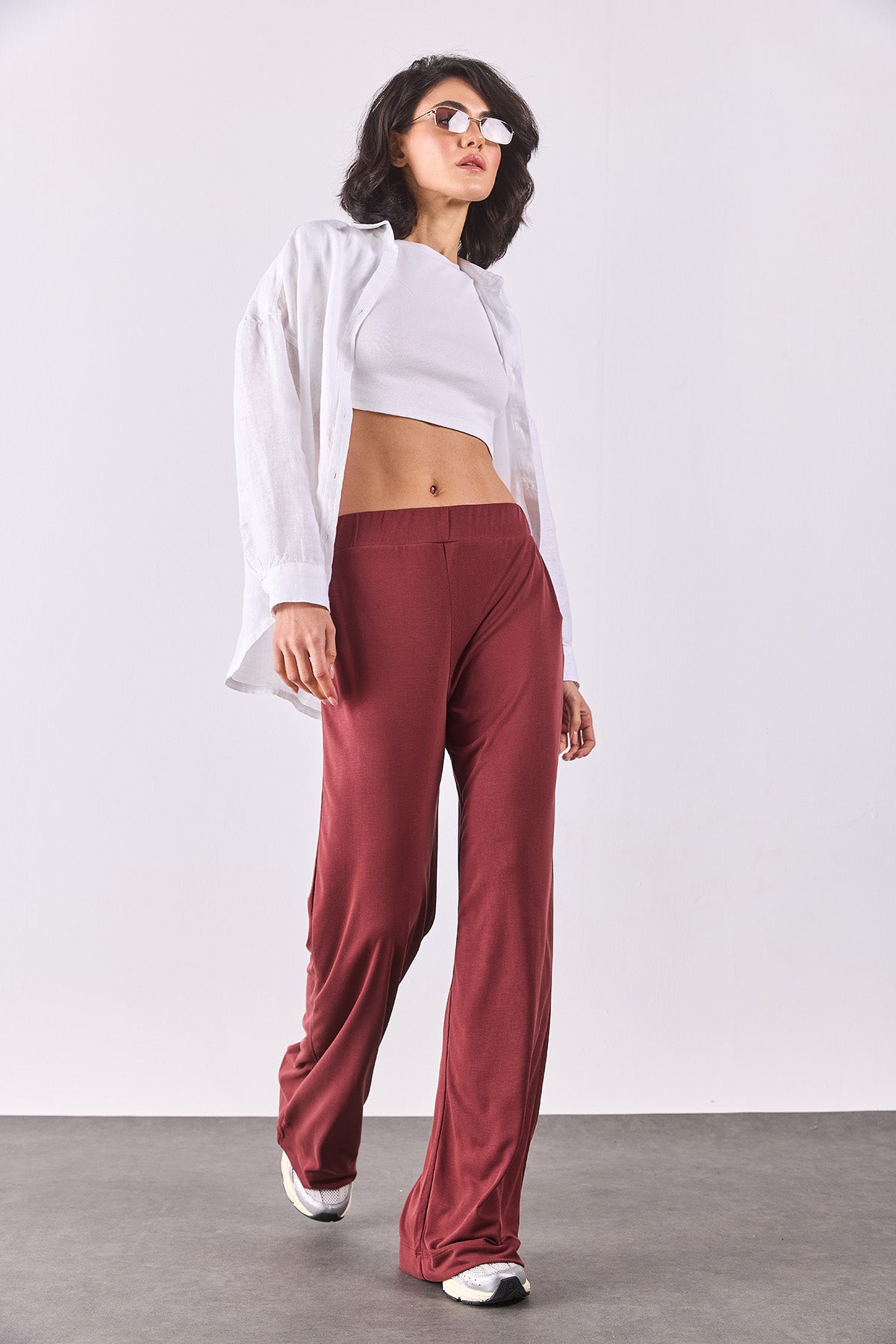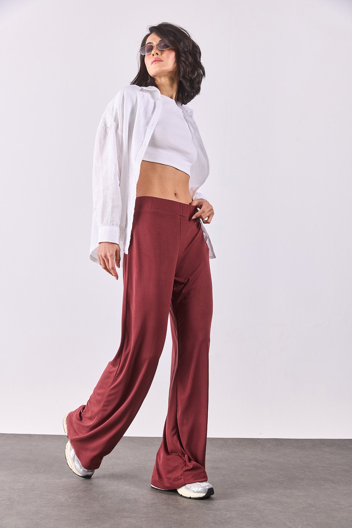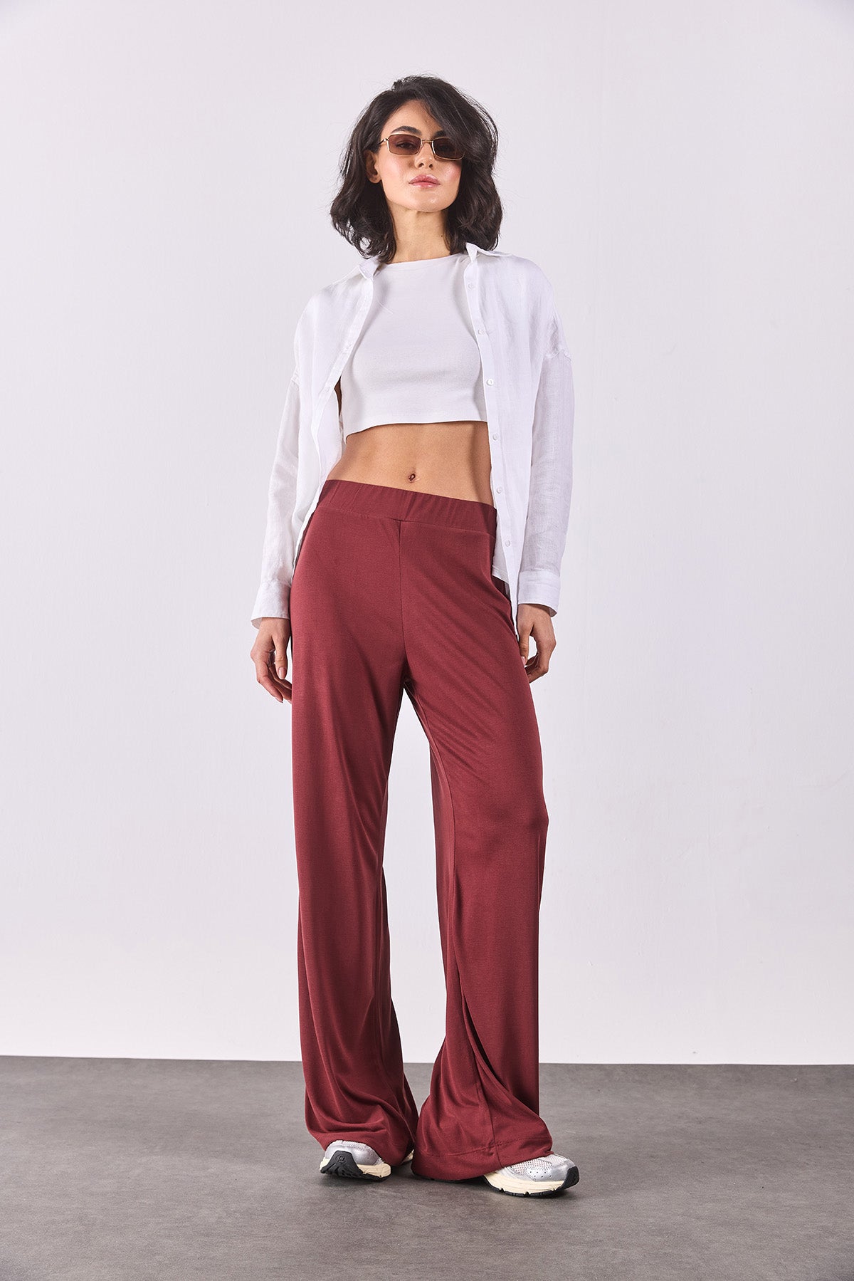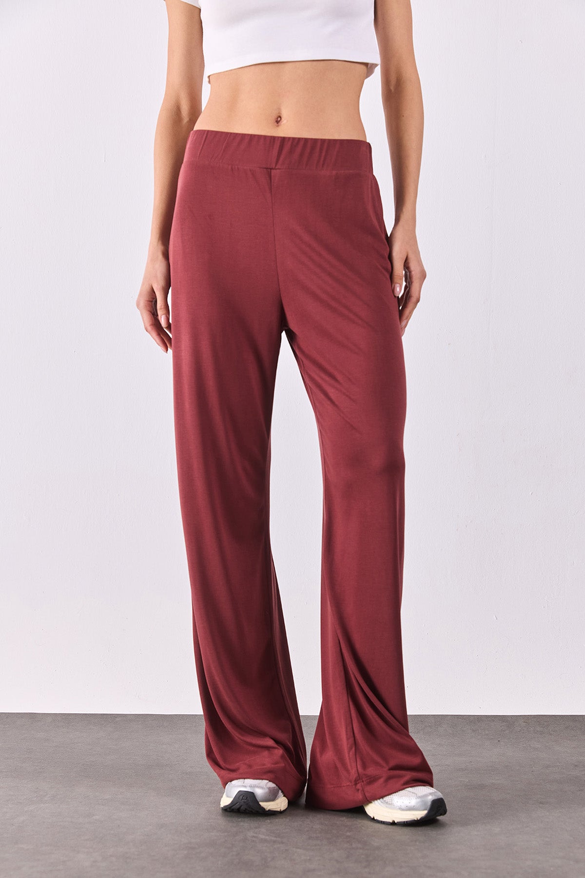 Kadın Jovie Yumuşak Dokulu Yüksek Bel Wide Leg Eşofman Altı (CUPRO) - Bordo