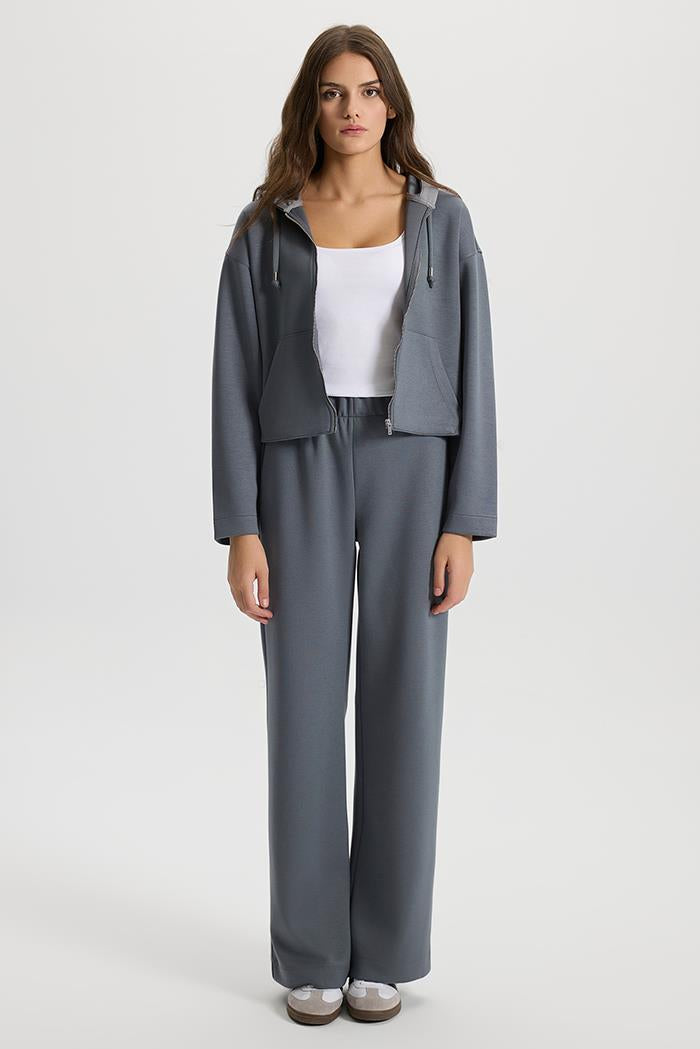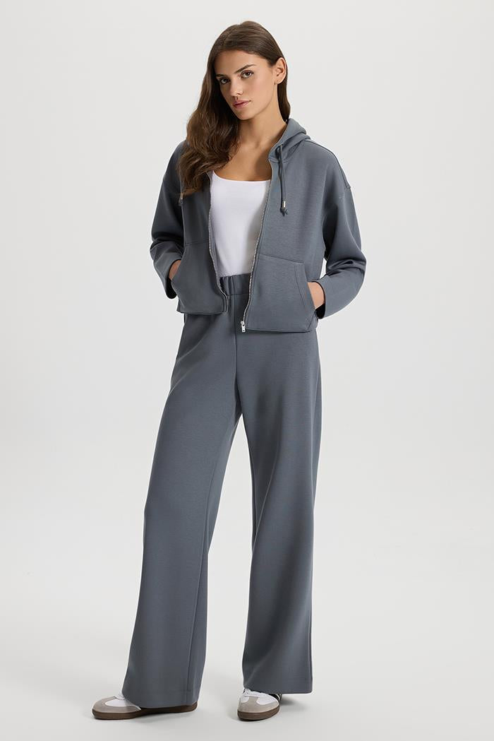 Kadın Jovie Yumuşak Dokulu Yüksek Bel Wide Leg Pantolon (CUPRO) - Antrasit
