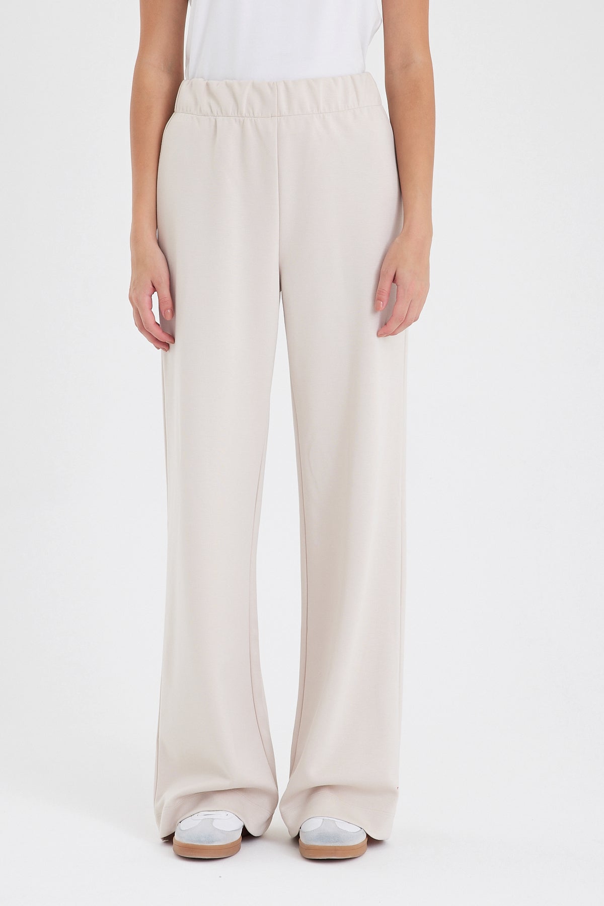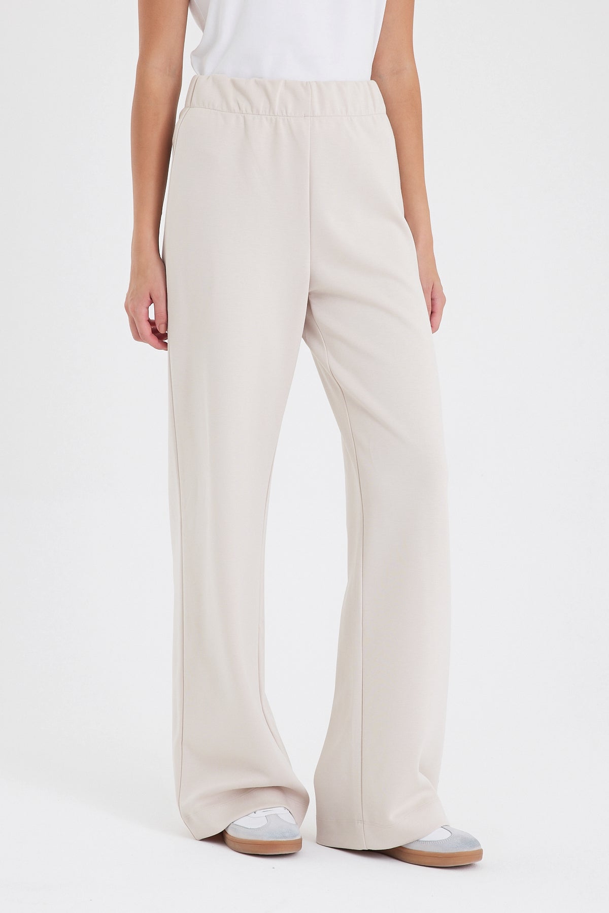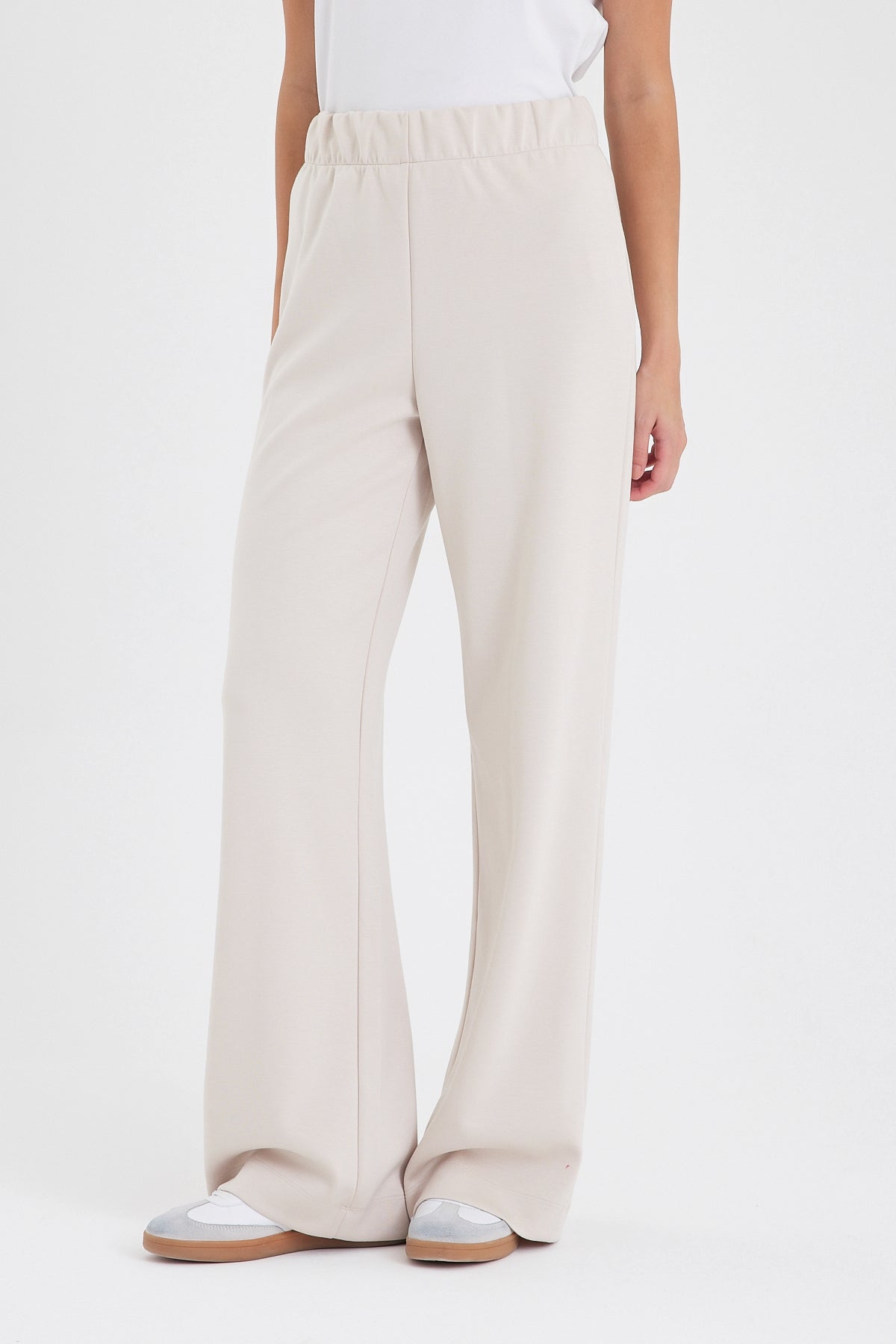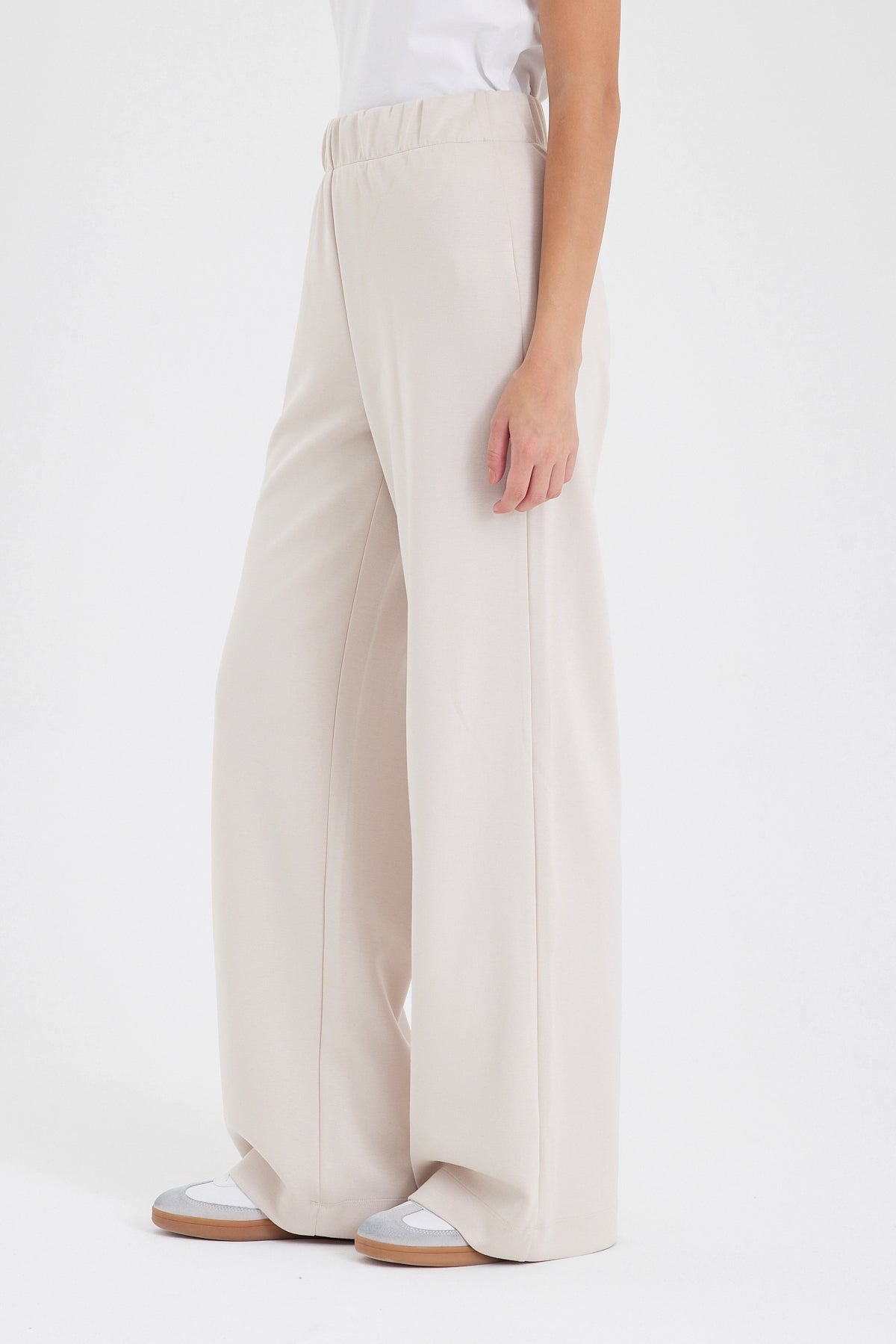 Kadın Jovie Yumuşak Dokulu Yüksek Bel Wide Leg Pantolon (CUPRO) - Kemik