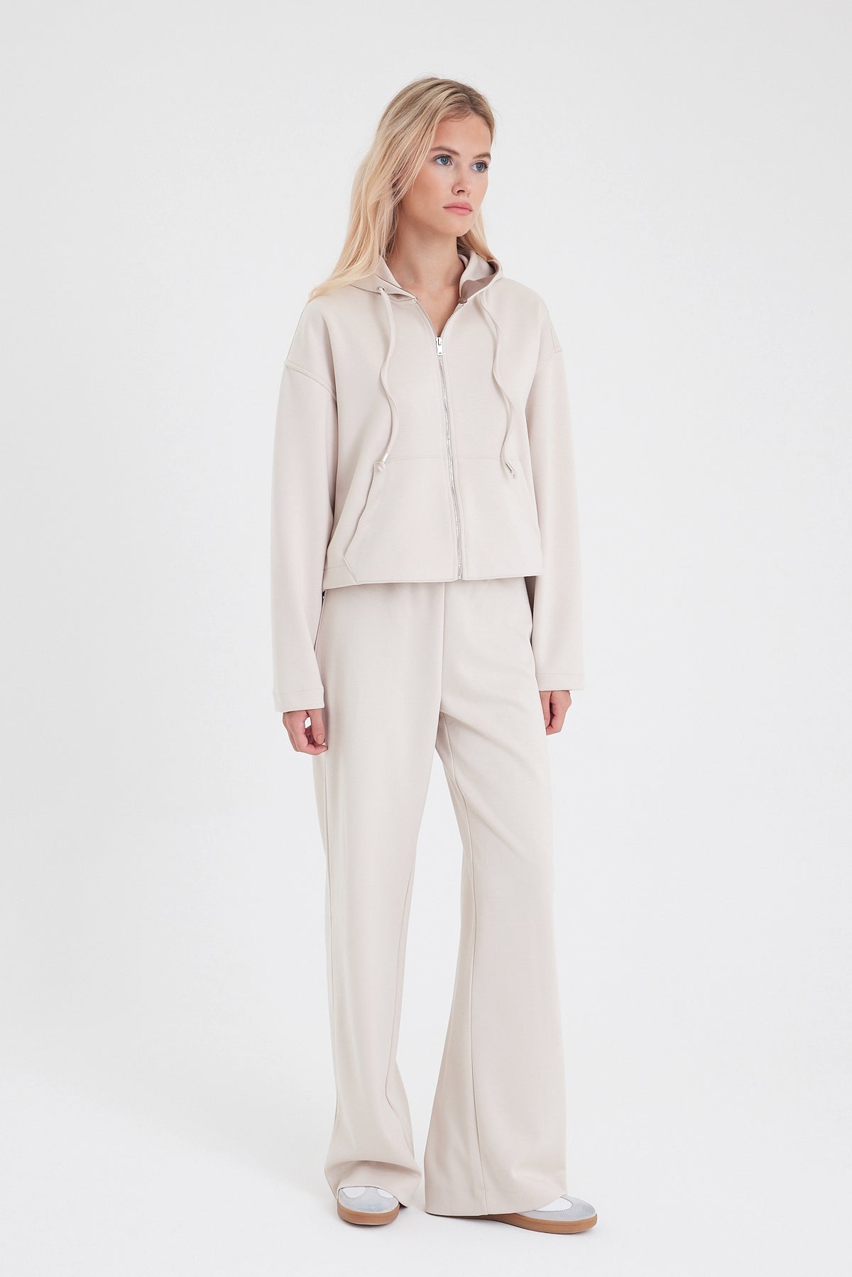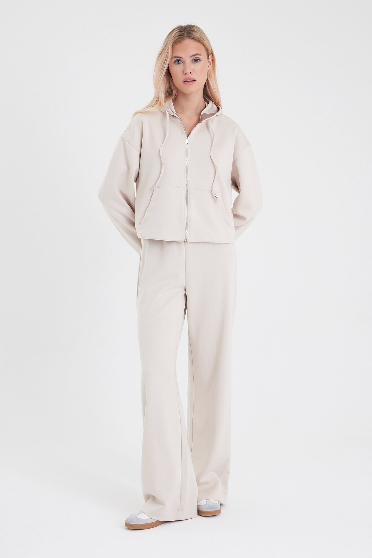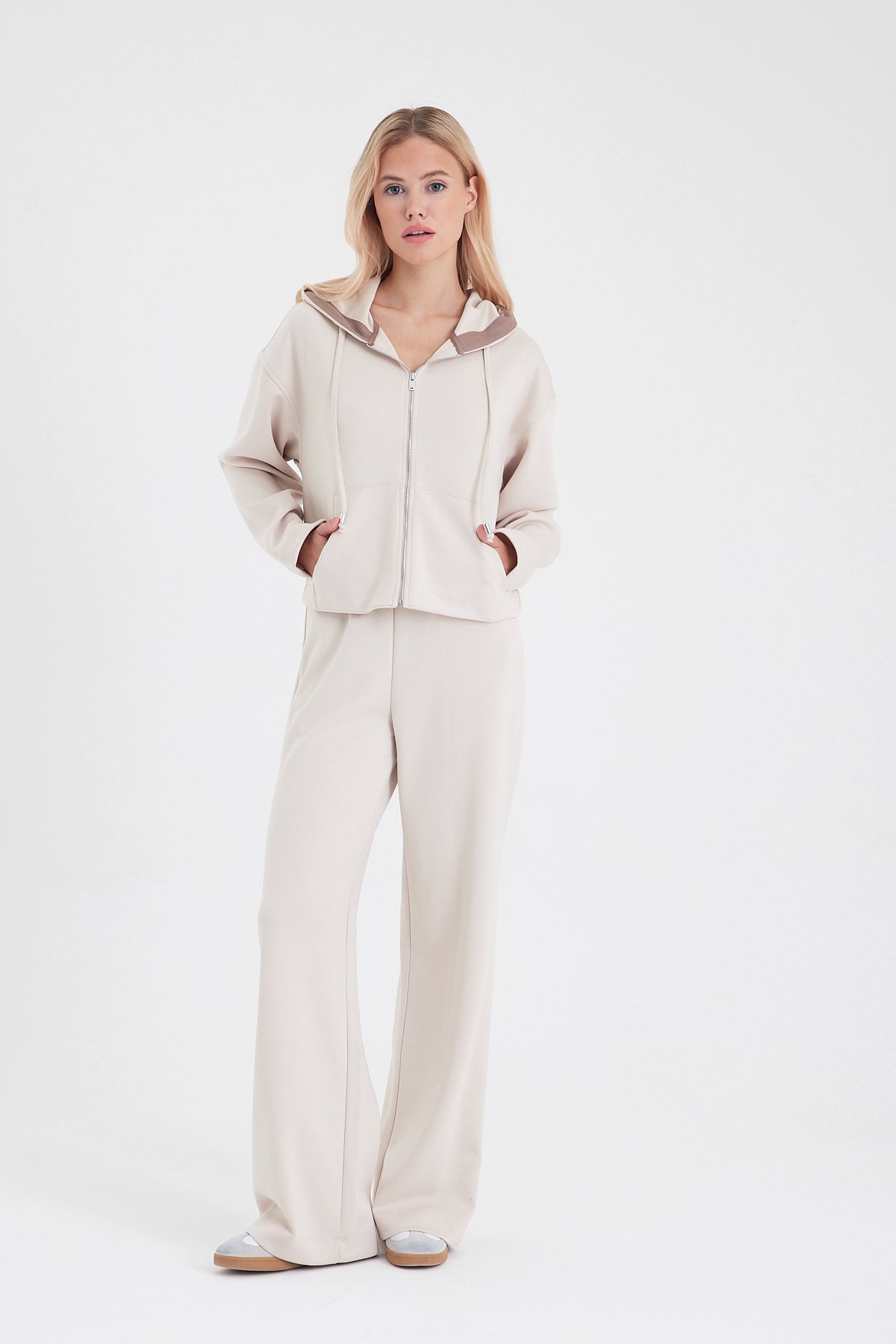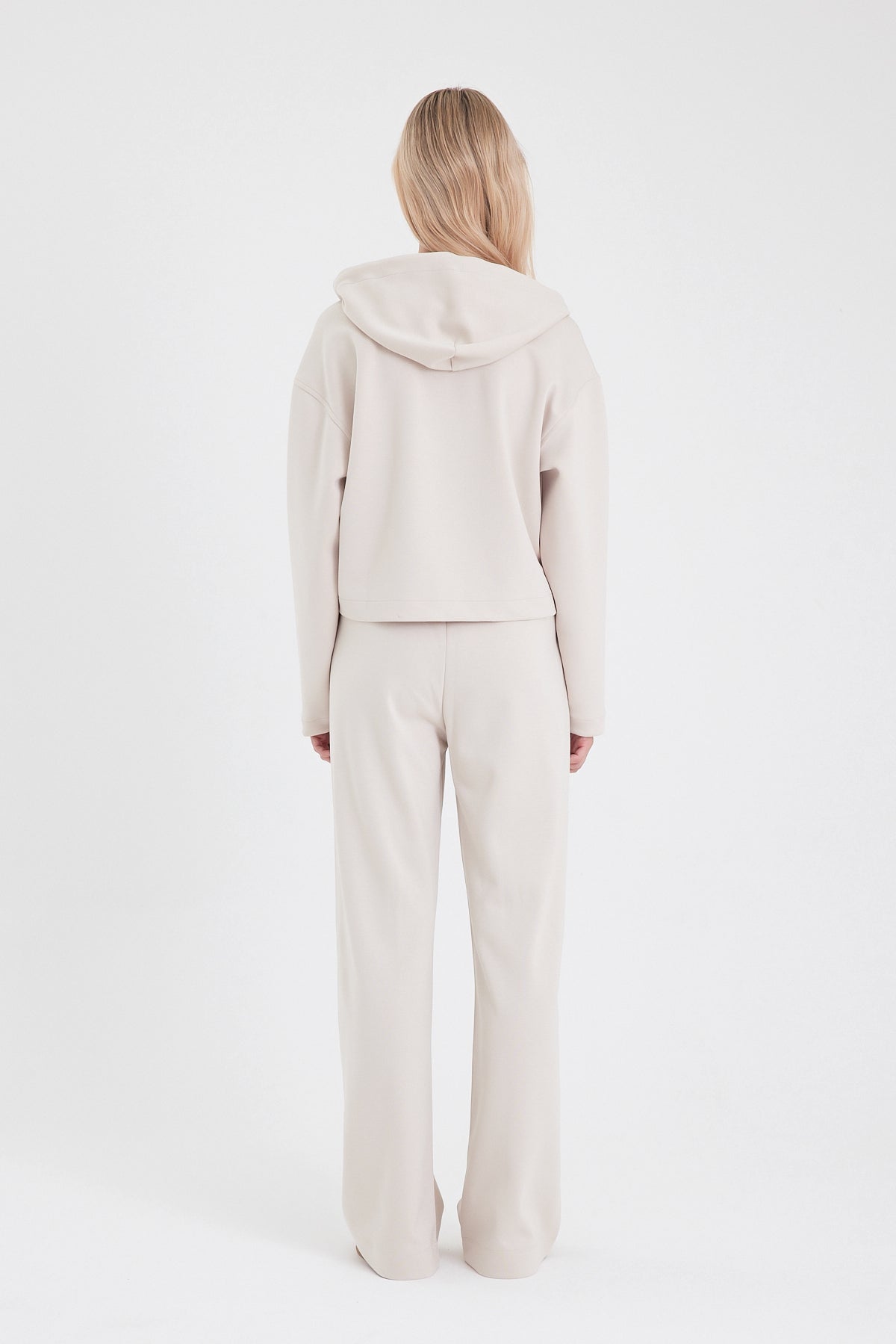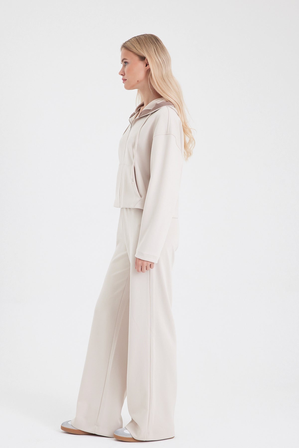 Kadın Jovie Yumuşak Dokulu Yüksek Bel Wide Leg Pantolon (CUPRO) - Kemik