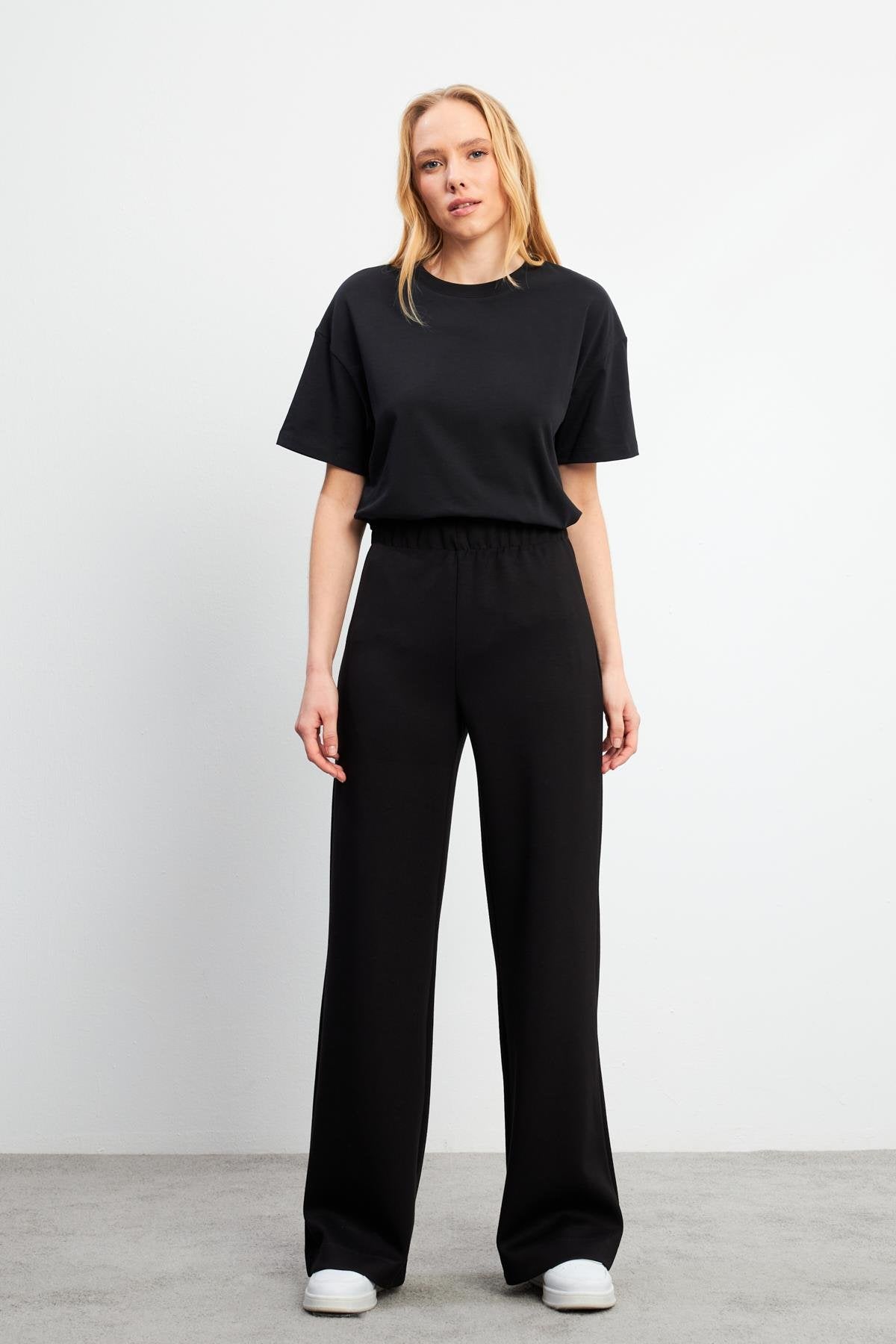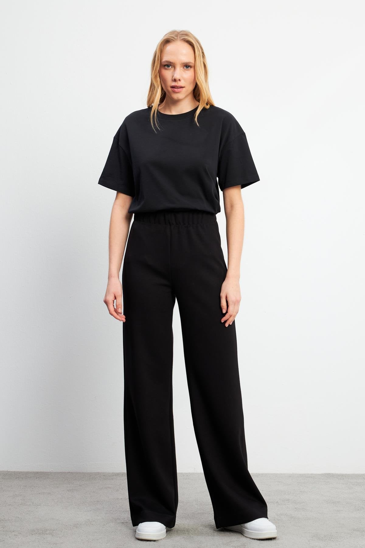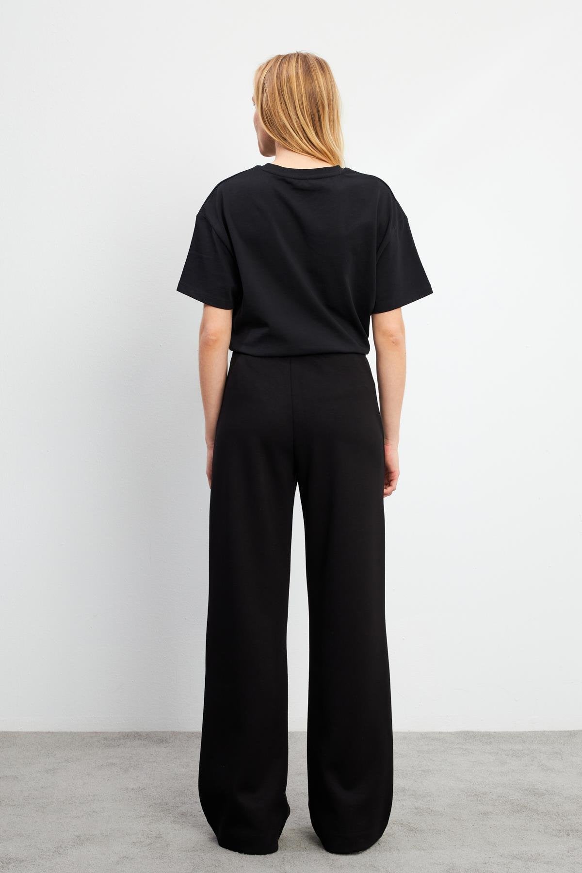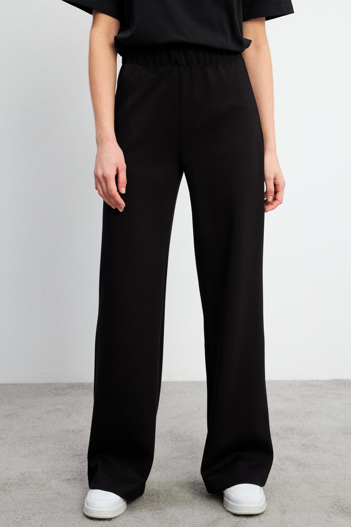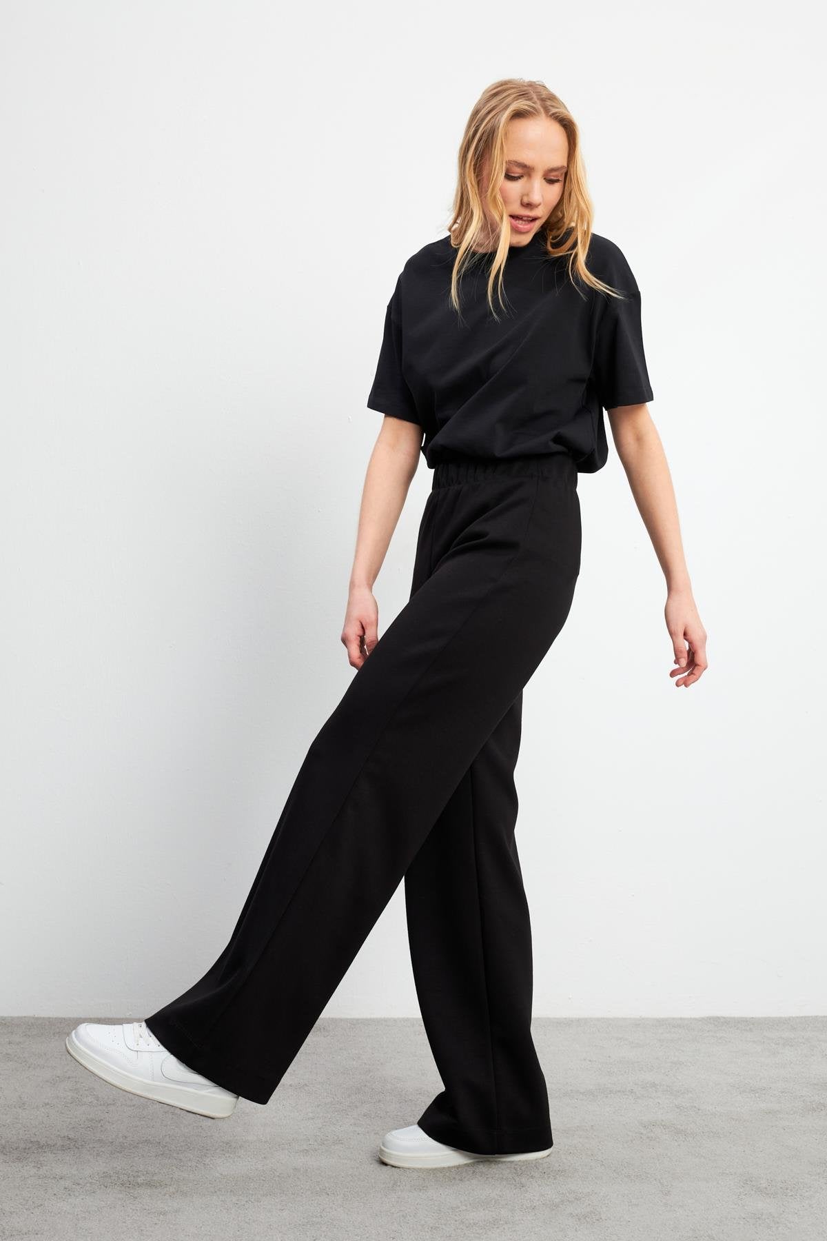 Kadın Jovie Yumuşak Dokulu Yüksek Bel Wide Leg Pantolon (CUPRO) - Siyah